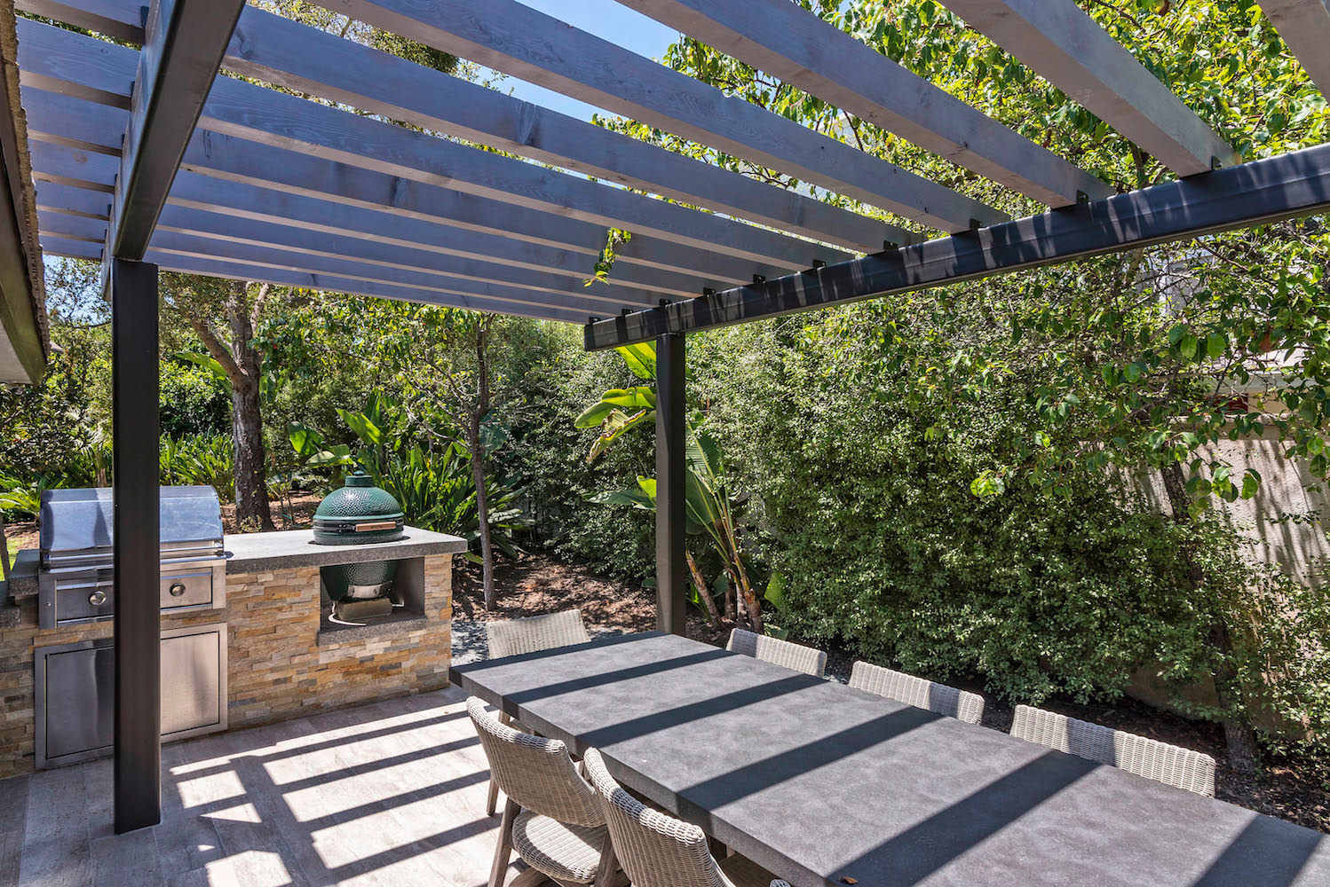 Simply slide open the Nana door between the kitchen and backyard to seamlessly transition to an indoor/outdoor setting. The outdoor dining set alongside a BBQ offers the perfect alfresco dining experience.