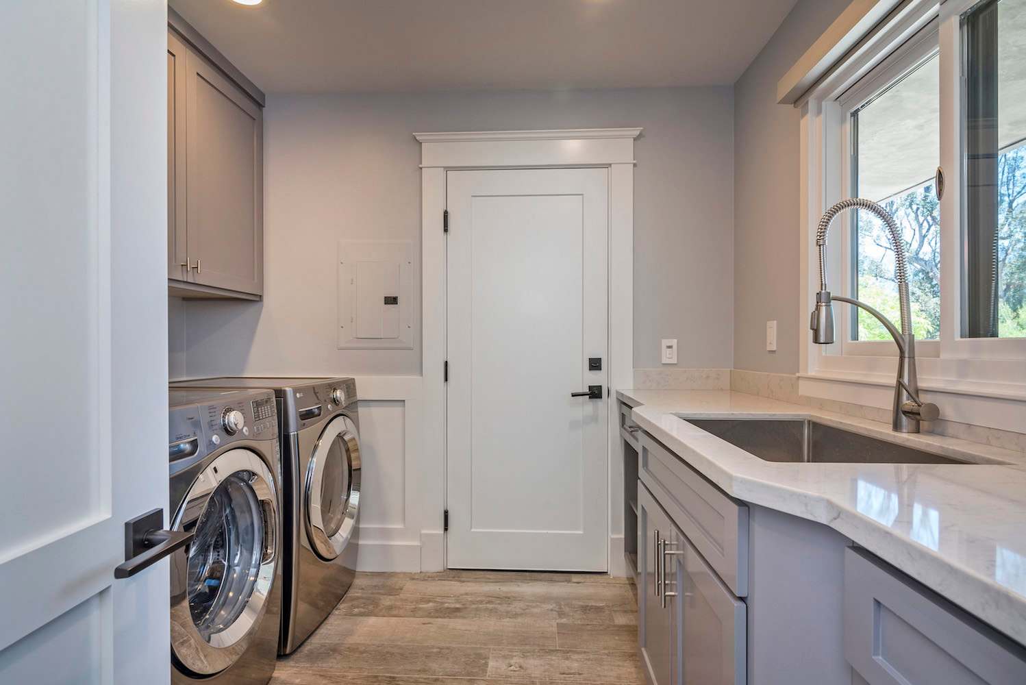 A full laundry room is also tucked away off of the kitchen. A half bathroom is also located in the laundry room.