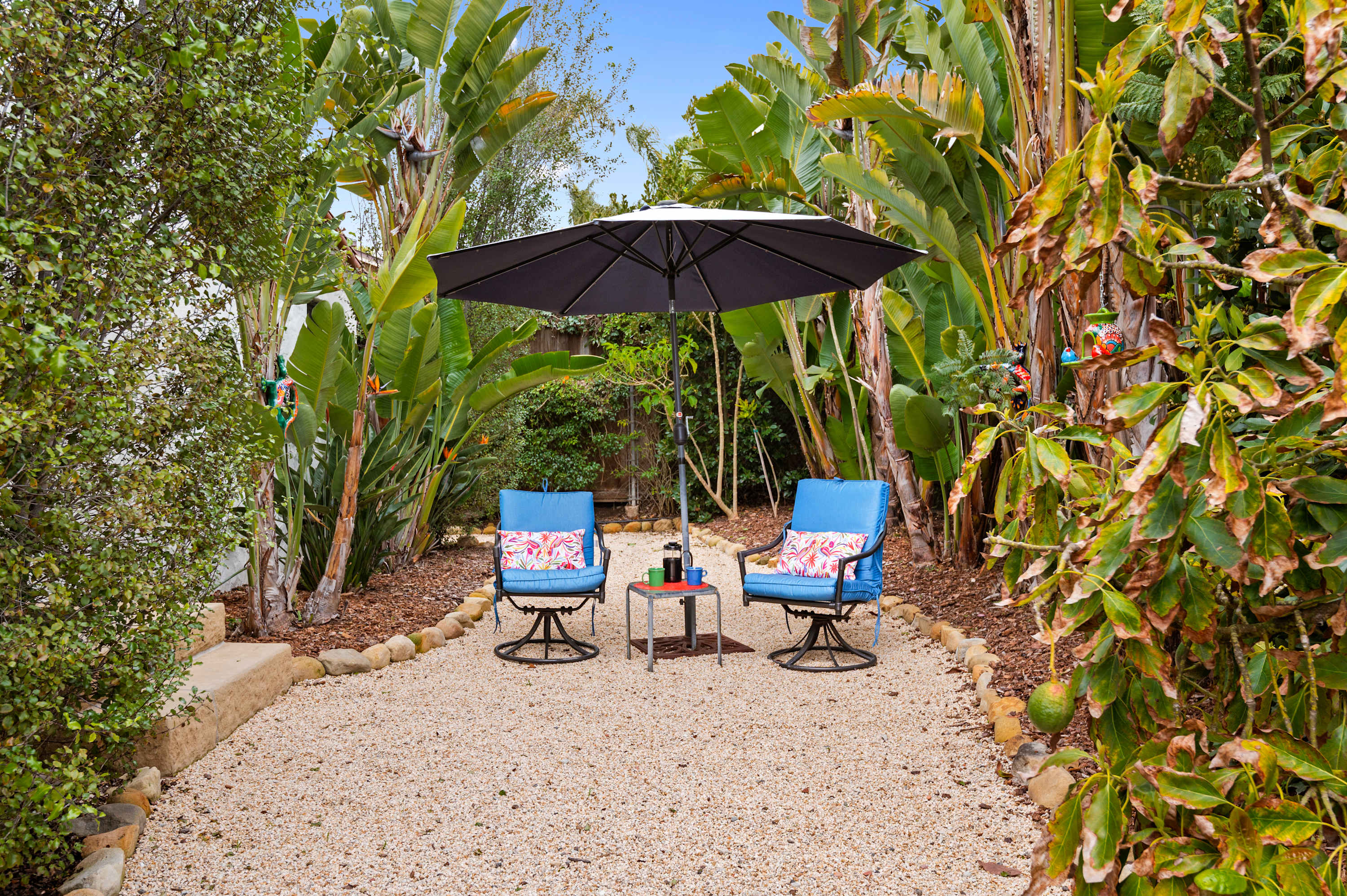 Alternatively, hold a feast outside in the front courtyard. The backyard has a BBQ, a couple seats for relaxing and an outdoor shower to rinse off after a day at the beach.