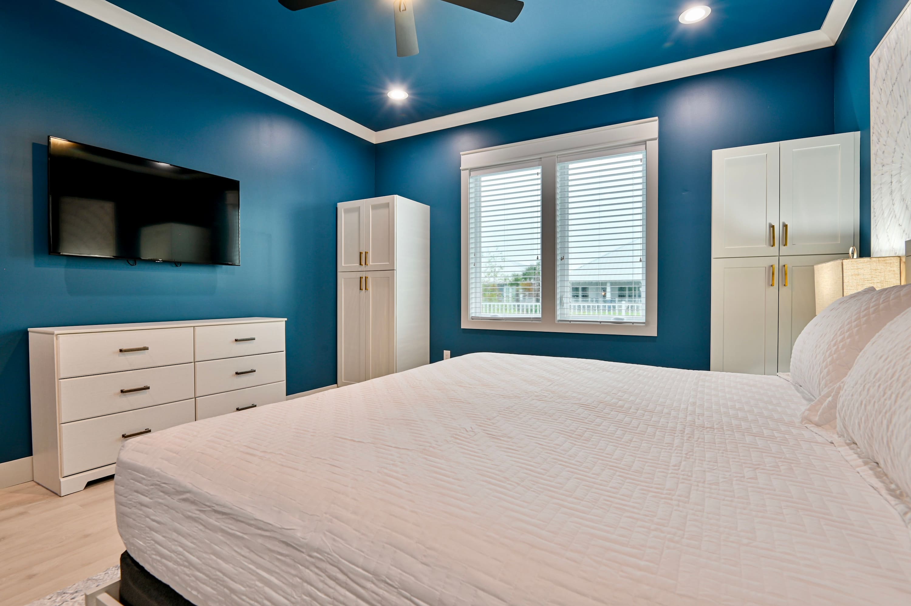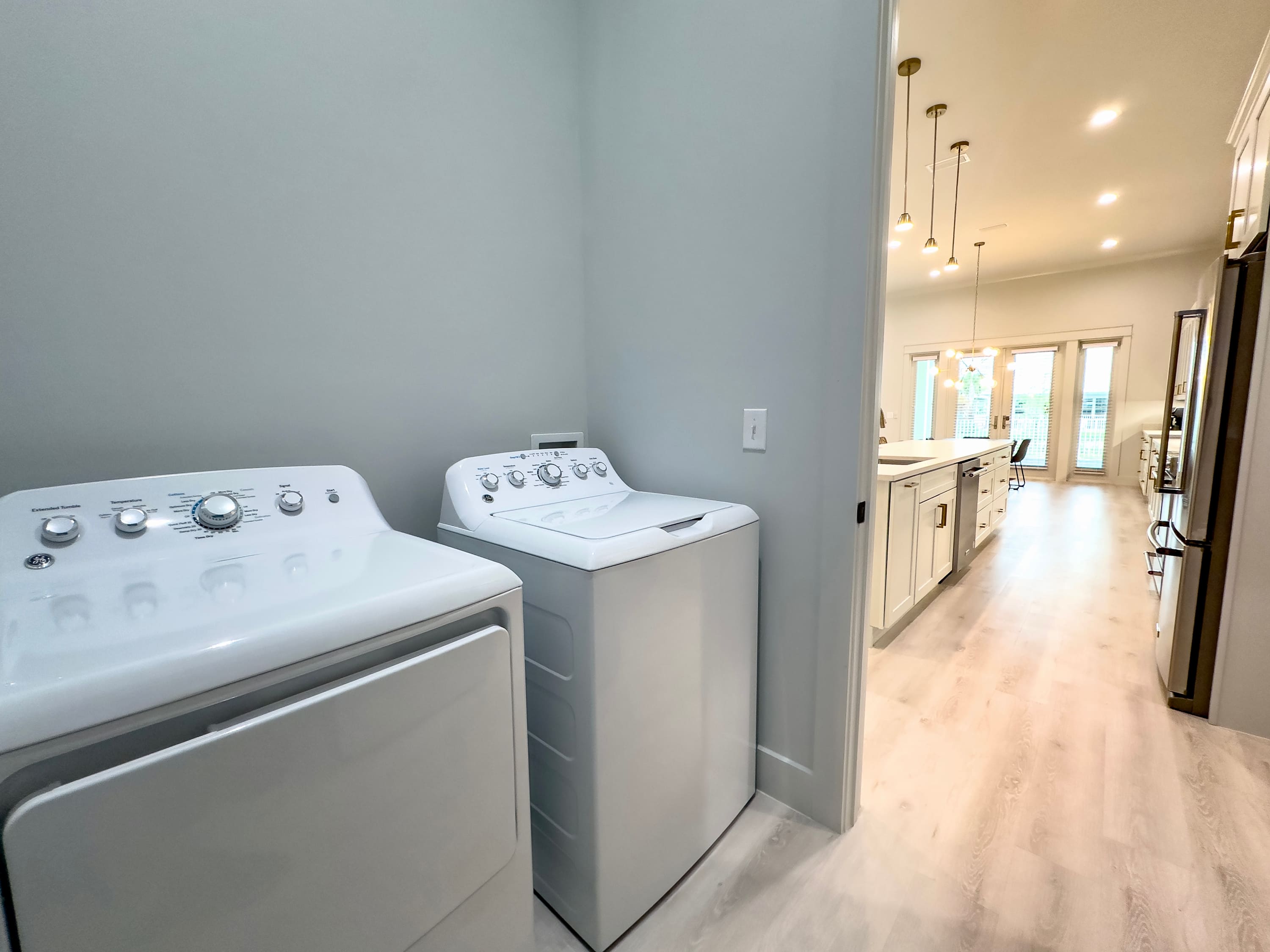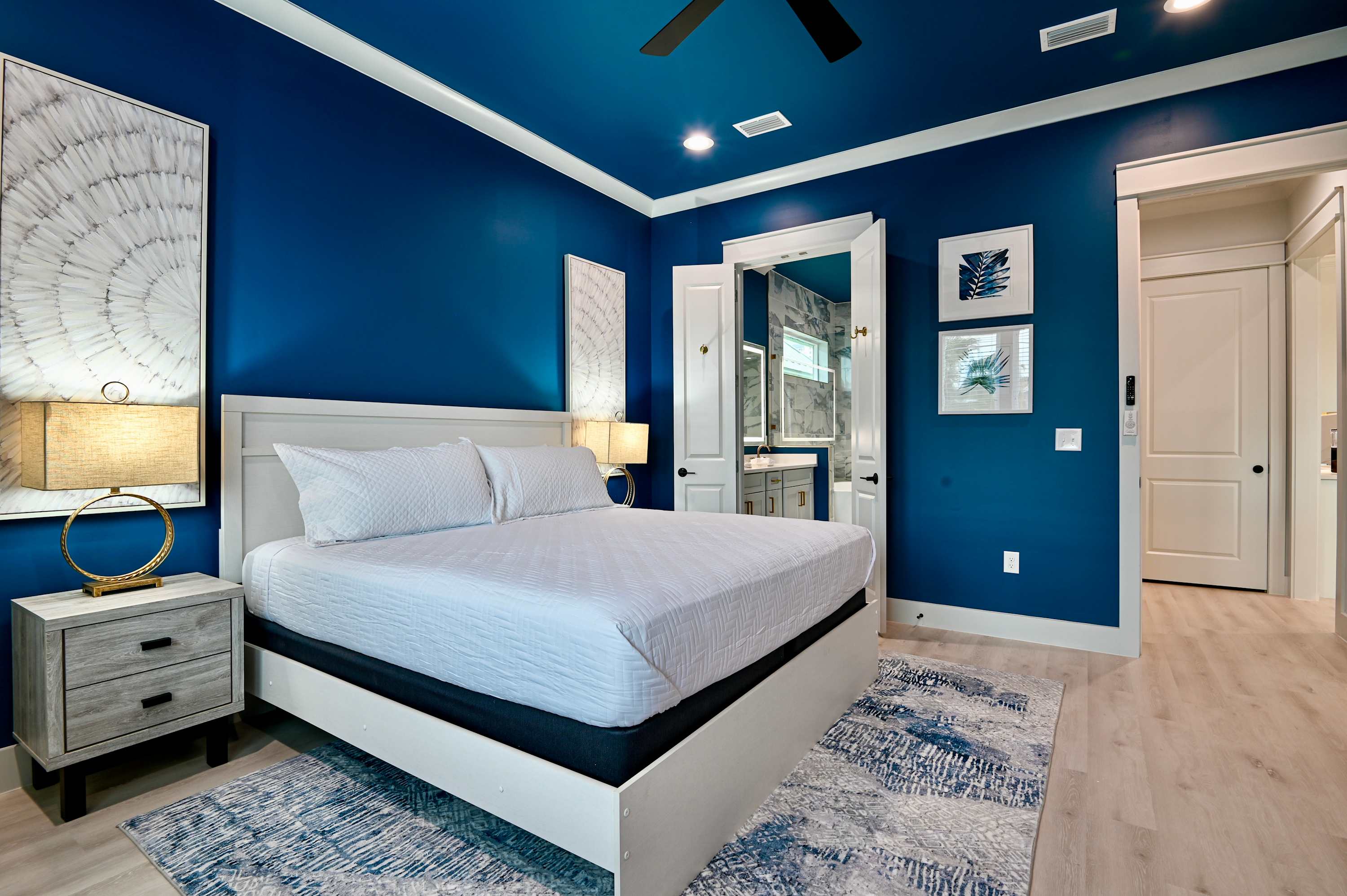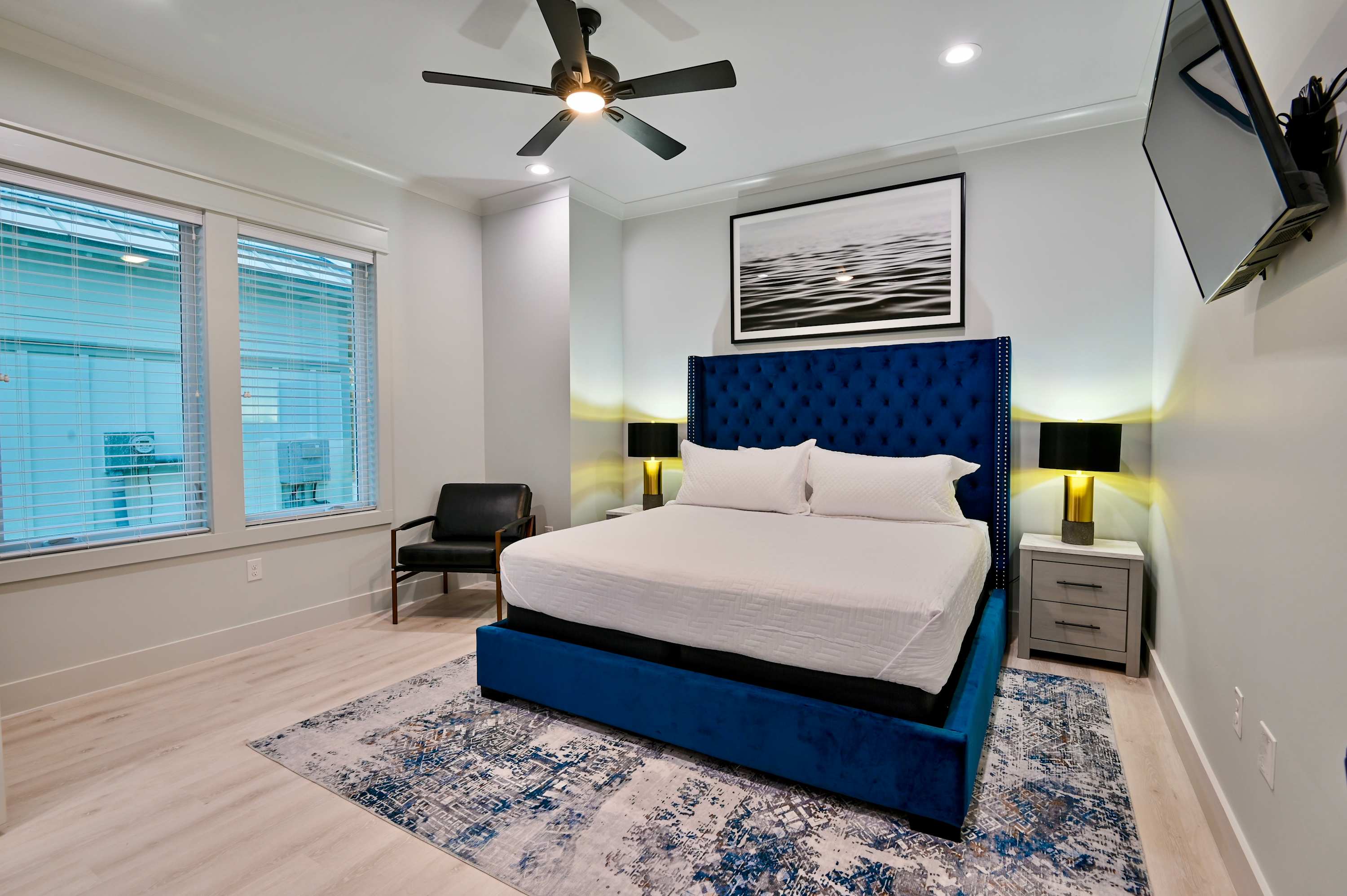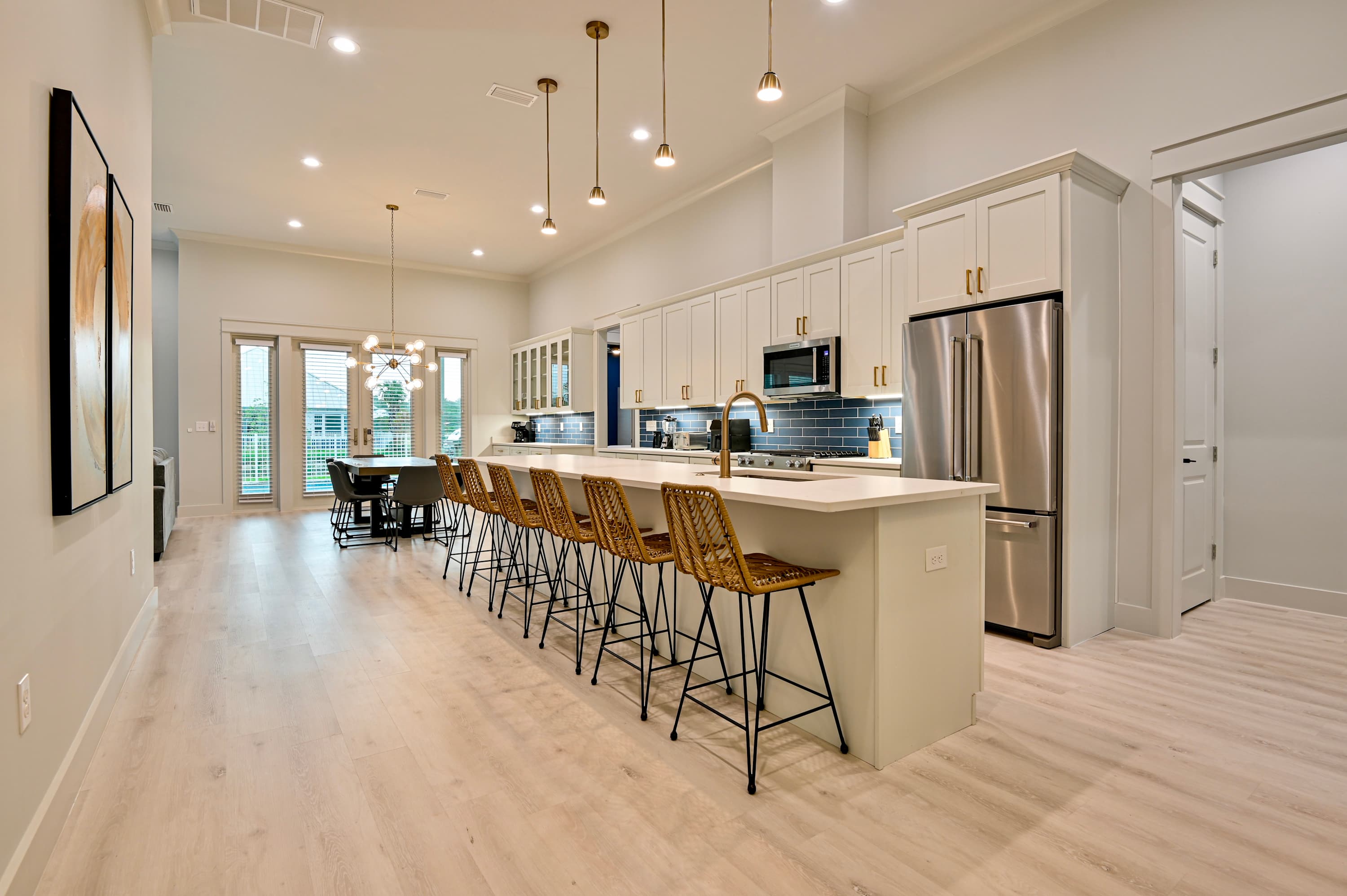 The home itself leaves nothing to be desired, from the bright and modern interior to the picturesque exterior both providing spaces primed for connectivity and entertainment. Have a refreshing swim in the glittering inground pool and catch some plentiful Alabama rays while you lounge on the spacious back patio or fire up the grill and enjoy a meal or two al fresco under the cooler, covered area, a built-in fan keeping the coastal air circulating around you. As you step inside, you’ll be greeted by stylish indoor spaces expertly curated with contemporary furnishings and sophisticated décor. Tall ceilings sit atop plush sofa and armchair seating in the living room, an ideal spot for kicking up your feat to stream all your favorite entertainment on the smart TV. The sparkling kitchen showcases stainless steel appliances, sleek stone countertops, and ample cabinetry stocked with cookware and dining ware. Dine together at the formal table with seating for 8 or keep things casual at the island with high-top stool seating for 6.