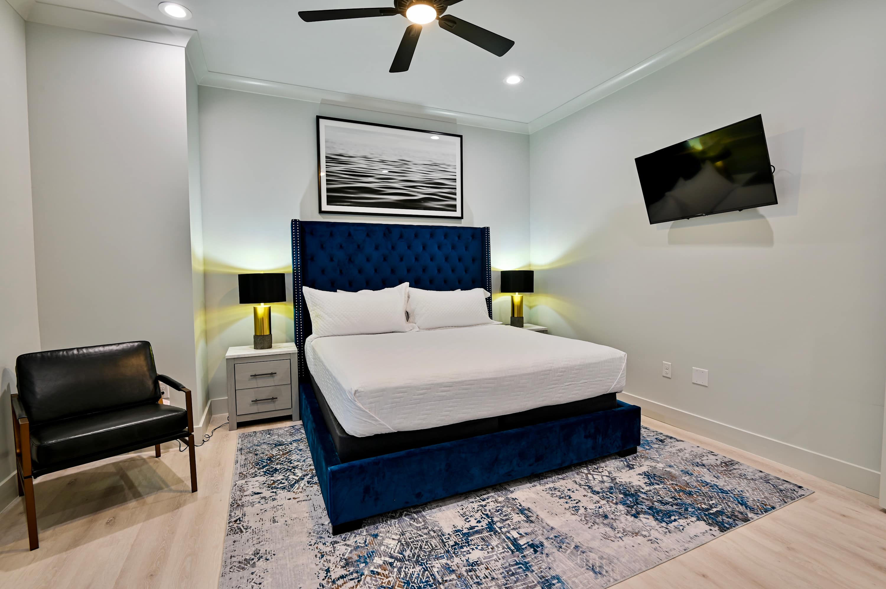Bedroom #3 includes a king size bed, smart TV, and ensuite bathroom with a dual vanity, soaking tub, and walk-in shower.