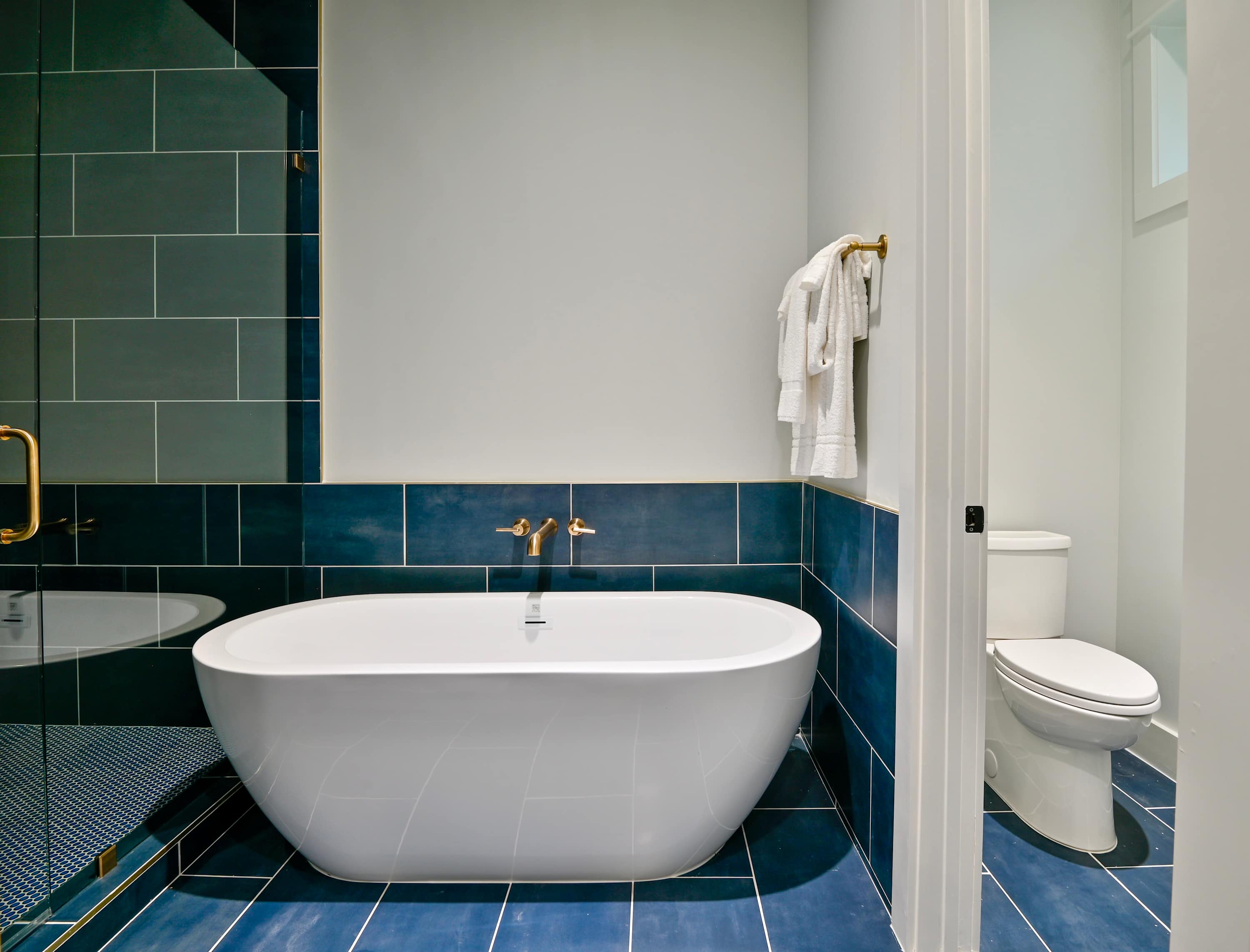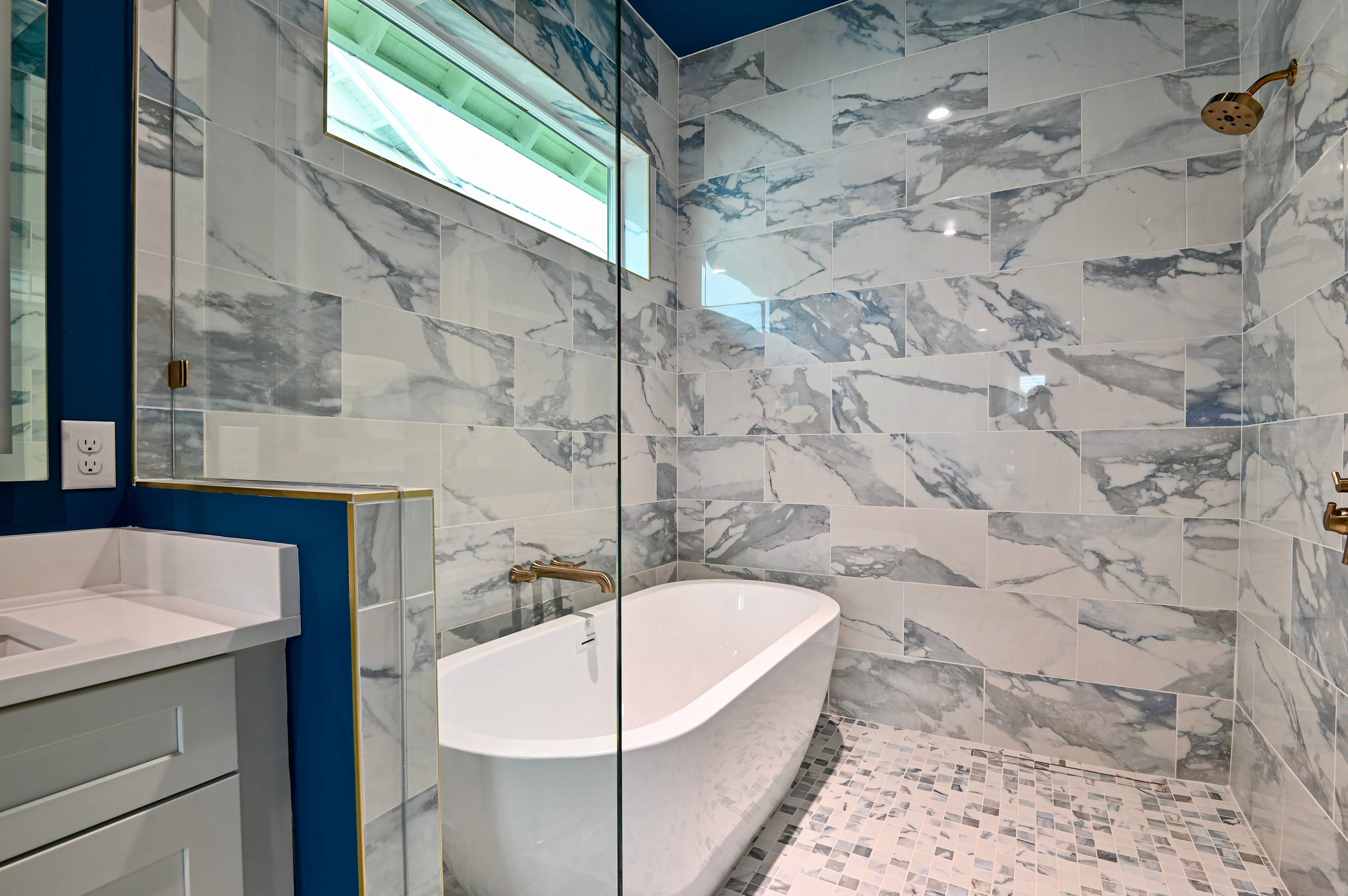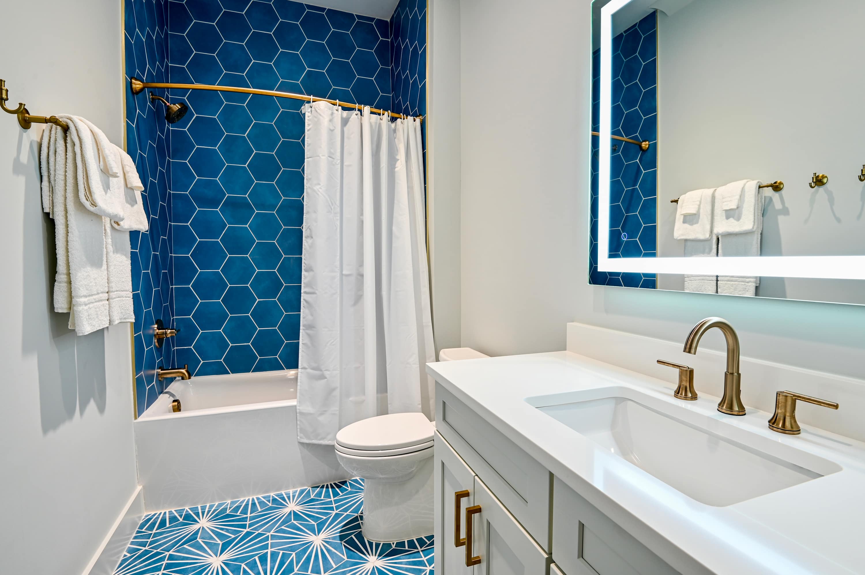 The home also includes an additional full guest bathroom with a single vanity and shower/tub combo.