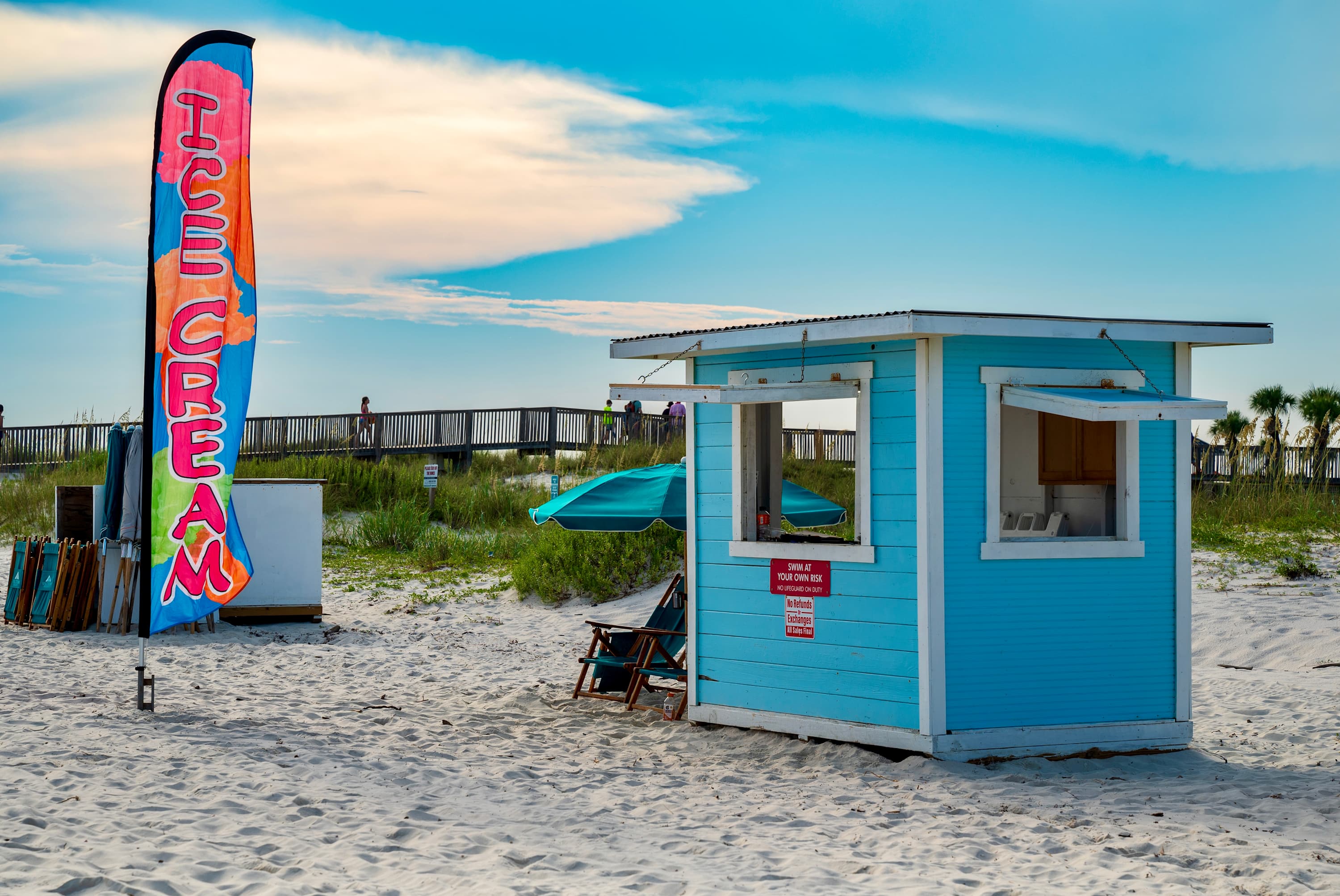 • The Beach Club Clubhouse – Available to guests at an additional cost per day. Guests can enjoy Clubhouse amenities including an indoor and outdoor pool, game room, fitness center, and access to lockers, showers, saunas, and steam rooms. Overlooking the Clubhouse outdoor pool with a great view of the Gulf of Mexico, Gulfside Bar & Grill has a festive atmosphere with friendly service. From burgers to salads to your favorite drinks, you can save a trip back to the cottage and get more pool time on your vacation.