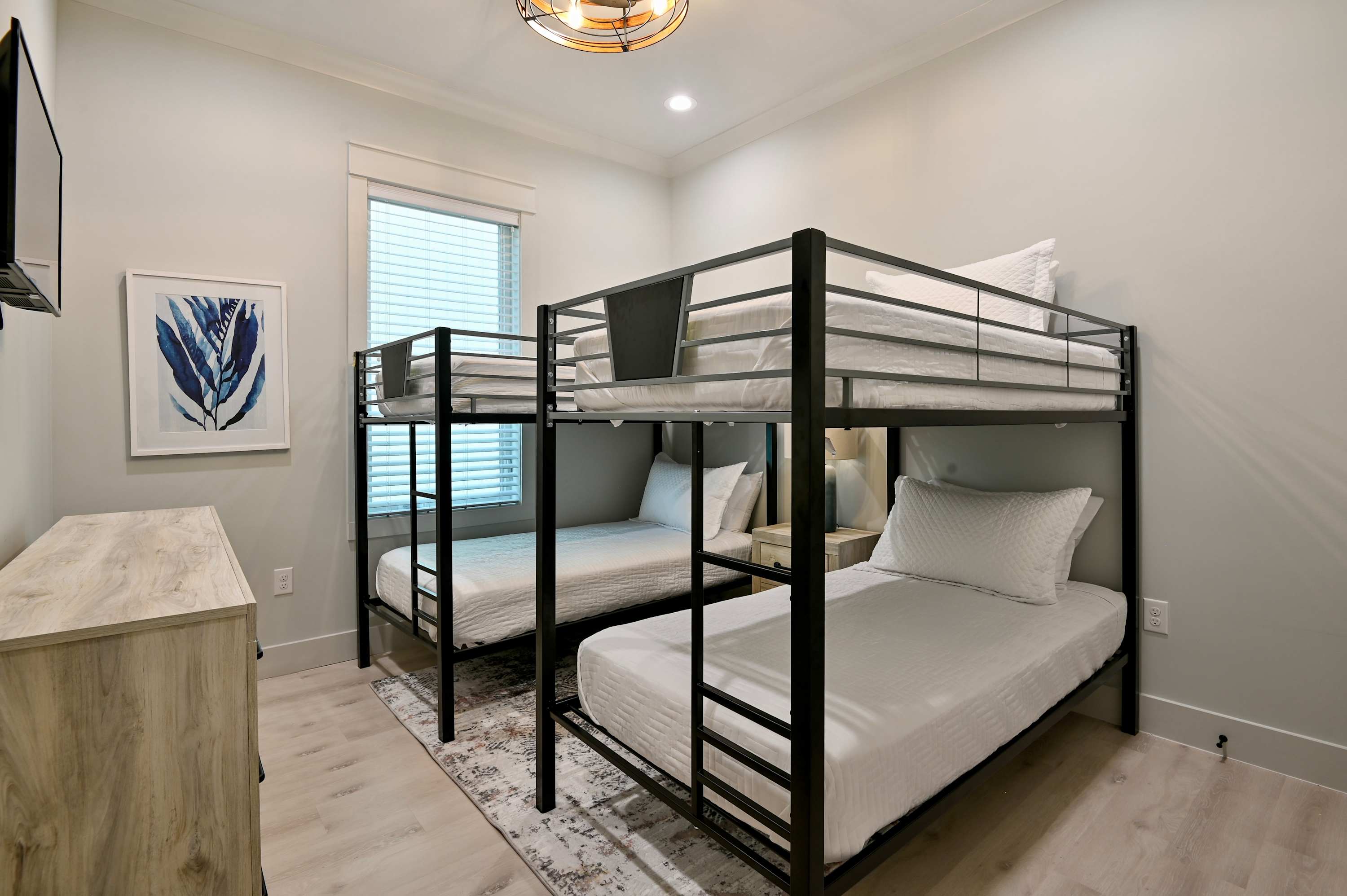 Bedroom #2 includes 2 twin-over-twin bunk beds and a smart TV.