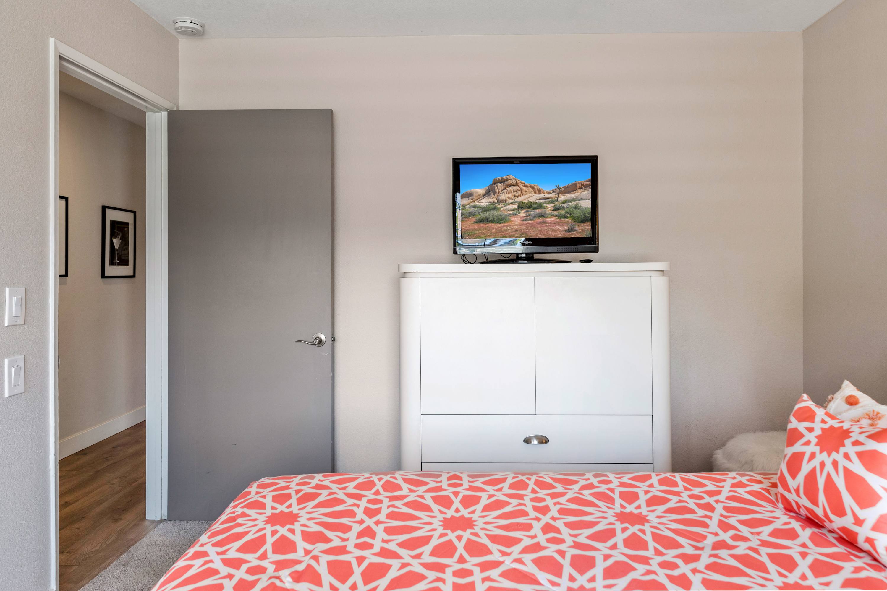 Bedroom #4 has a queen size bed and smart tv.