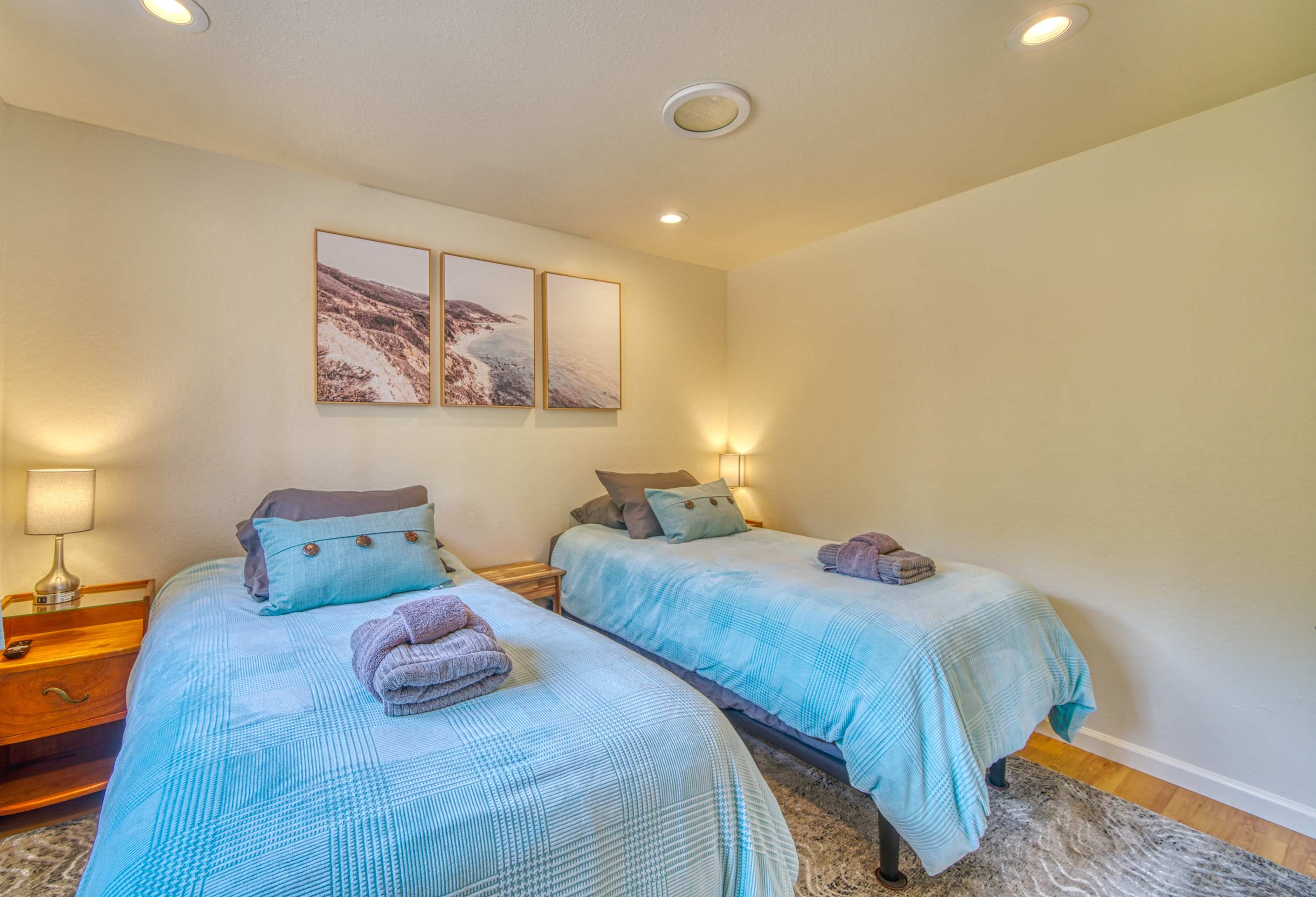 • Bedroom 2: Two Purple Luxury XL twin beds (can combine into King).