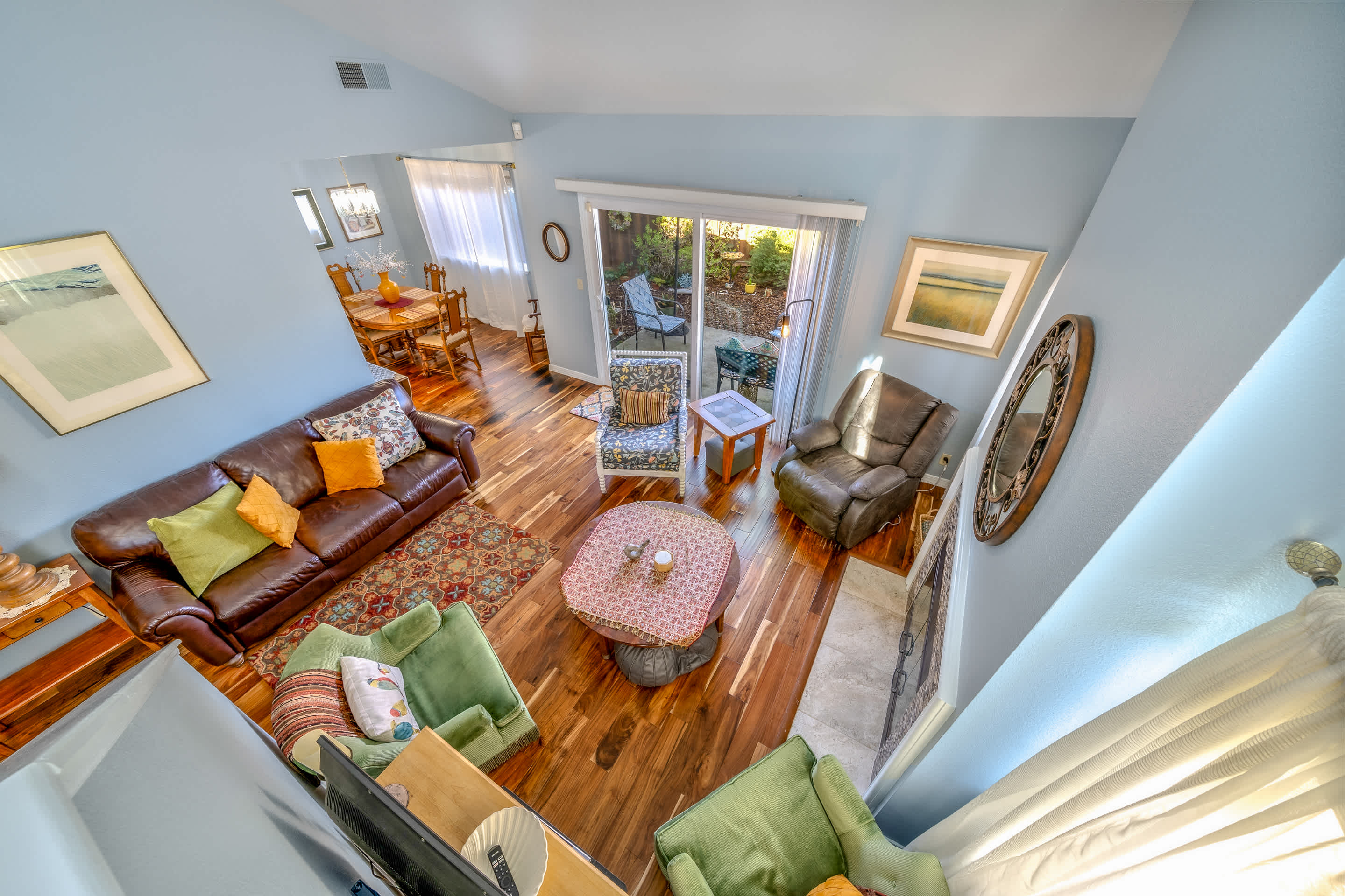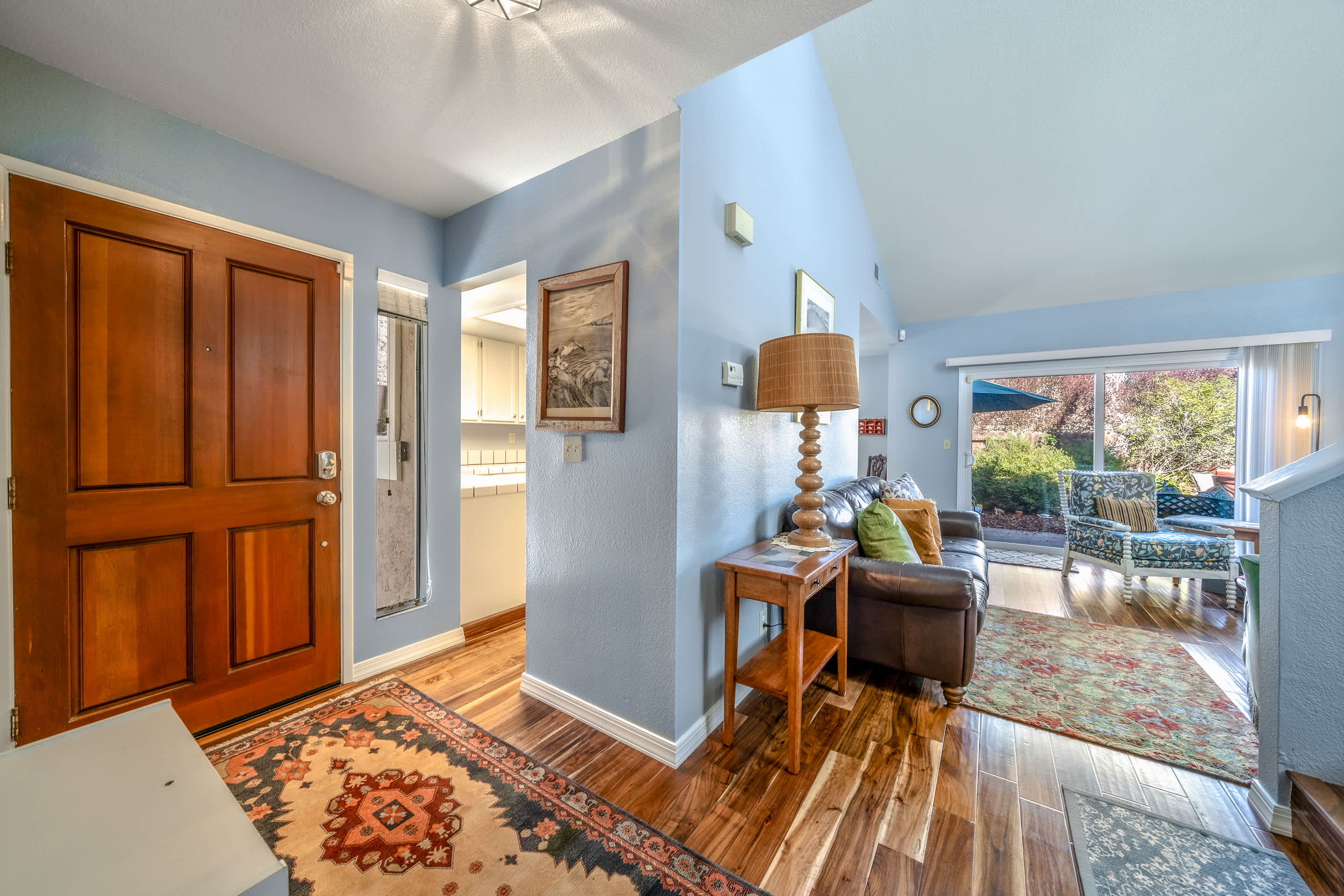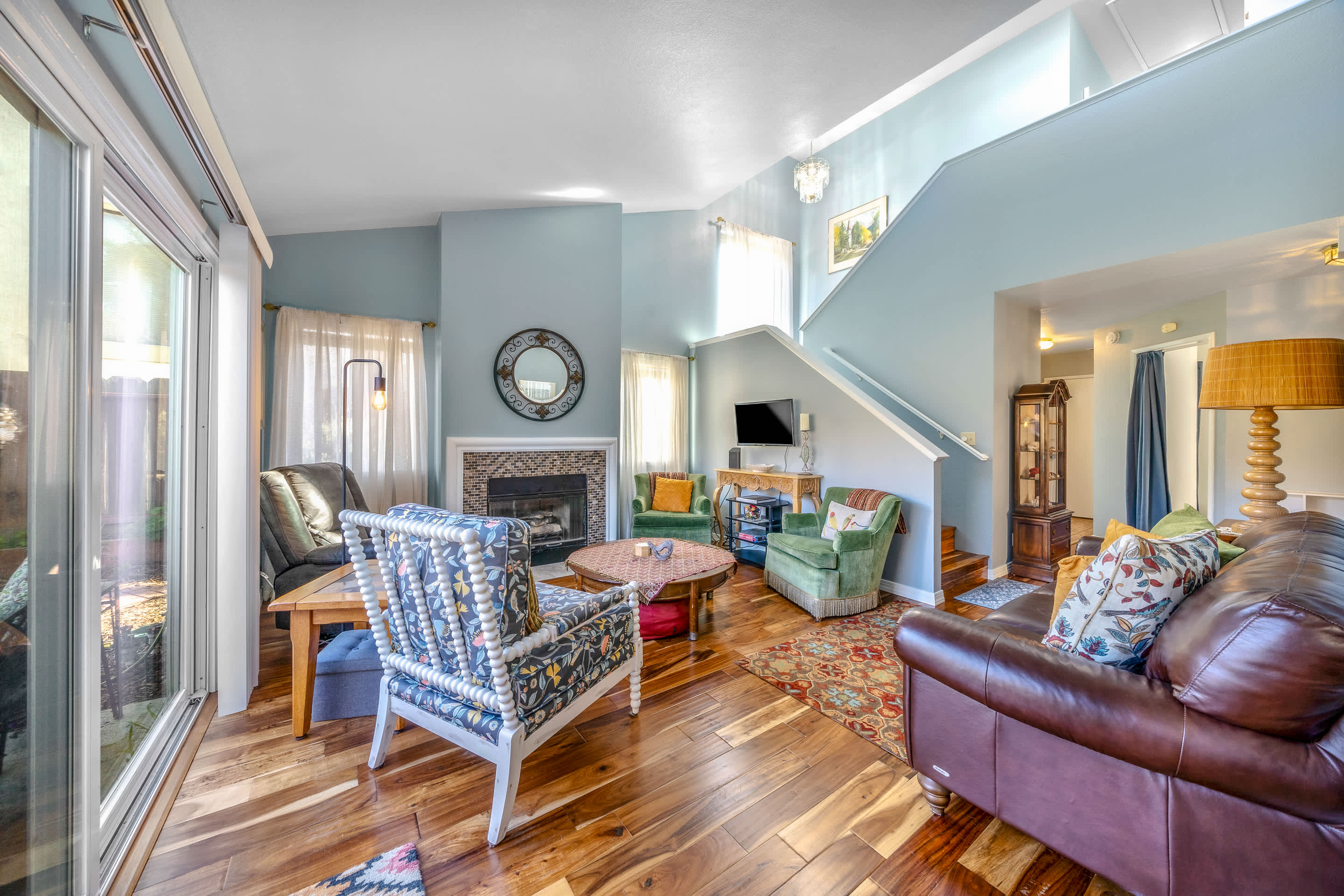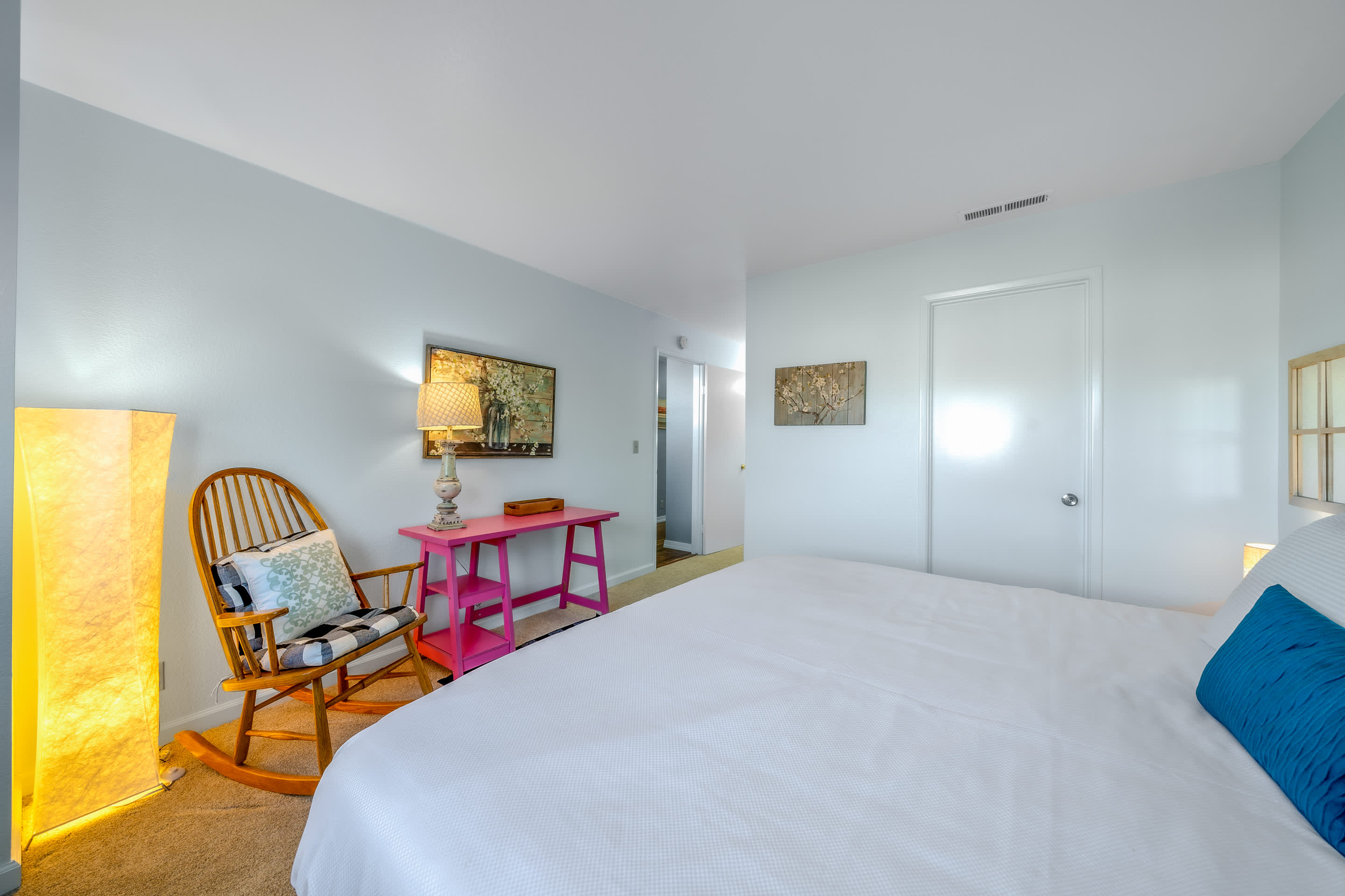 Step inside the home to be greeted by a cozy and inviting interior, thoughtfully curated with stylish décor and comfortable furnishings to maximize your down time. The charming living room offers an eclectic variety of seating options for whatever your mood, allowing you to fully relax as you stream a movie on the smart TV. The spacious kitchen is fully equipped for the convenience of preparing delicious homecooked meals, with ample counterspace and cabinetry stocked with cookware and dining ware. Enjoy meals together seated at the dining room table with chairs for 6 or explore the option to dine al fresco just off the back patio, surrounded by the sights and sounds of nature.
