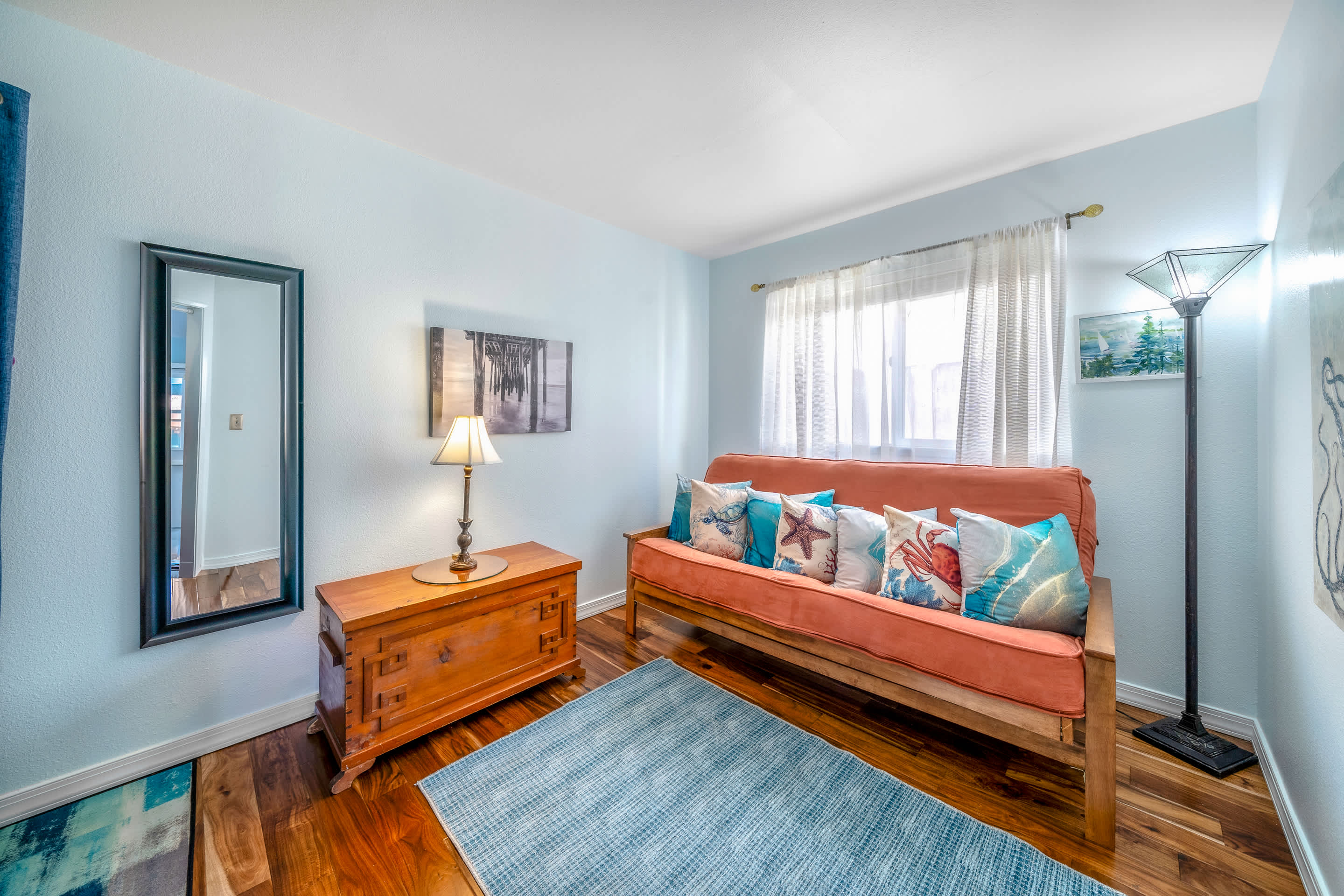 This home comfortably sleeps up to 8 guests between 3 private bedrooms and a full futon.
