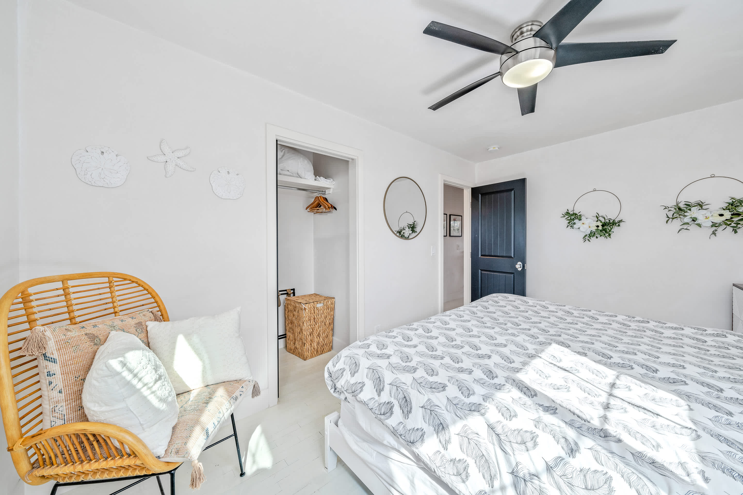 Bedroom 1: King bed, premium linens, coastal décor