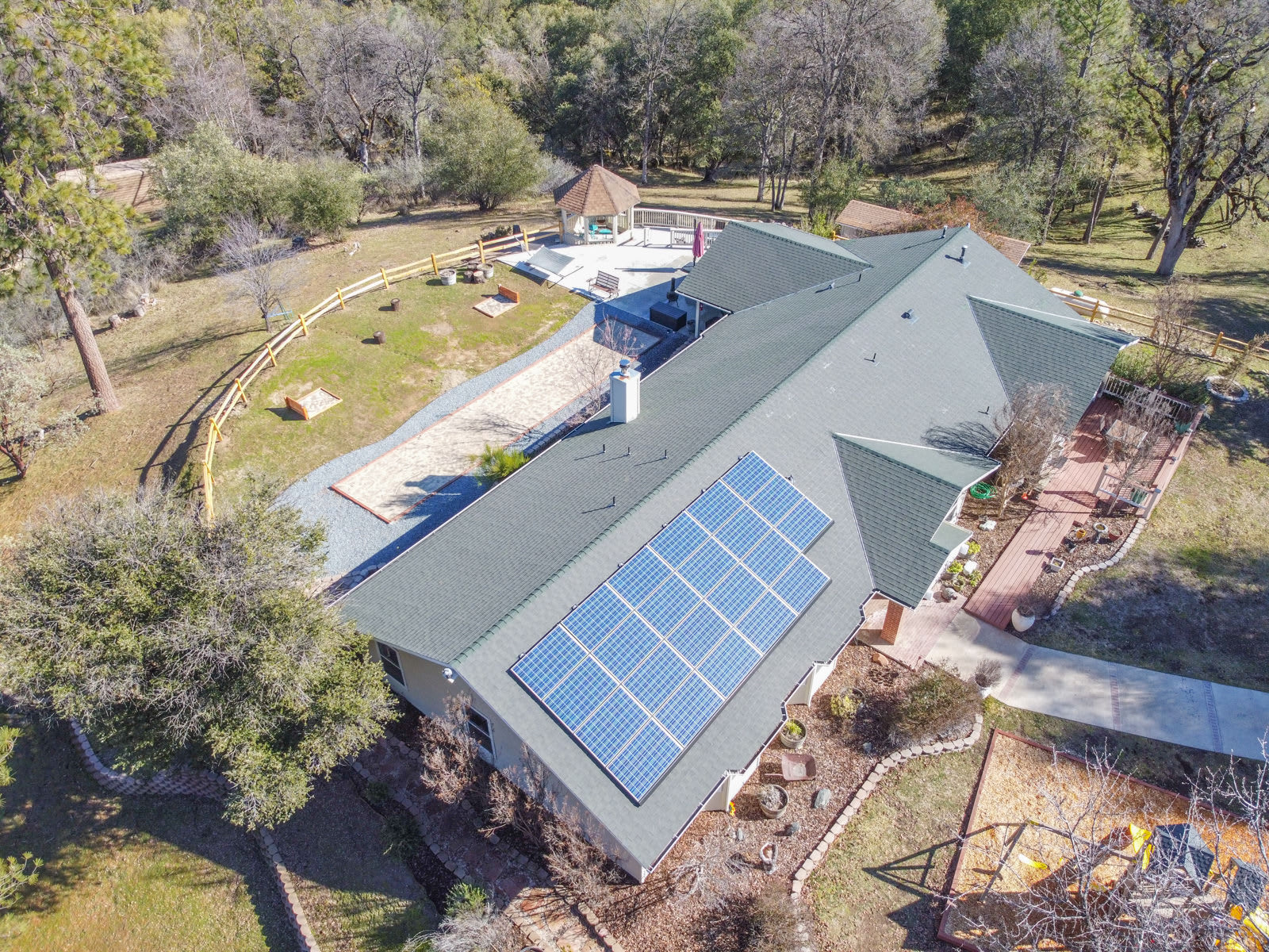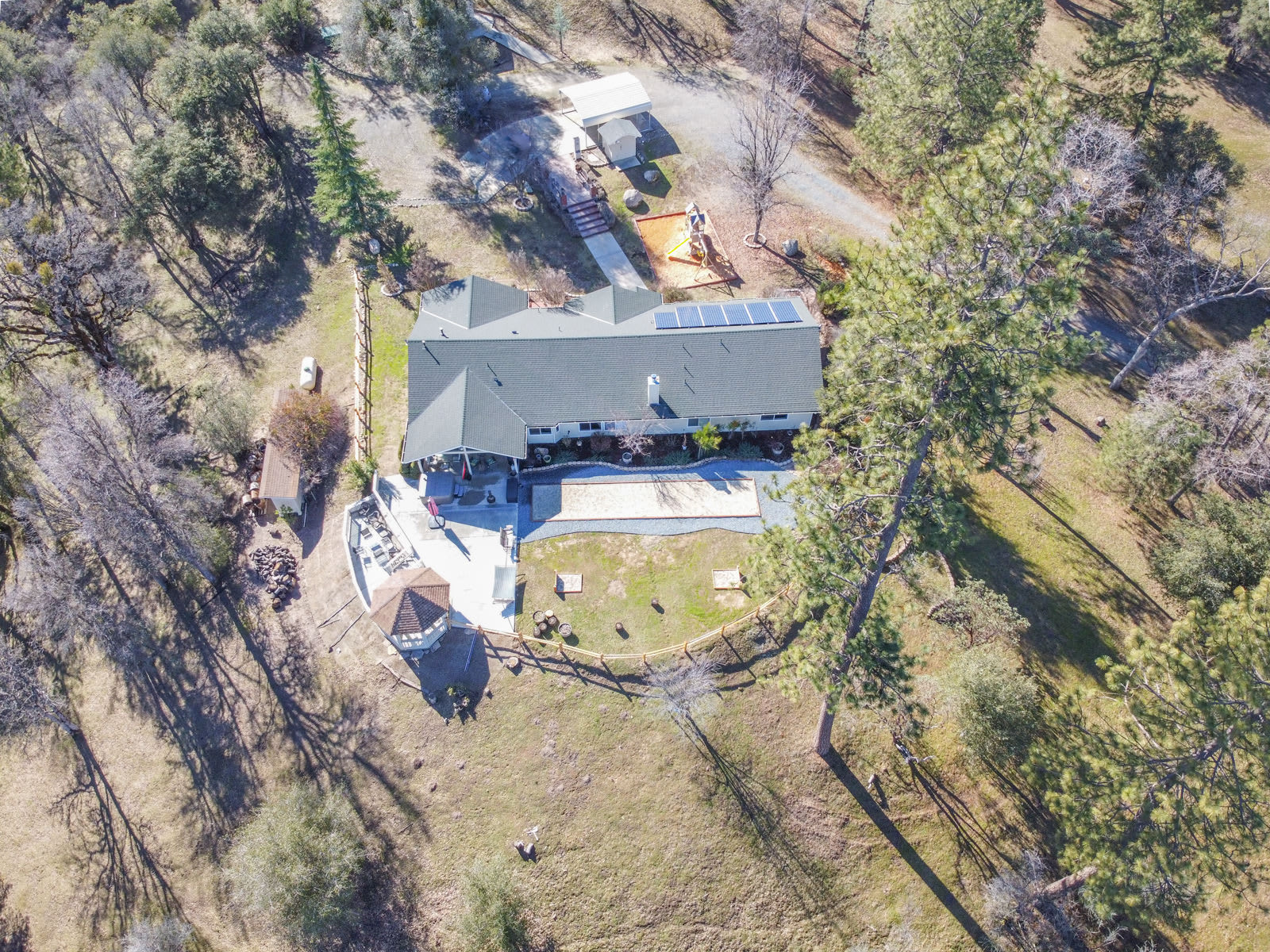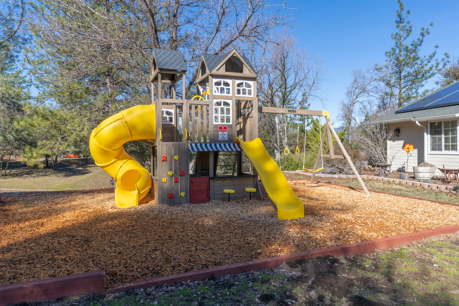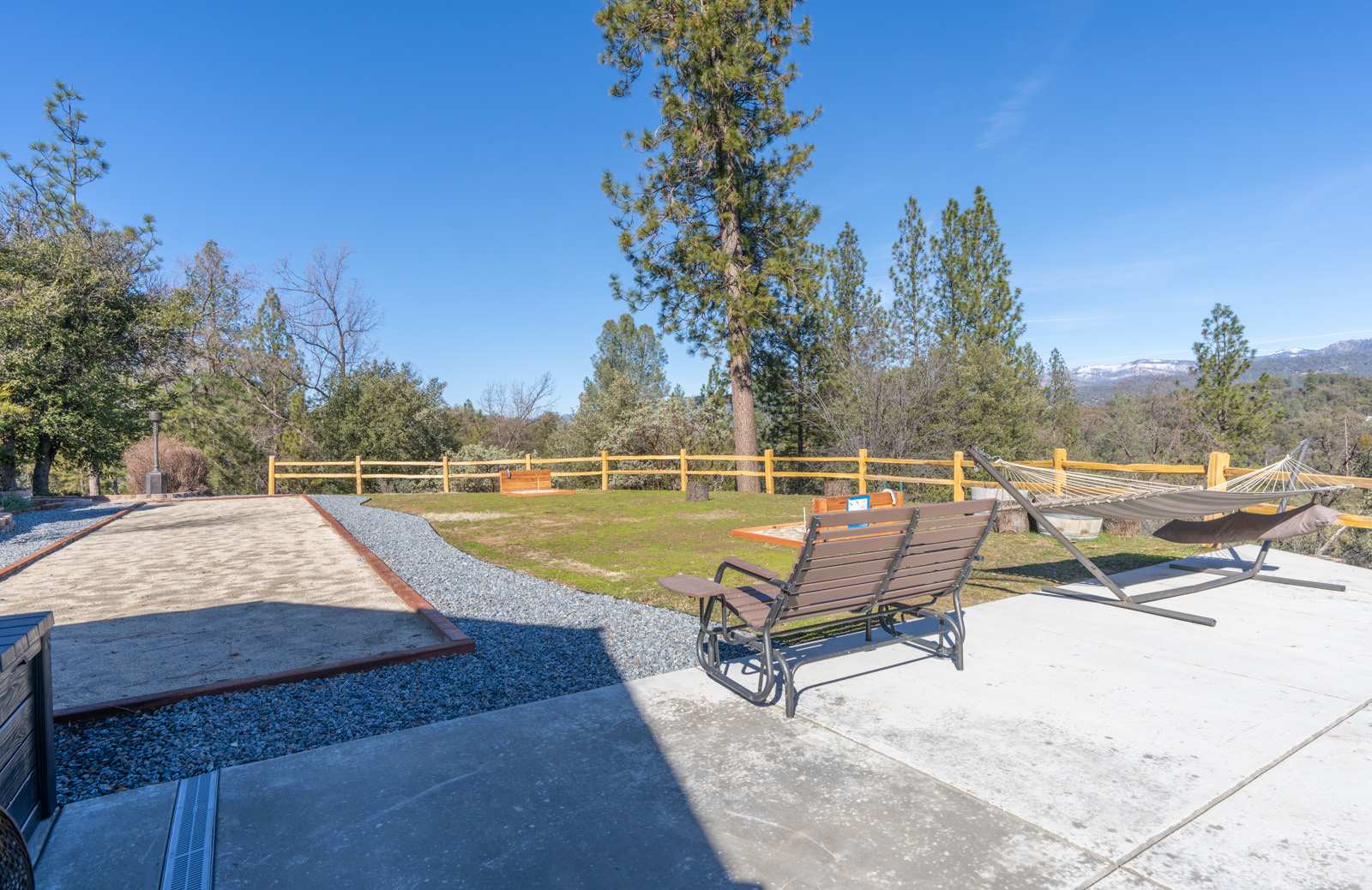 Set on a large private property overlooking breathtaking mountain and forest views, the home is surrounded by natural beauty and features outdoor amenities including a kid's playground, private hot tub, and huge outdoor patio complete with space for horseshoes and corn hole. The location offers convenient proximity to Yosemite, Bass Lake and Sierra National Forest, so you can make the most of your time outdoors whether you’re relaxing in the home’s hammock or venturing out to explore the area’s endless hikes and attractions.