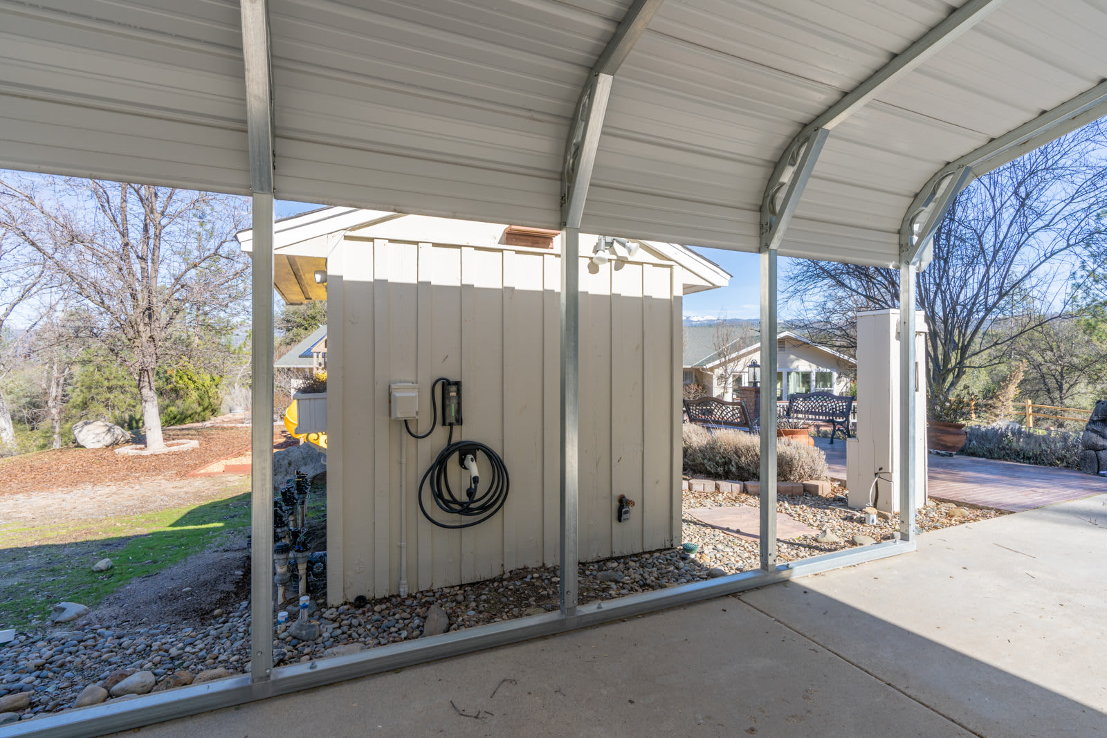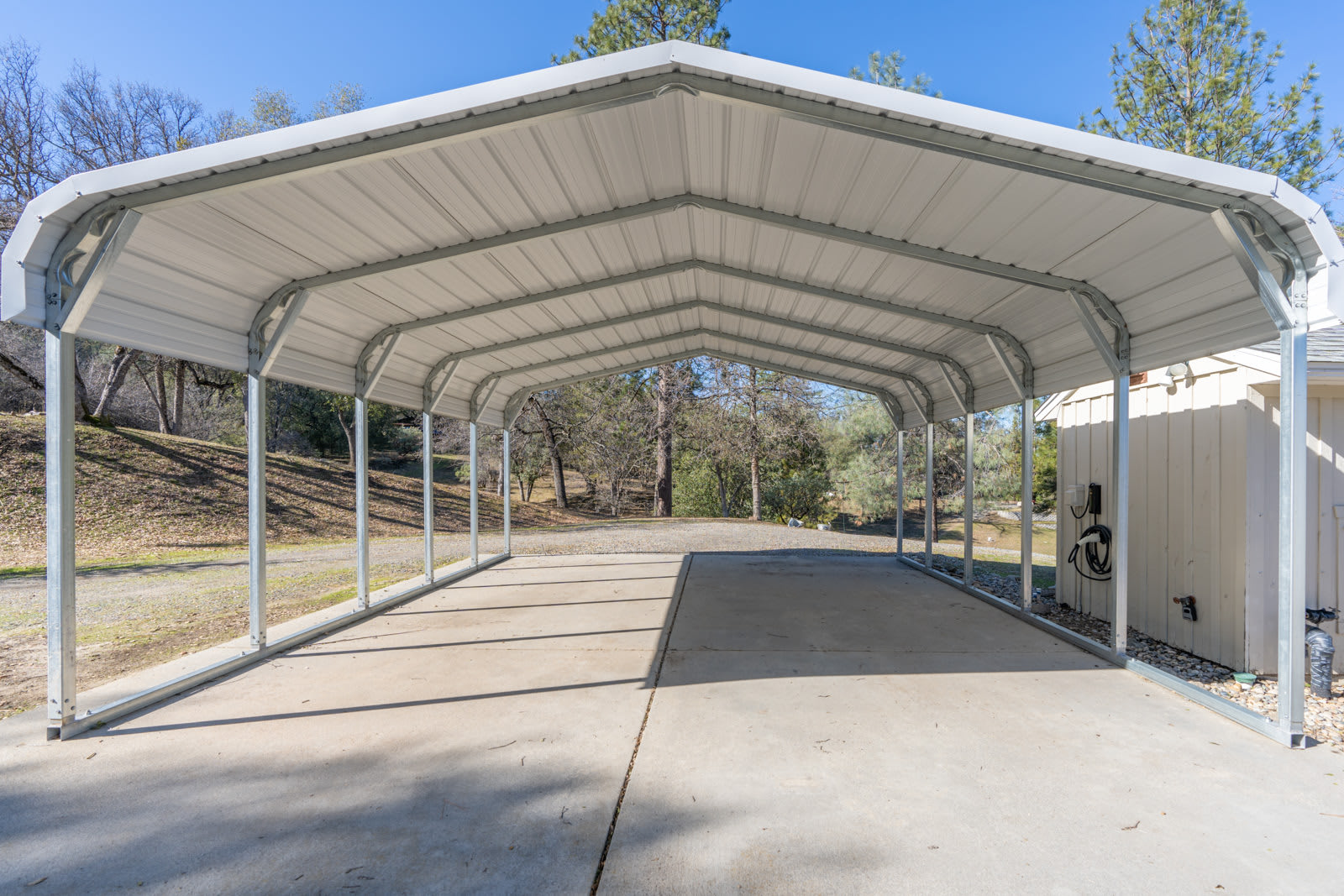 - Cameras facing main driveway, mounted on carport and facing main entry of home.