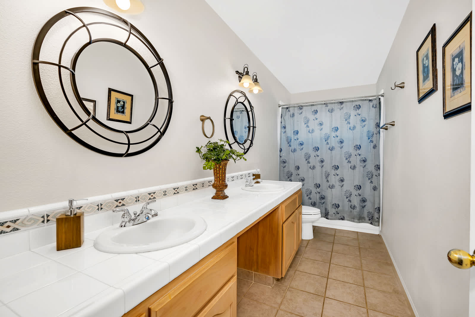 - The home has 2 additional bathrooms, each with a shower/tub combo.