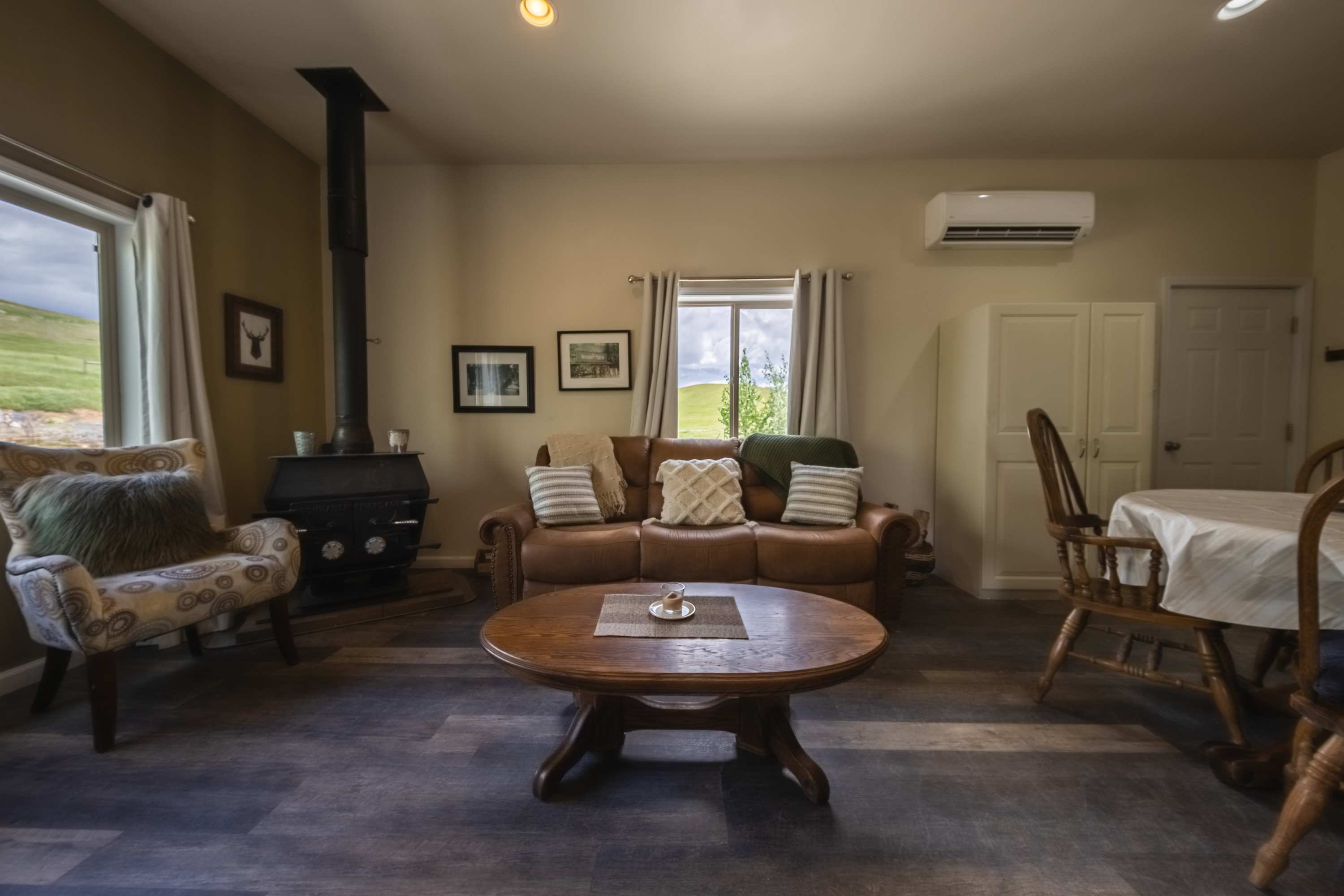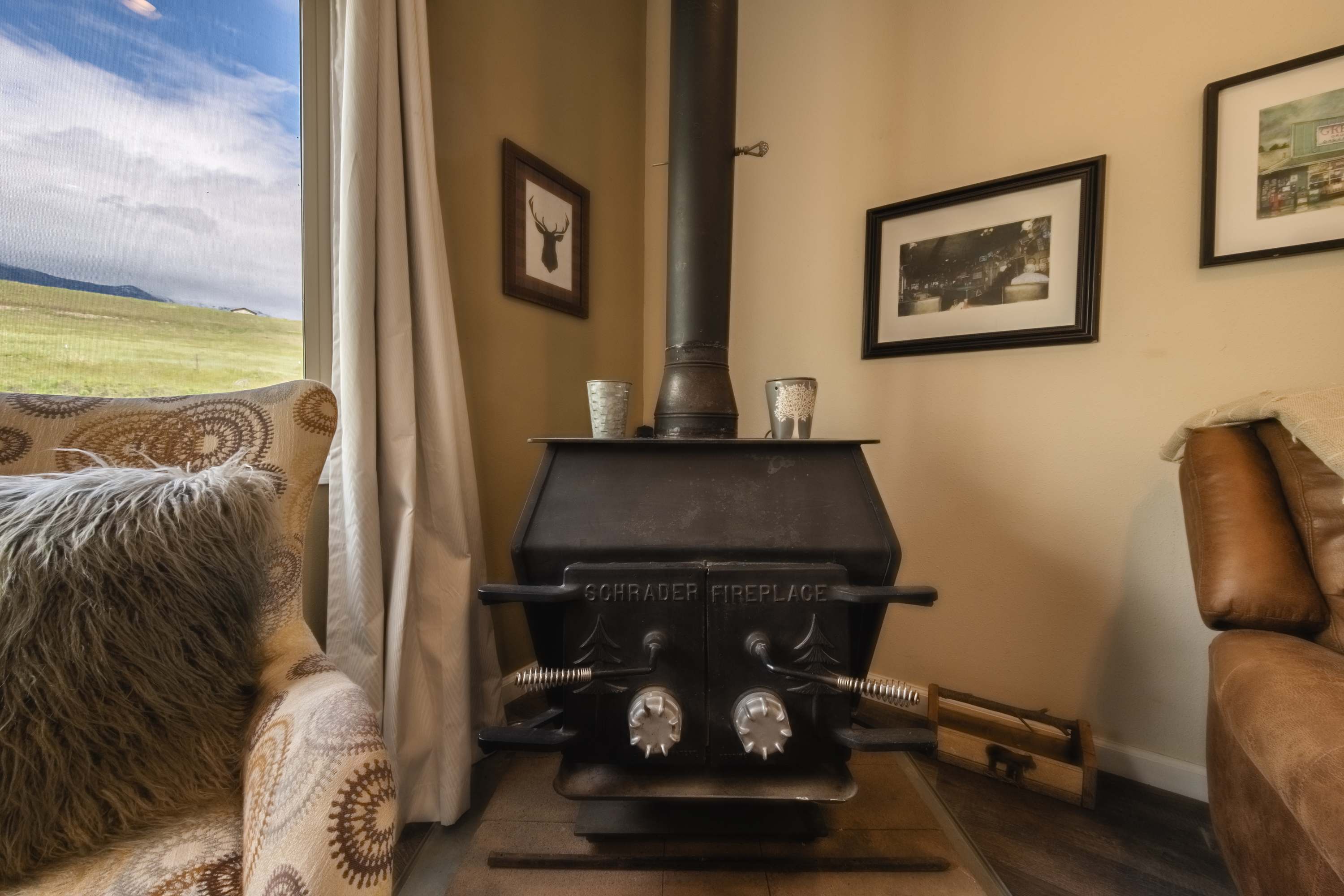 Located in a private, rural area just outside of the city, the peace and privacy you’ve been seeking are in abundance, offering panoramic picturesque views of the prairie and mountains as far as the eye can see. Whether you’re lounging on the shaded porch with your morning cup of coffee or refreshing afternoon cocktail, or gathering around the firepit for an evening of toasty treats under the stars, you’ll enjoy each and every moment of this nature lover’s getaway.