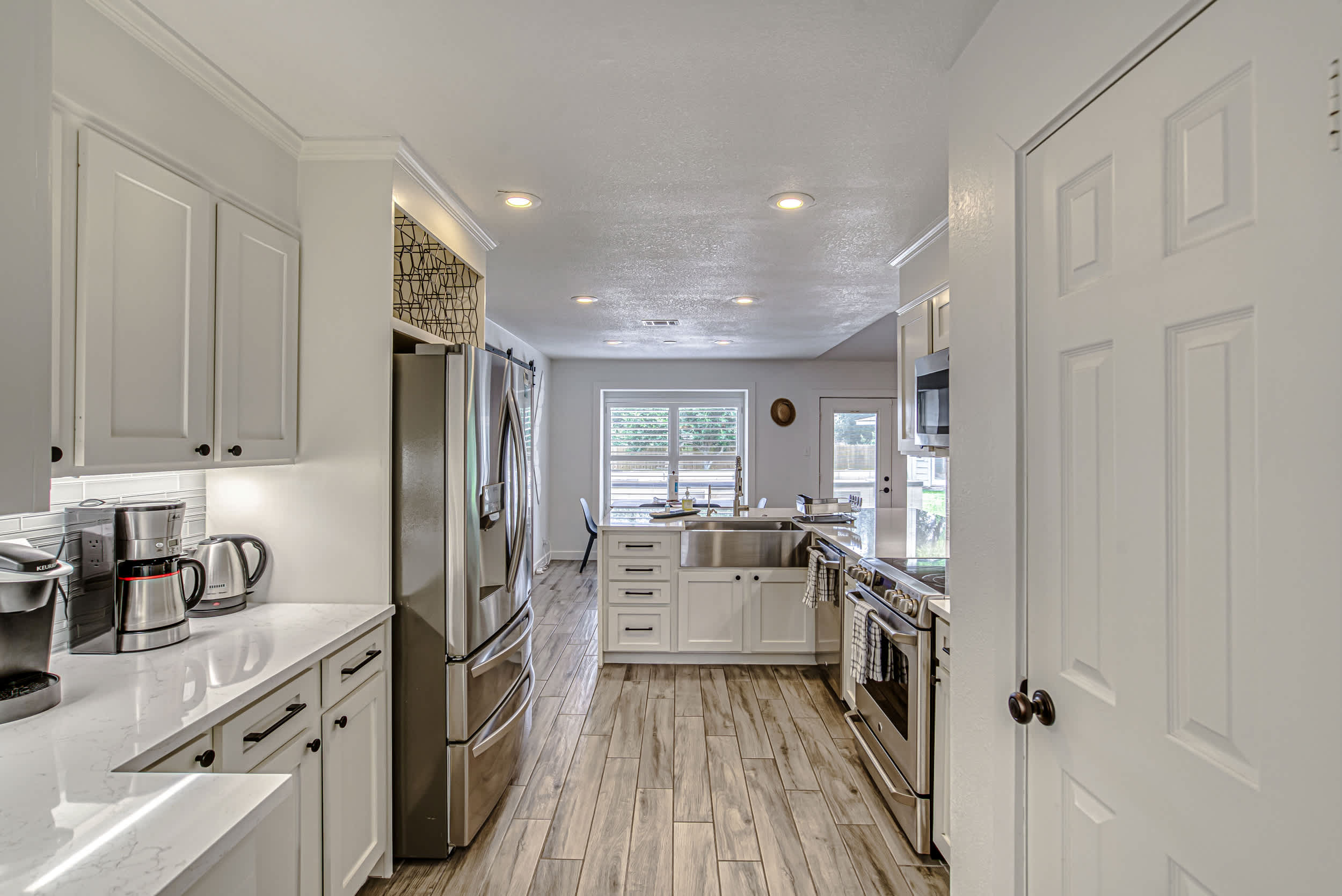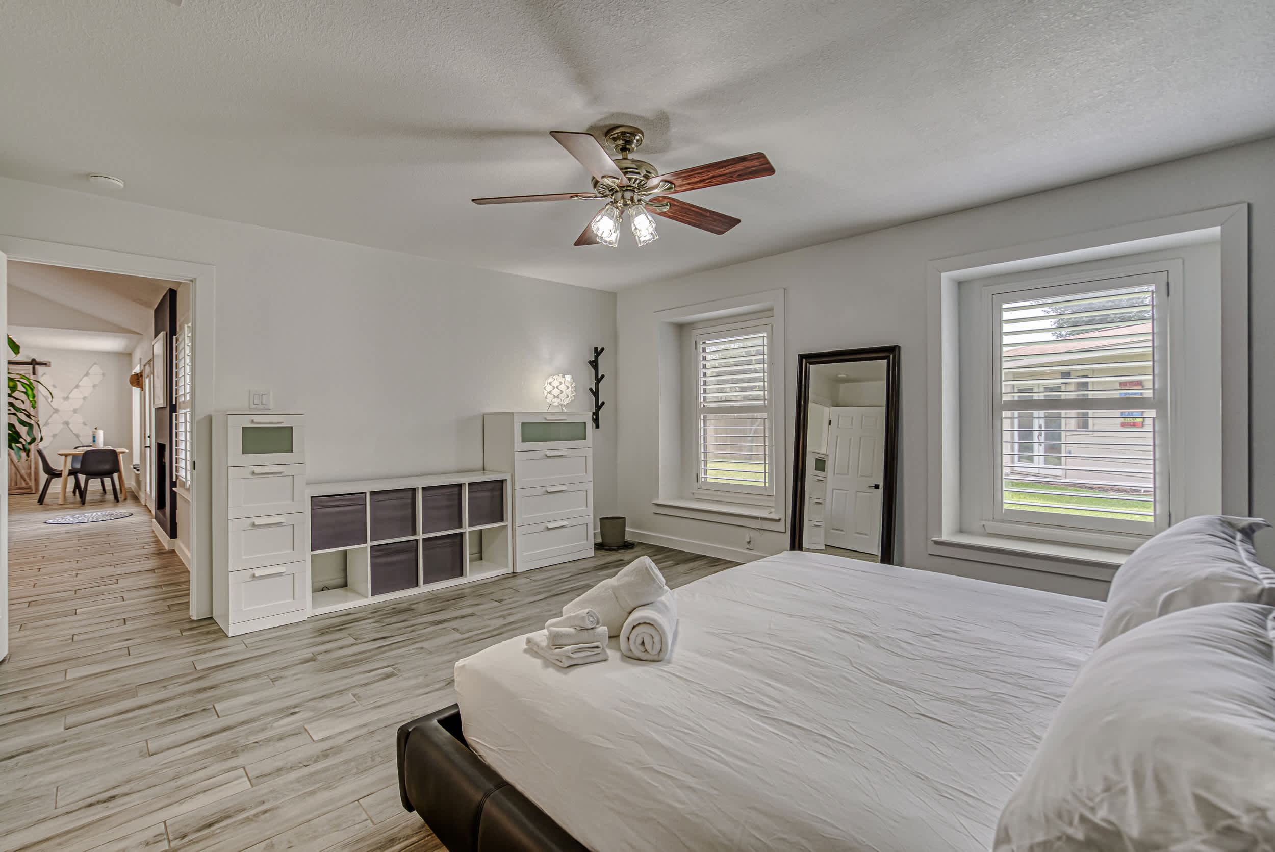 This home comfortably accommodates up to 7 guests between 3 private bedrooms and an additional twin XL bed in the front room.