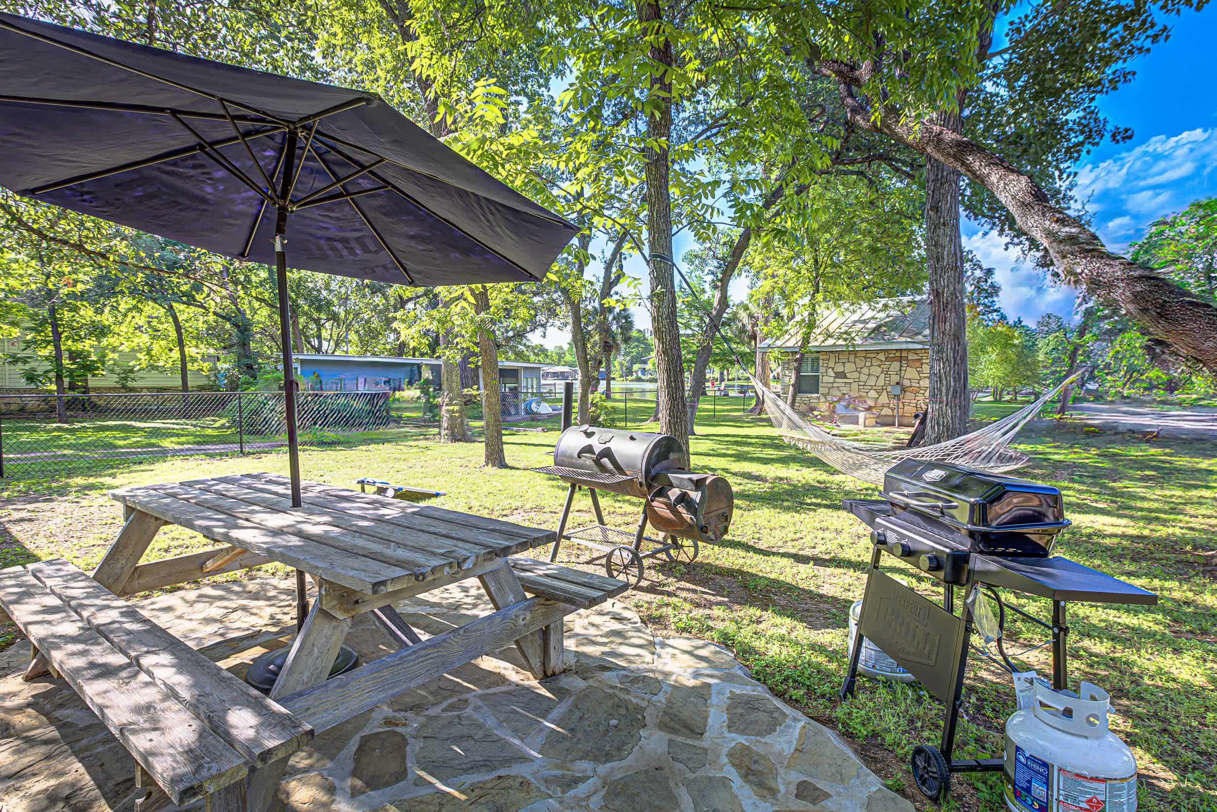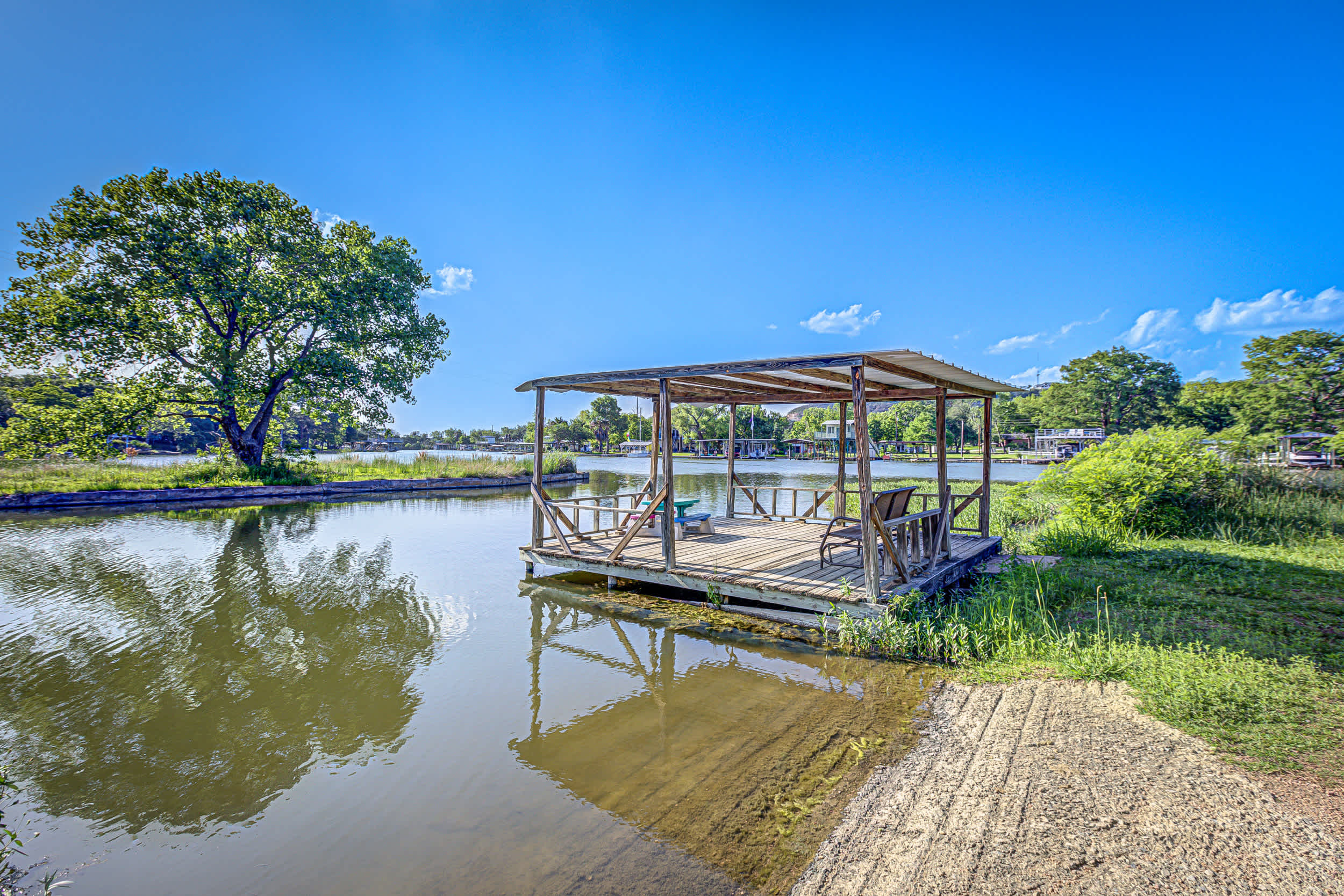 Offering the perfect blend of relaxing lake views, small-town hospitality, and a rich history, this will be a memorable getaway that will have you wanting to return time and time again. Whether you’re in the mood for relaxation or adventure, this casita has you covered. Advantageously located to take full advantage of all the water-themed activities your heart desires. Boating, fishing, or soaking in the sun are all on the menu with the community covered waterfront deck and boat launch providing ease of access to the lake just a short distance away. Prepare an authentic southern barbeque on the propane grill or charcoal smoker as you take a break under the shade of the natural canopy, dining on your well-earned fare al fresco at the outdoor table with lake views of a quiet cove on Lake LBJ.