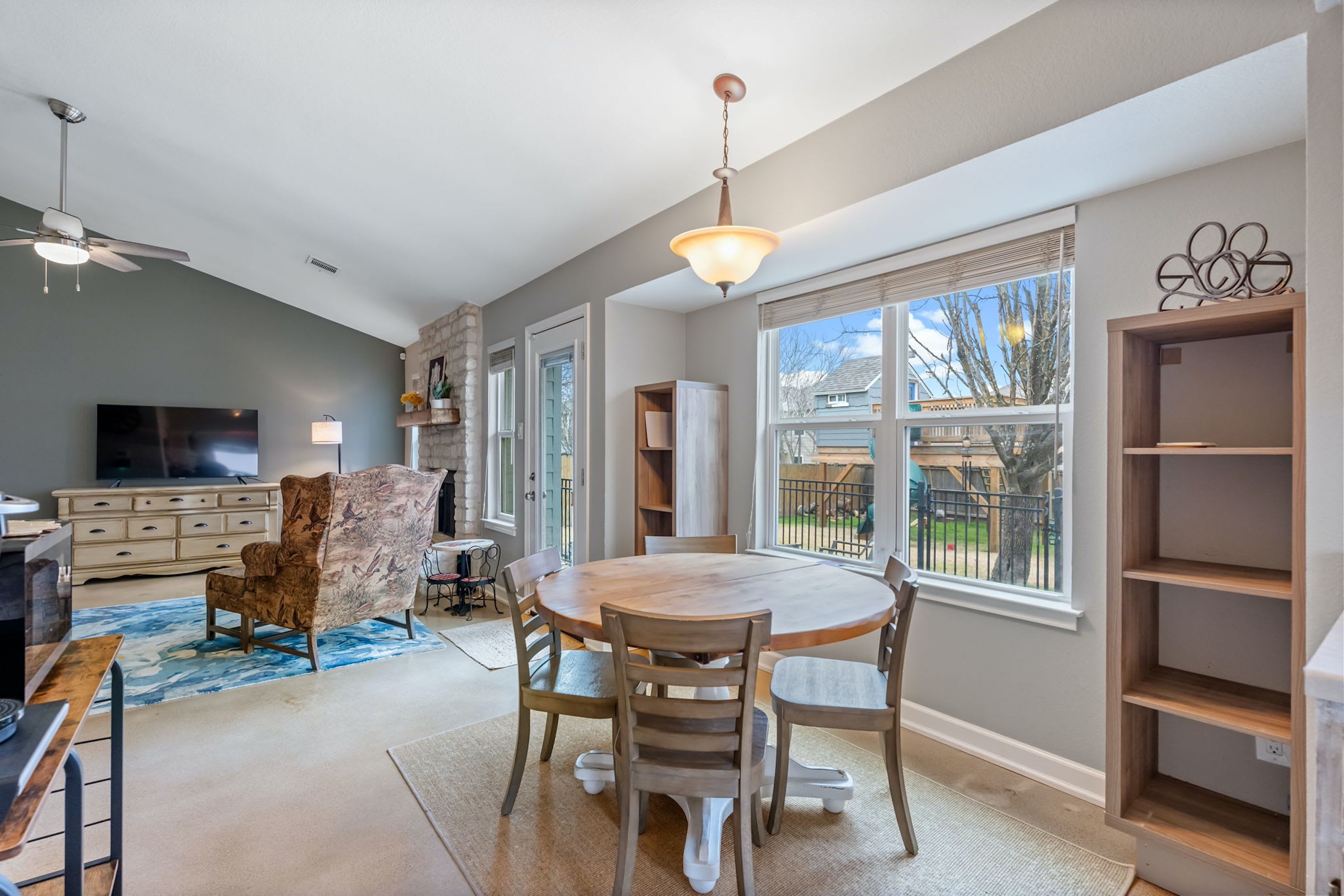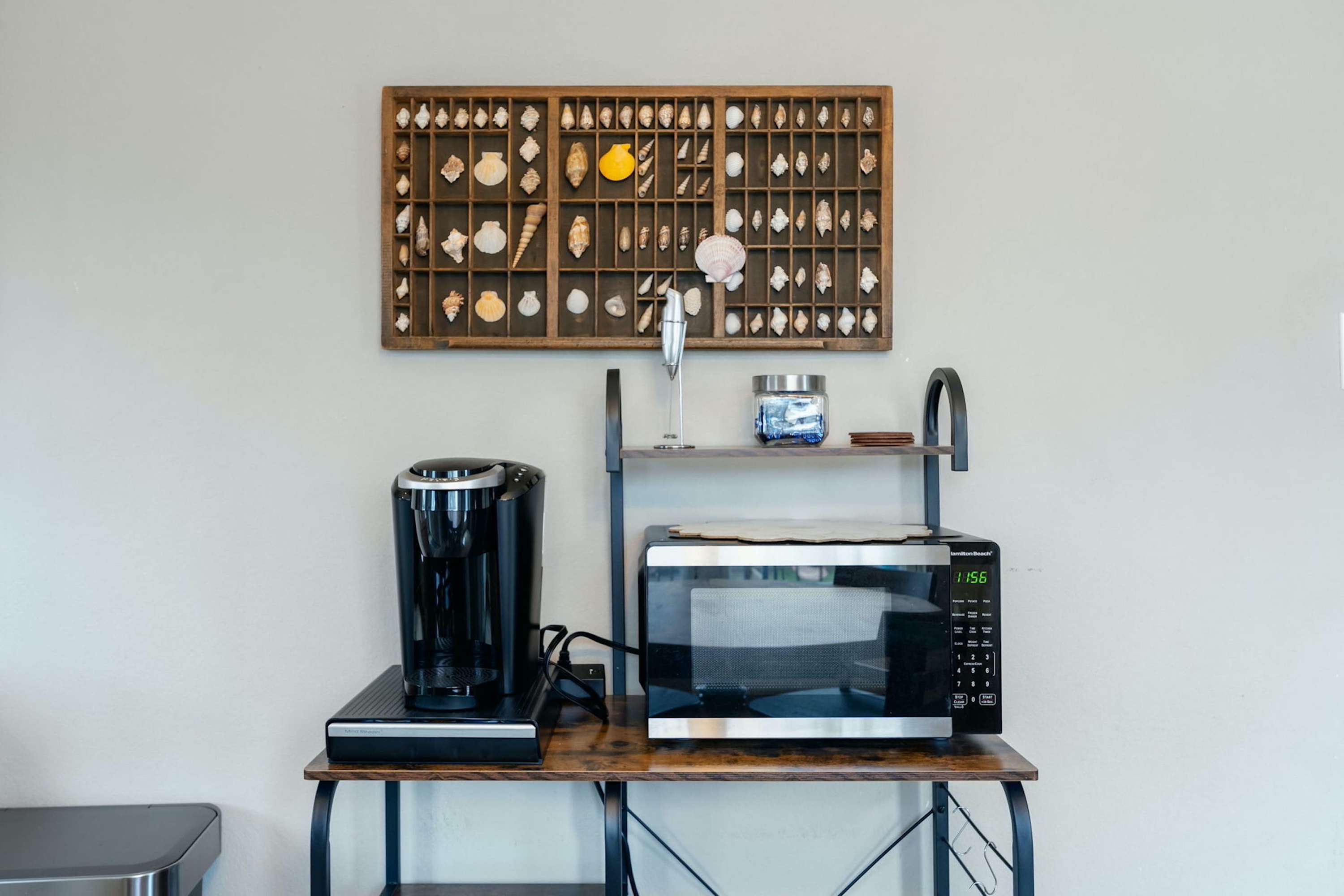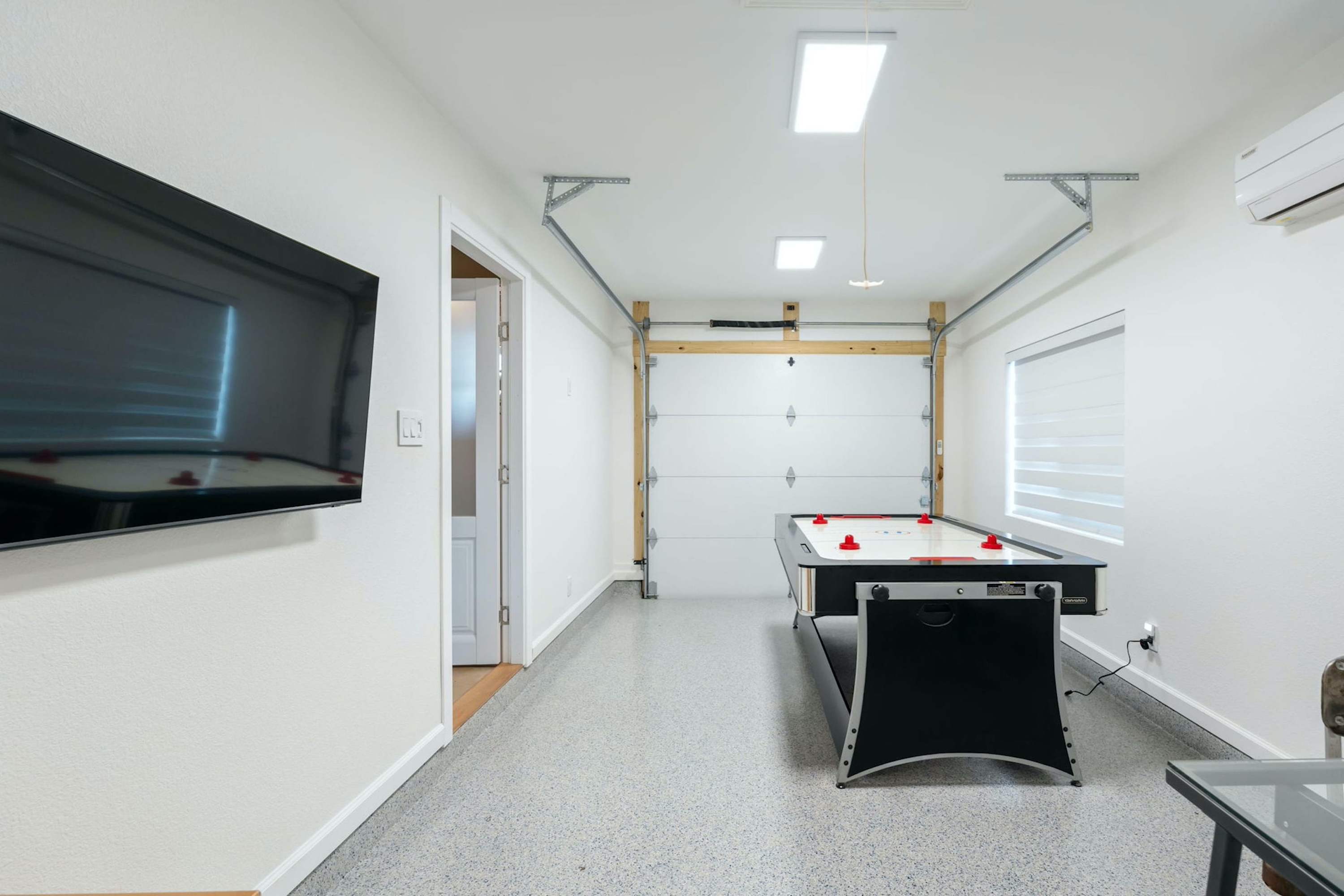 Indoors, bright spaces are complimented by stylish furnishings and décor, with enough room for everyone to spread out while finding opportunities to come together and make lasting memories. The living room offers a plush sofa and armchair seating along with a smart TV for keeping up on all of your stream-ready shows. The kitchen is well-equipped for any of your mealtime endeavors, offering full-sized appliances and ample counterspace and cabinetry for preparation and storage. Dine together at the table with seating for 4 or host a fun-filled family game night with backyard views serving as a picturesque backdrop. When you’re feeling the need for a little competition, head into the game room where an air hockey table will provide hours of challenging fun. Should you need to keep up on emails while away, a convenient workspace is also available, allowing you to fully focus on the task at hand.