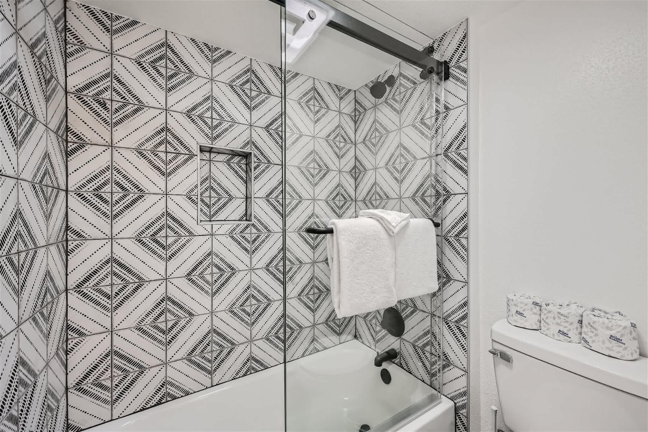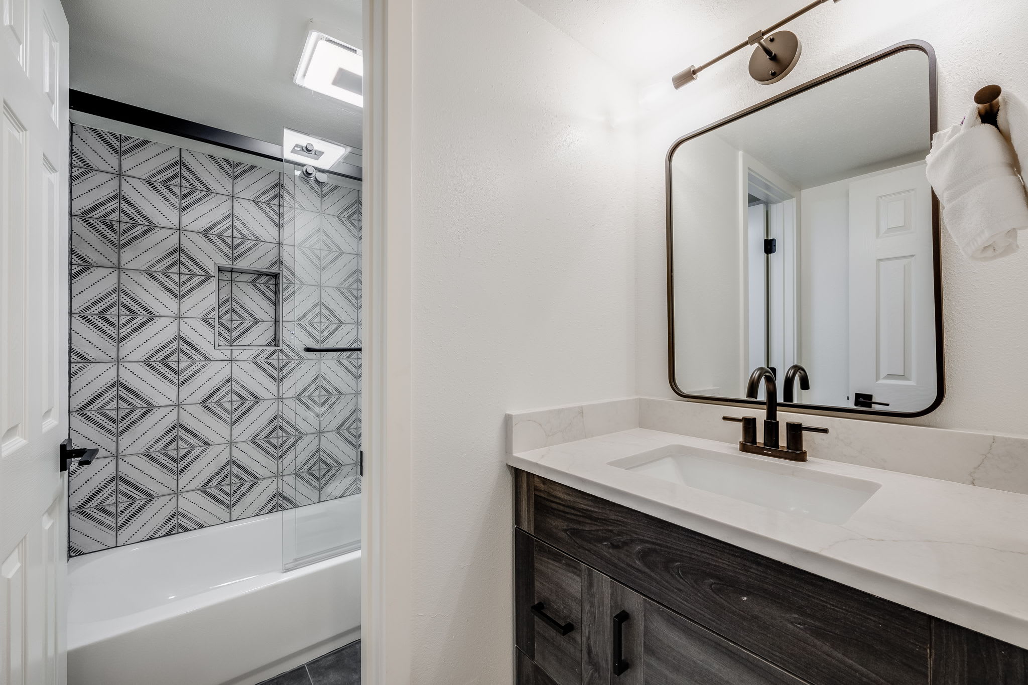 • Bathroom 2 (hall): Single vanity, shower/tub combo