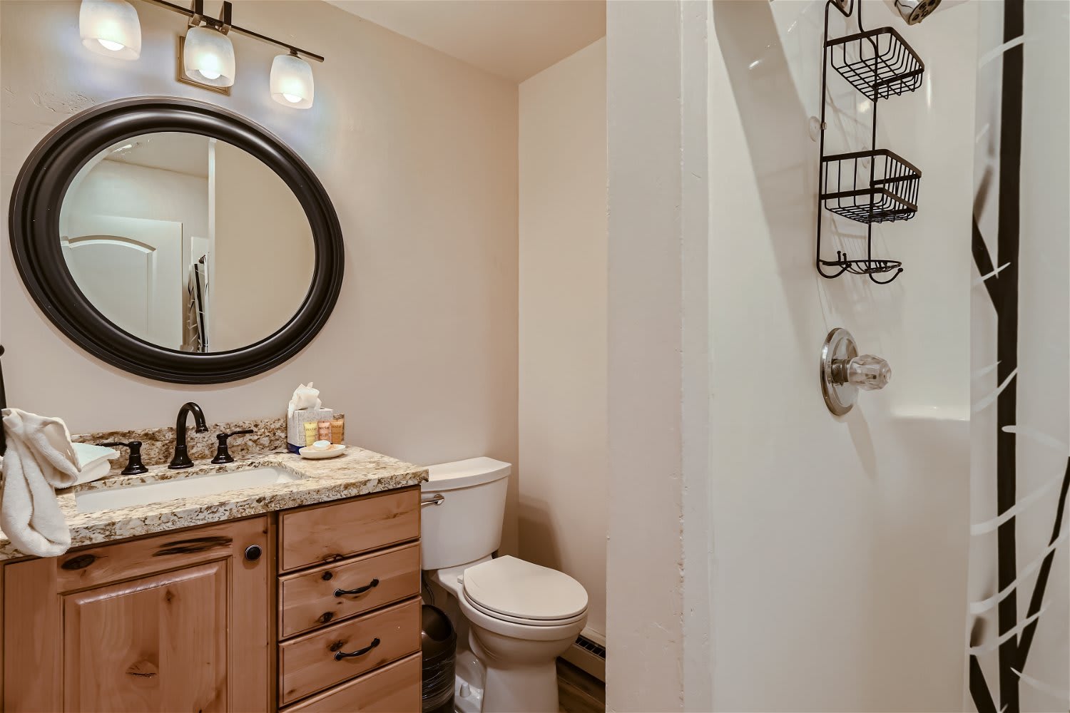• Bathroom 1 (hall): Single vanity and walk-in shower