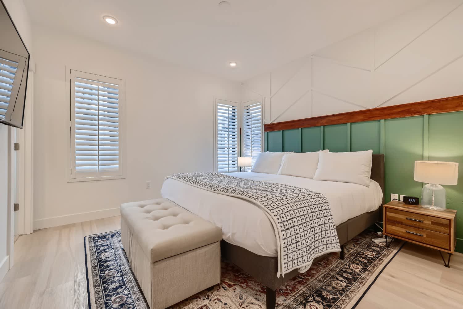 • Bedroom 1 (Primary): King bed, Smart TV; sleeps 2