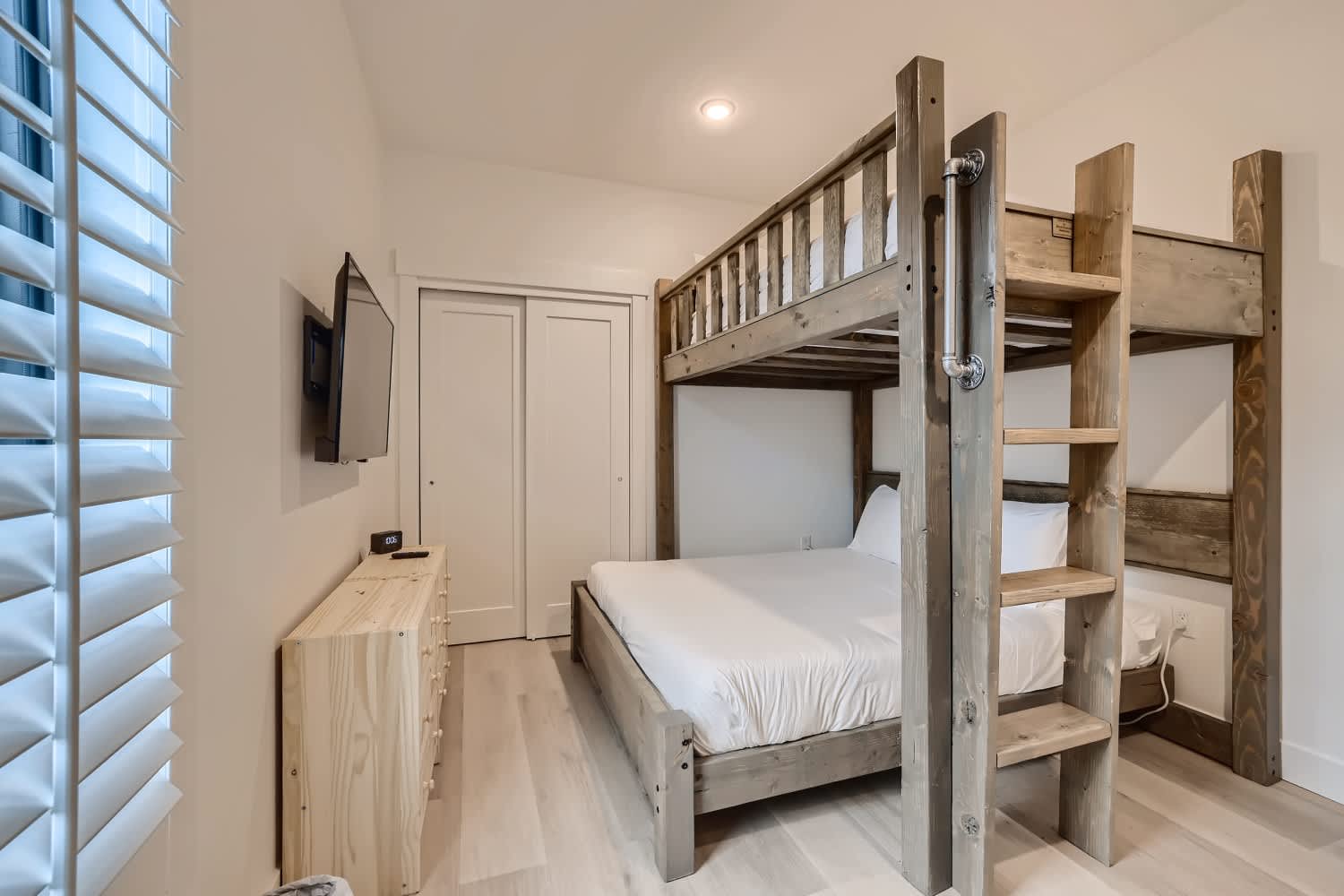 • Bedroom 2: Full-over-Queen bunk bed, Smart TV; sleeps up to 3–4 depending on preferences