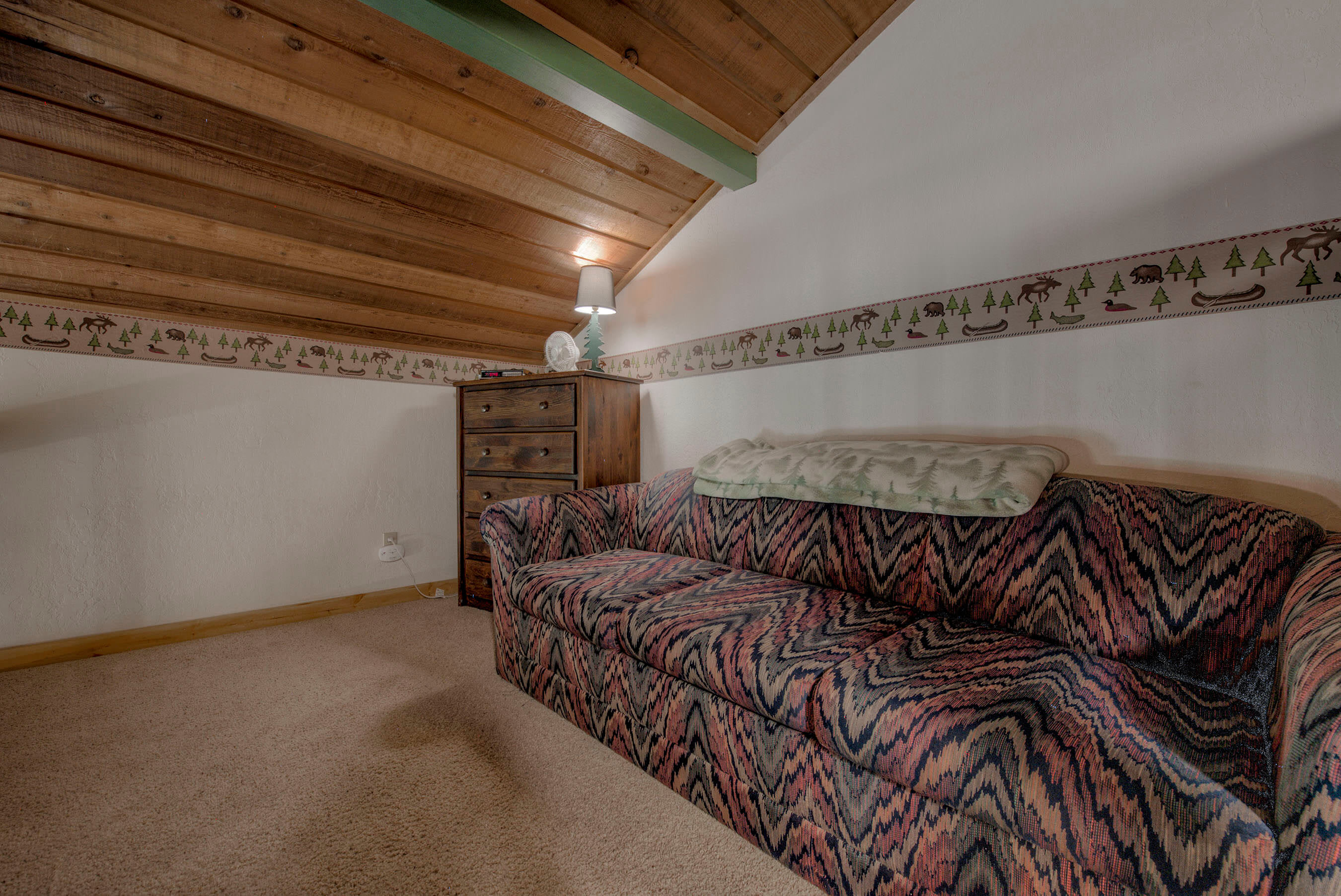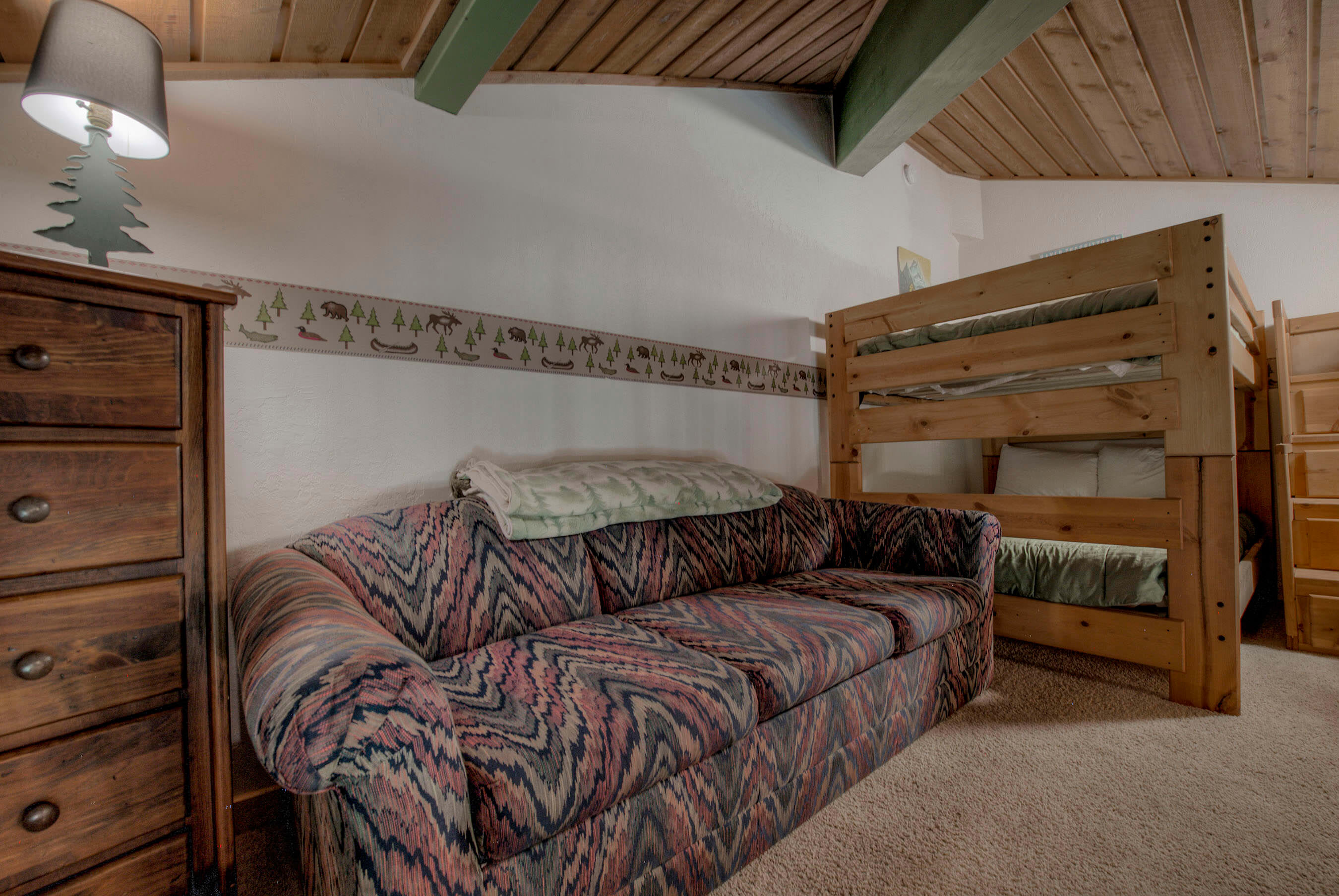 • Loft (ladder access): Queen-over-Queen bunk (sleeps up to 4) plus a sofa bed for flexible sleeping