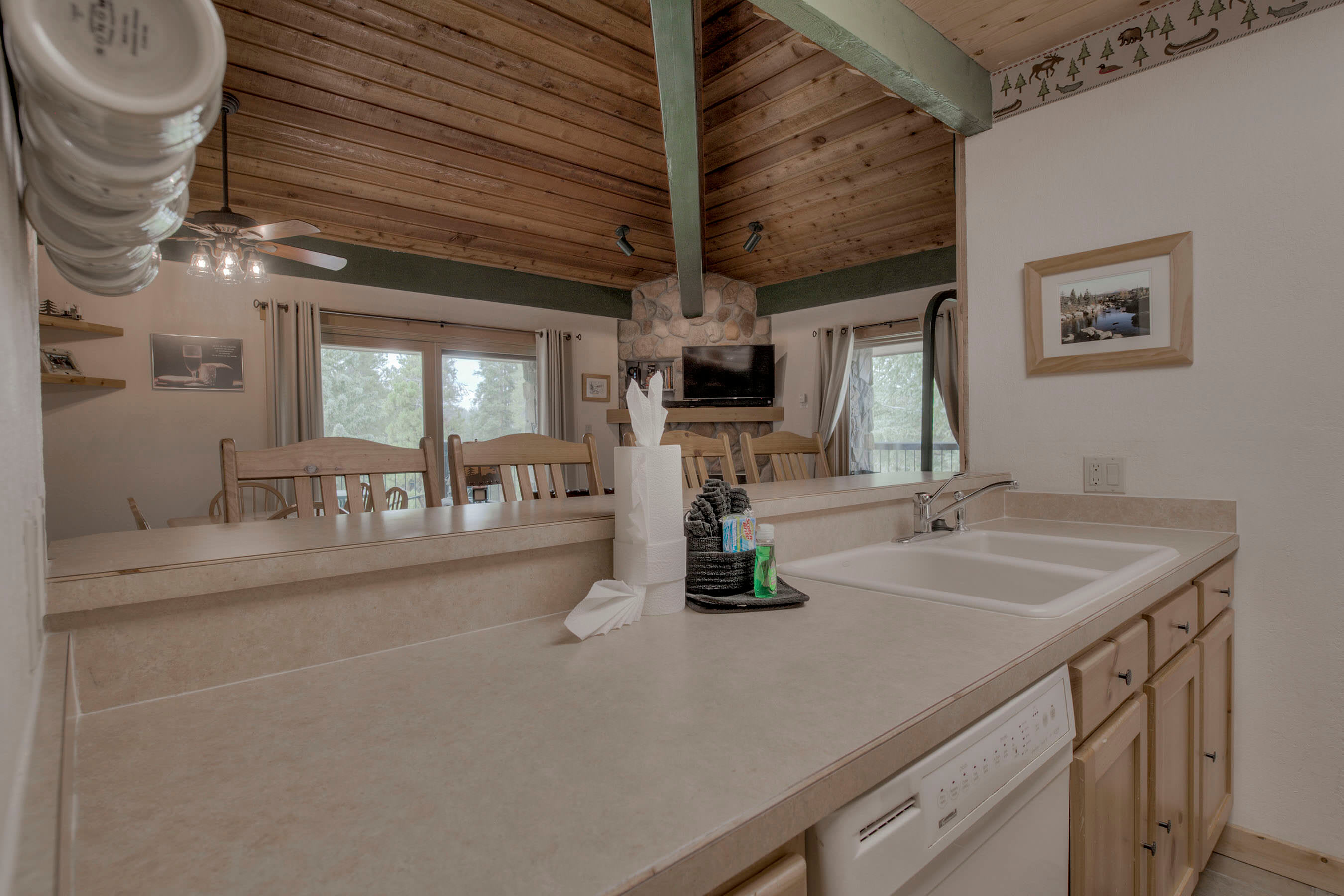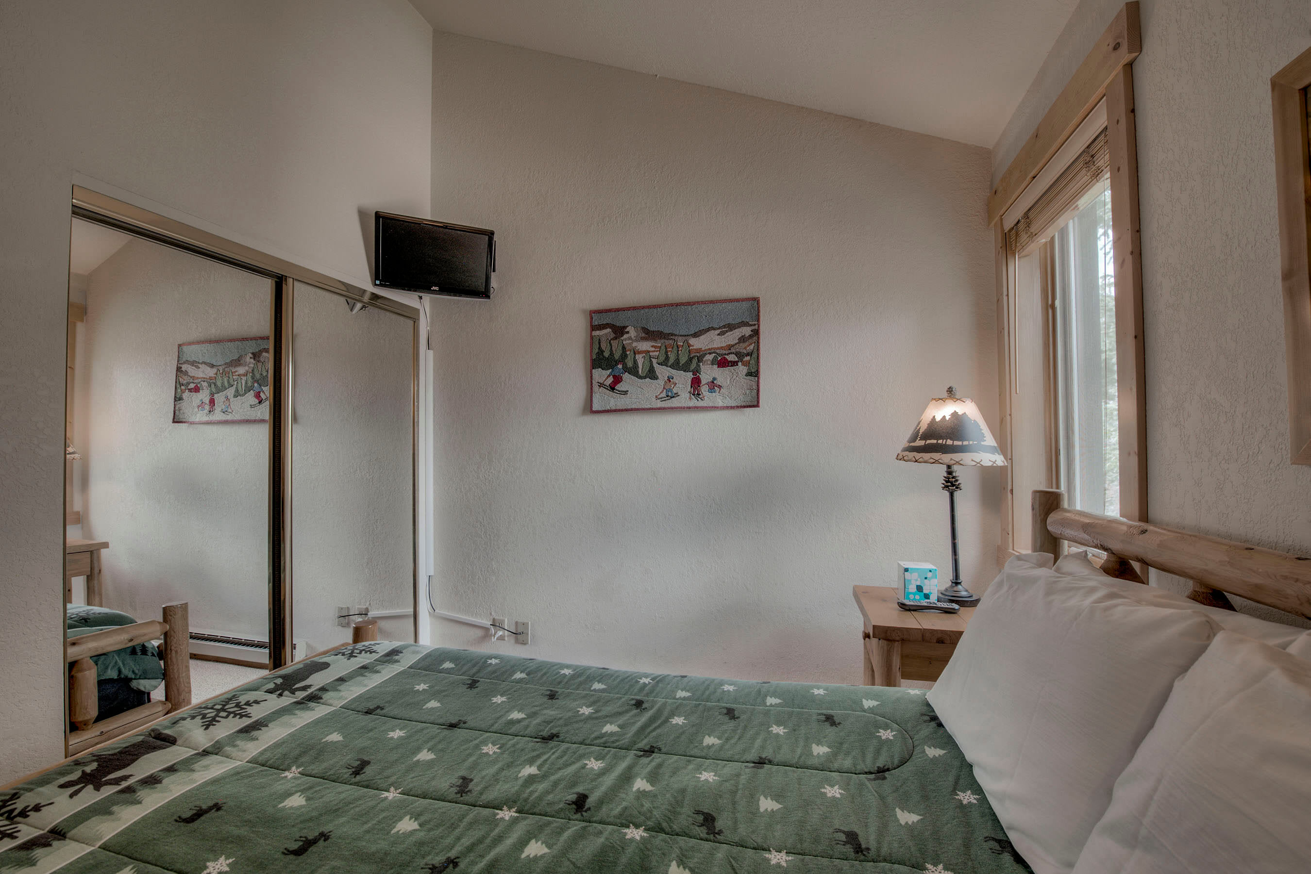 • Bedroom 2 (main floor): Queen bed, sleeps 2, TV