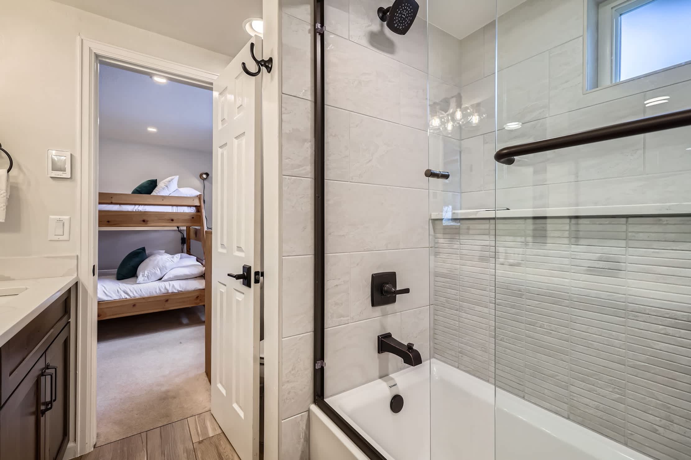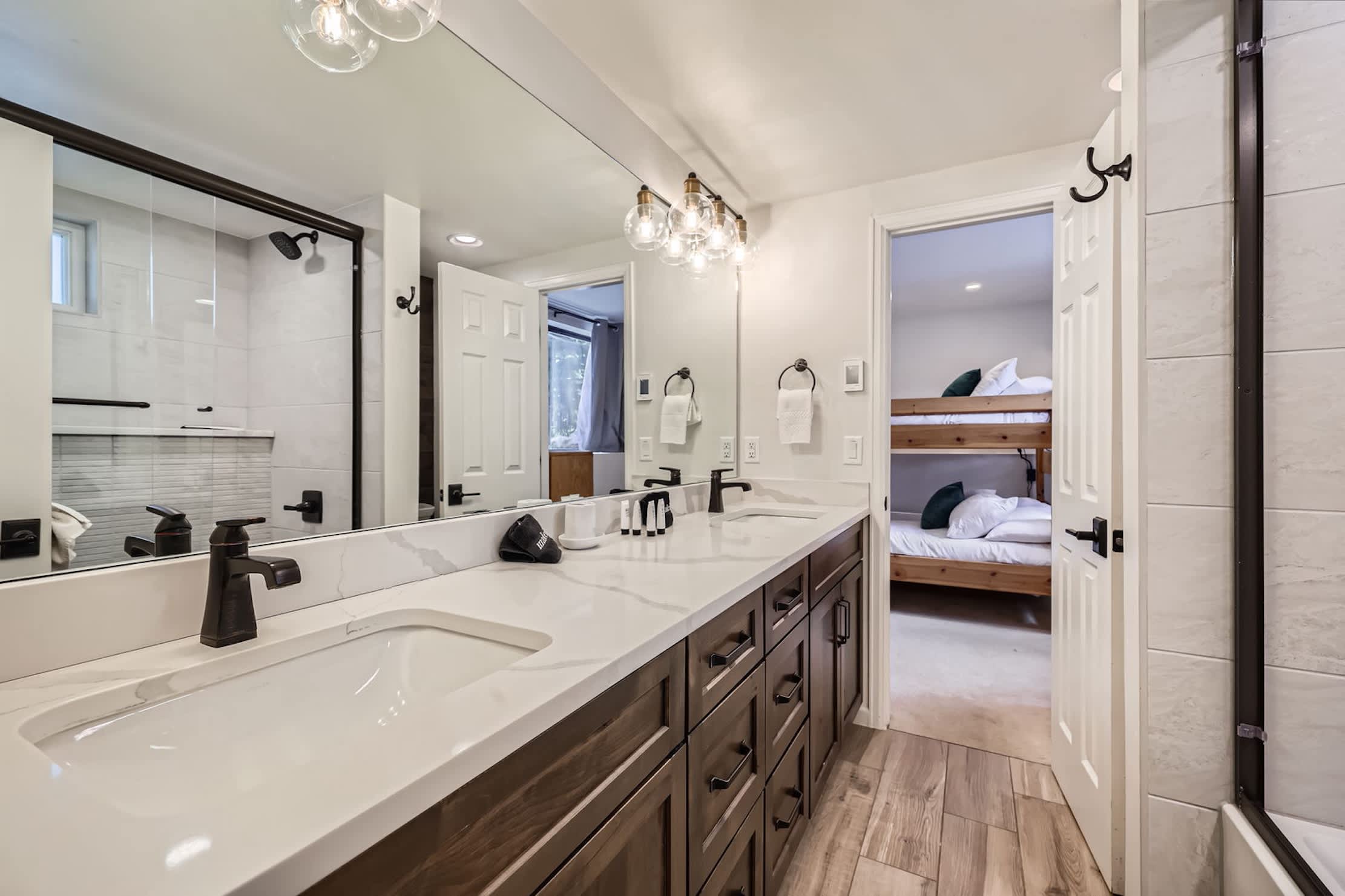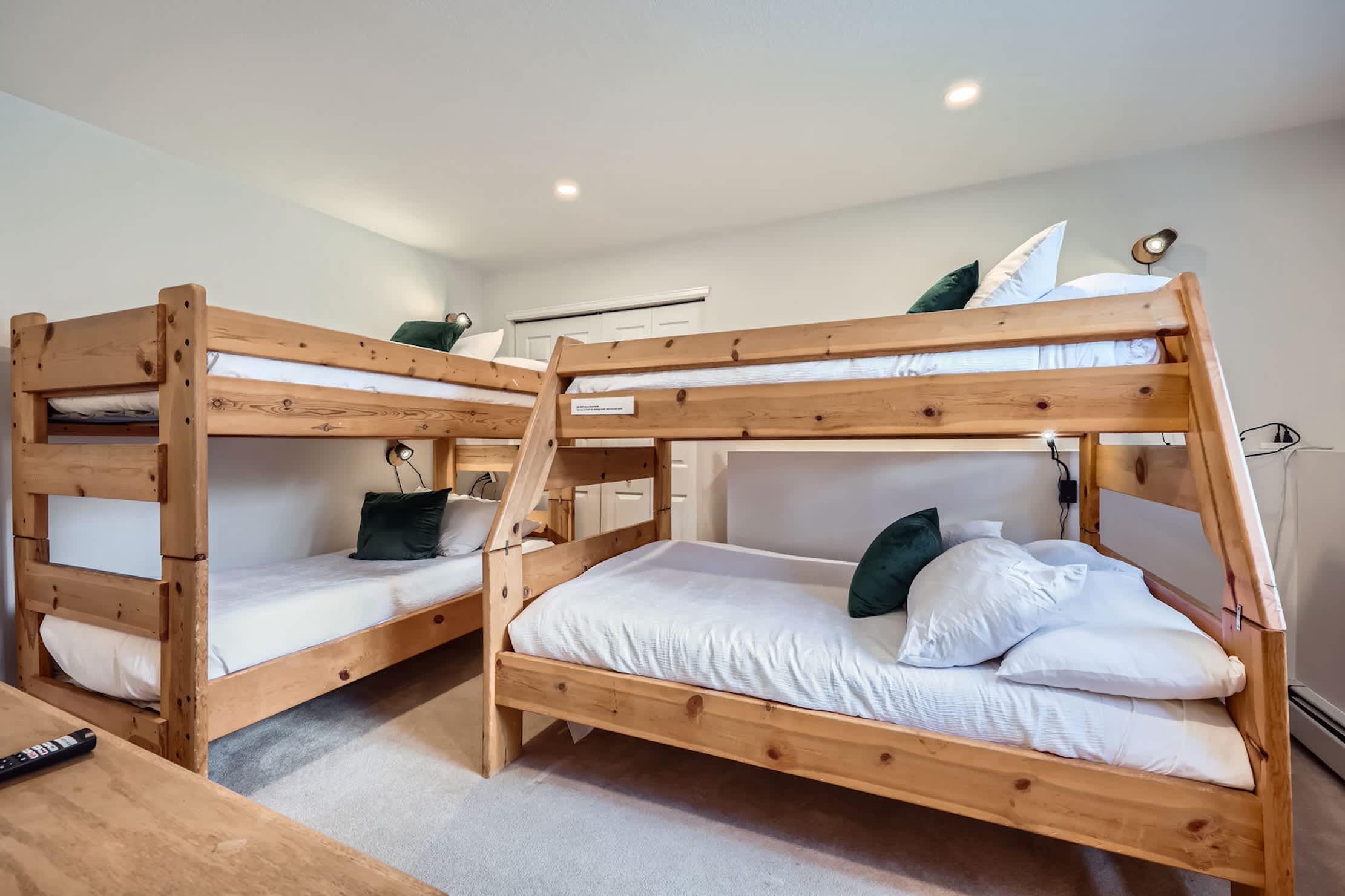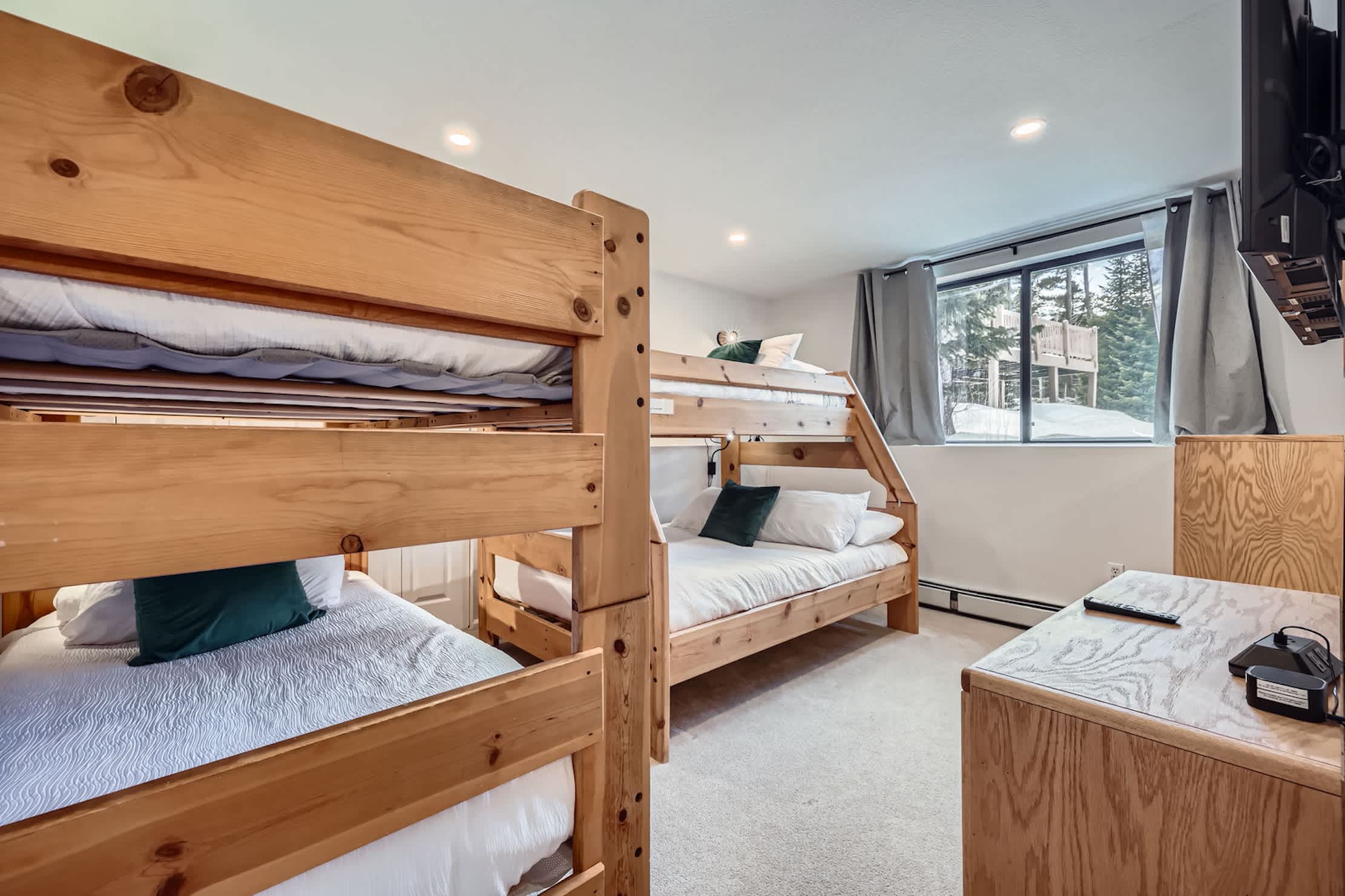 • Bedroom 3: One twin-over-twin bunk and one twin-over-full bunk; shares a remodeled Jack-and-Jill bathroom with Bedroom 2
