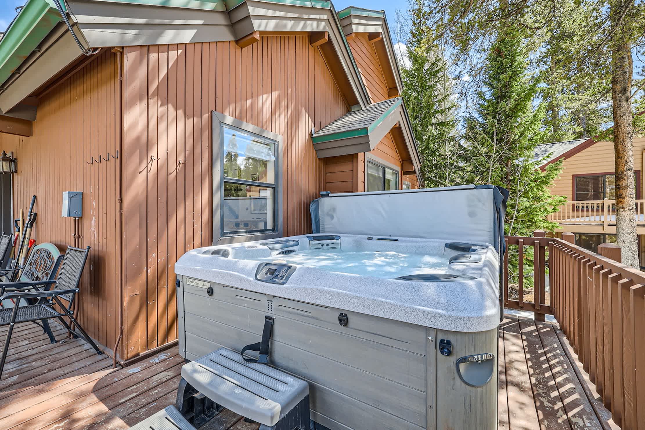 • Private hot tub on a deck with mountain views
