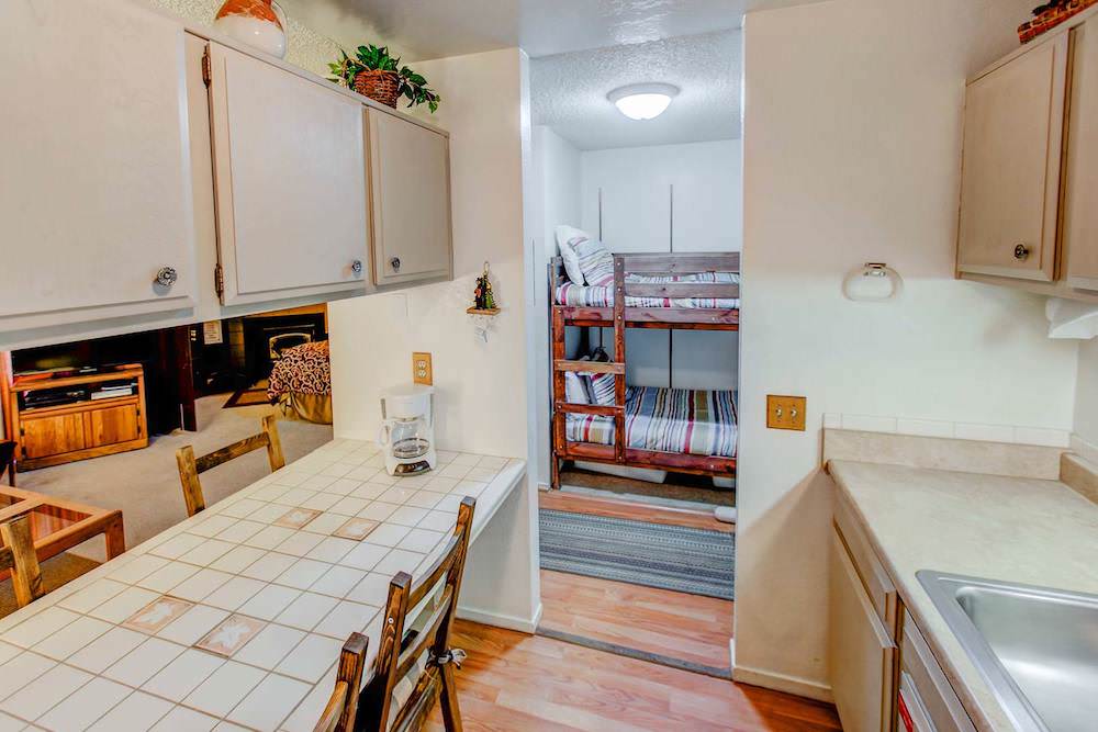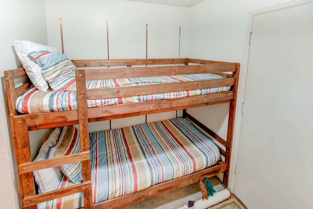 Perfect for the kids, and alcove set of bunk beds is across from the kitchen. The bunk bed has 2 Twin-sized beds.