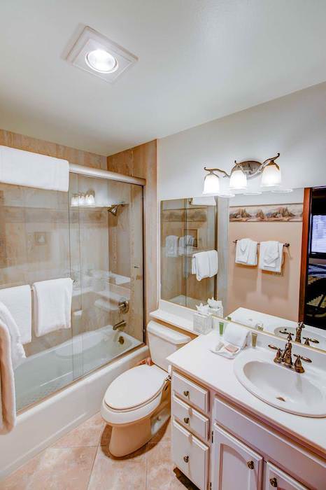 • Bedroom 2: Queen bed, sleeps 2. Ensuite full bathroom.