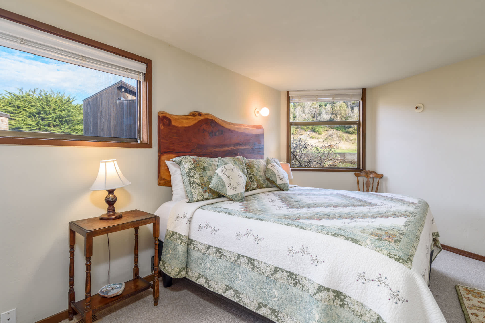 We really enjoyed this cozy home for two. Located adjacent to the Bluff Trail, we took long and leisurely walks every day. We really enjoyed the calming sound of the ocean waves. Watching the sunset from the small back deck was great!We have rented several houses in Sea Ranch and this was by far the most comfortable in that it was not cluttered with things :-), and is well-supplied with linens, towels and kitchen equipment. The bed is very comfortable, and the furniture in the living area cozy. The kitchen is well stocked with dishes, servers, bowls, and cooking pots and pans, utensils and table ware. All is in excellent condition. Spices, herbs, oils, vinegars, teas, etc. available to use. There is also a gas grill which we used often.We will recommend to friends and will be back to enjoy another stay at Sea Pines.Susan C. - Posted: