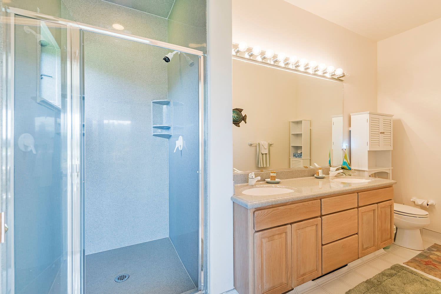 Settle into a serene, coastal-style home designed for easy gatherings and quiet retreat time. With three bedrooms and two full baths plus a half bath, the layout works well for families, couples, or friends traveling together.