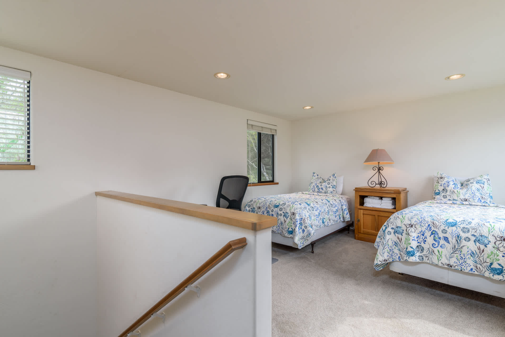 Starlight Reach is a comfortable, coastal-chic retreat designed for easy downtime between beach walks and trail adventures. The main living area invites you to relax by the electric fireplace after a day outside, and opens to outdoor spaces furnished for lounging and grilling. The primary suite has deck access for fresh ocean air, while the loft offers extra sleeping space plus a dedicated desk if you need to plug in. A washer and dryer in the home make longer stays simple. It’s a great setup for families, two couples, or a friends’ trip.
