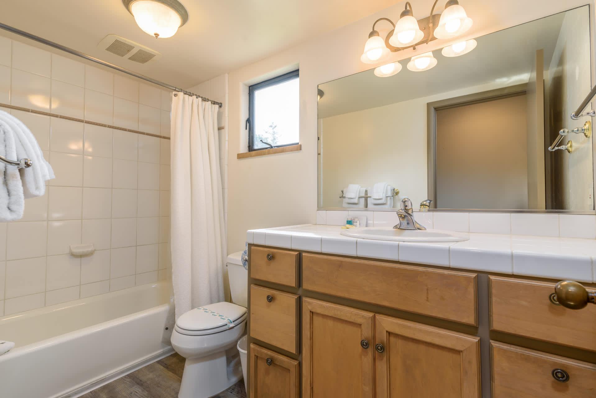 • Bathroom 2 (hall): Single vanity, shower/tub combo