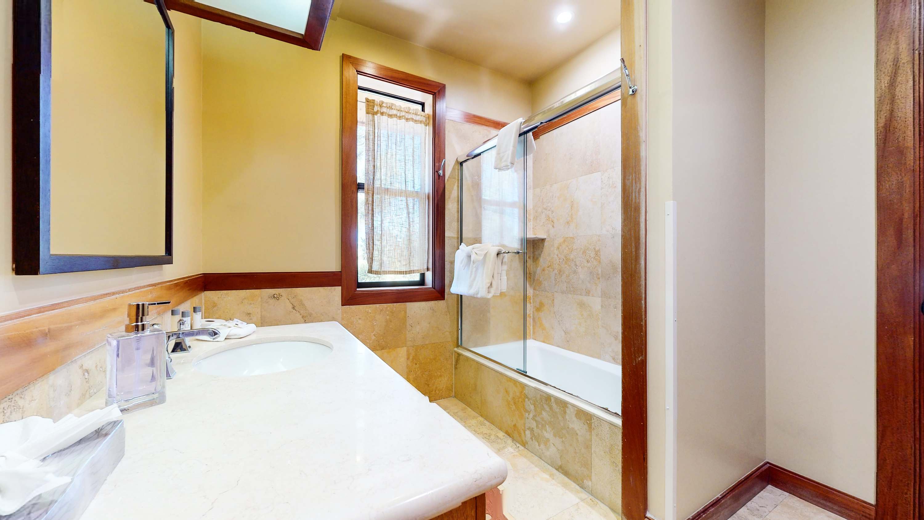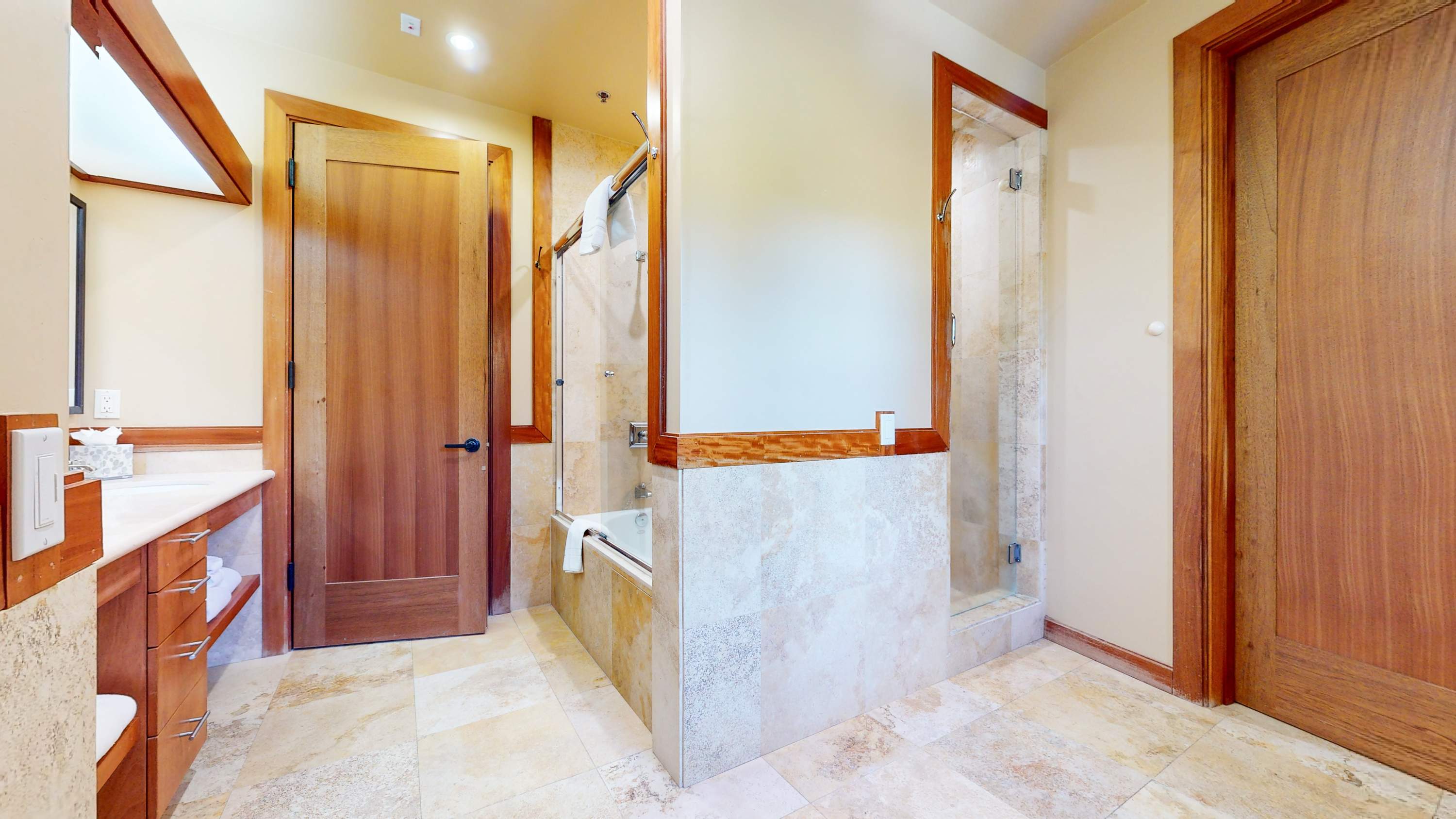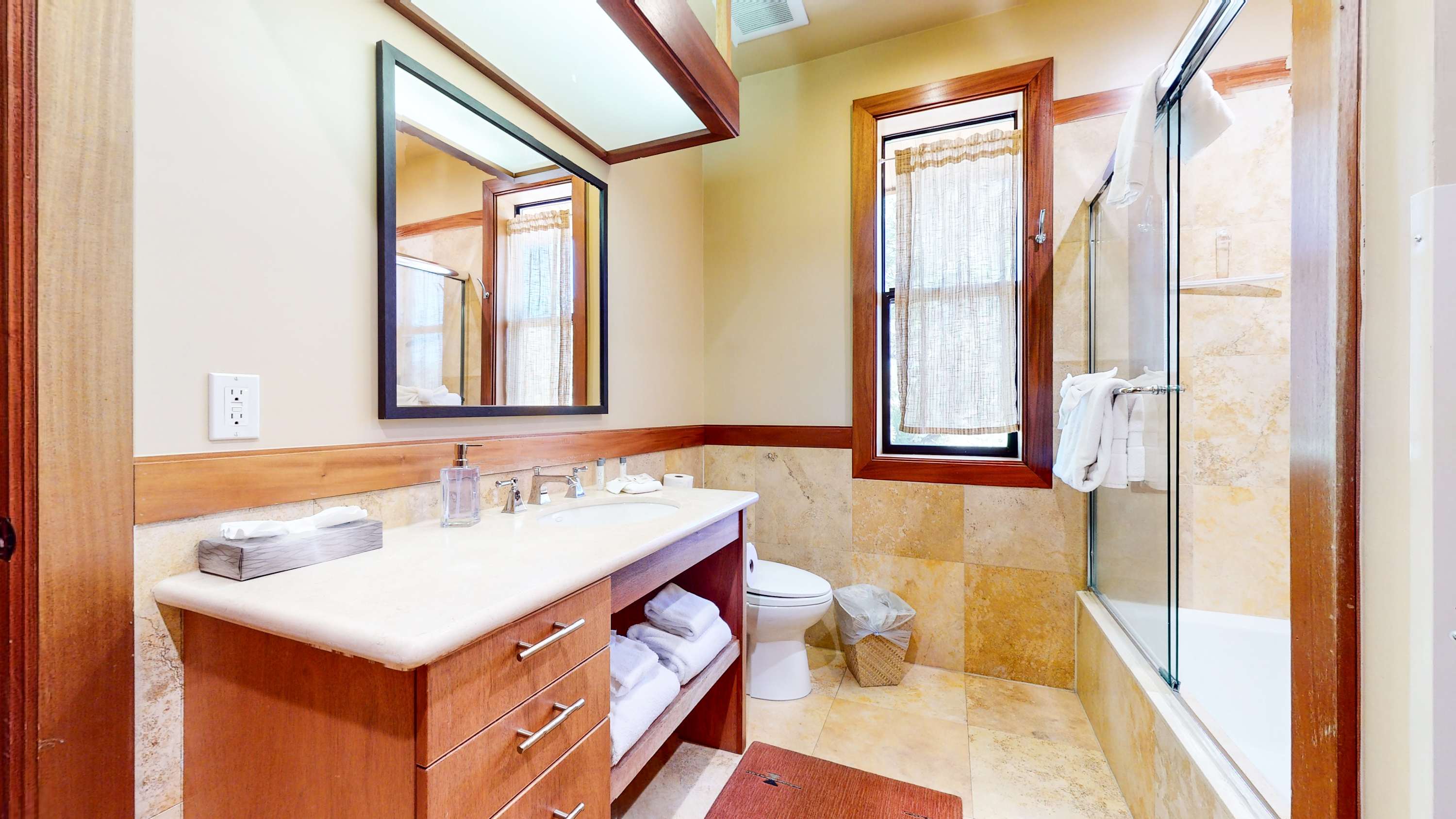 • Bathroom 2 (hall): Single vanity, shower/tub combo