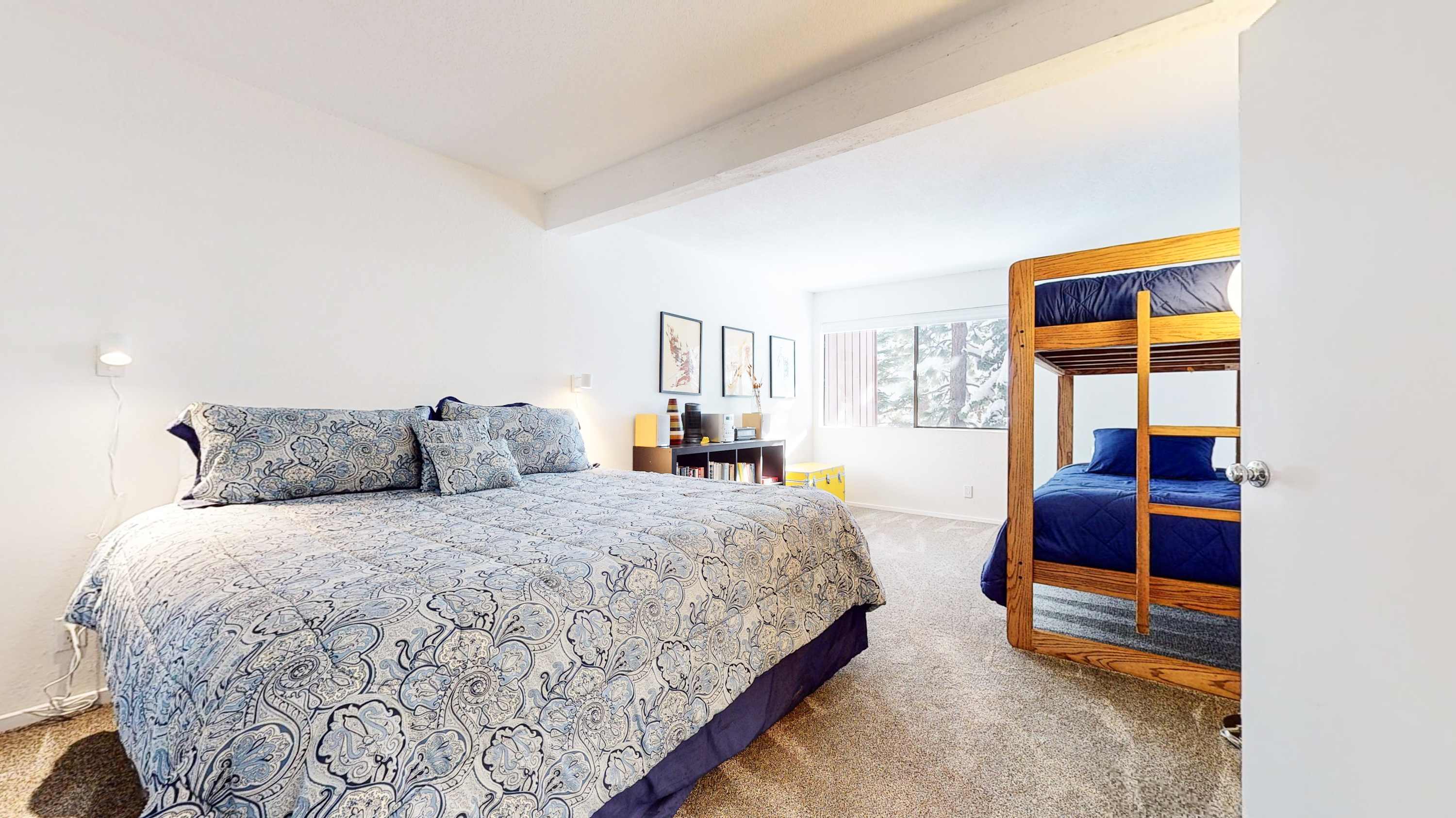 • Bedroom 2: King bed + twin-over-twin bunk bed (sleeps 4)