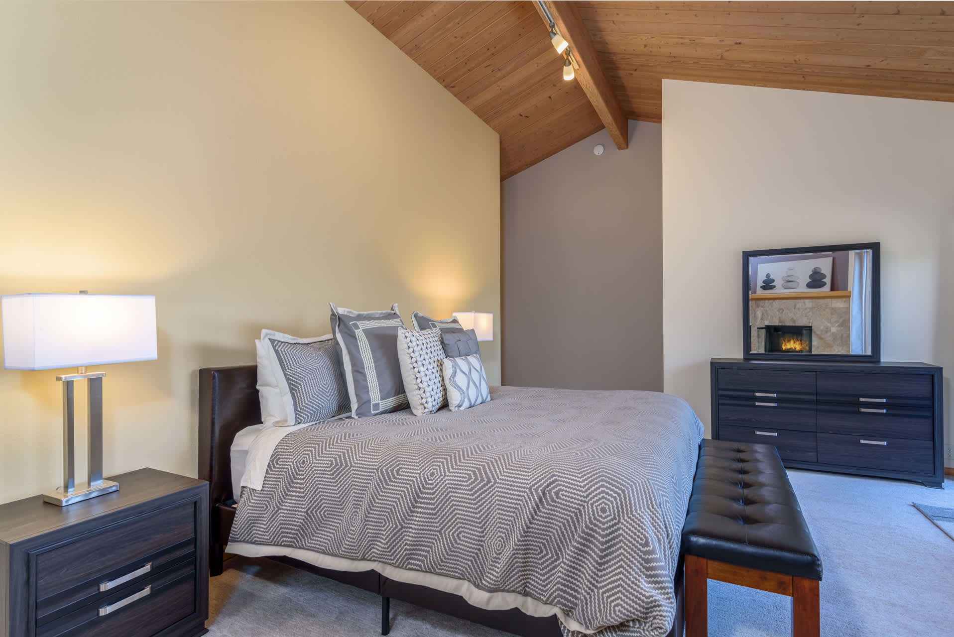• Bedroom 1: King bed, ensuite bathroom