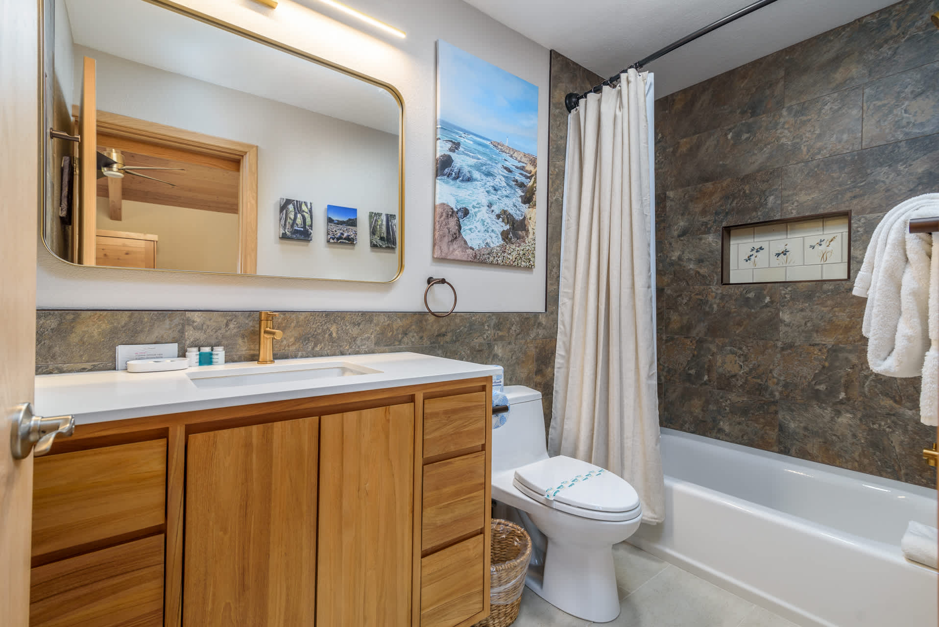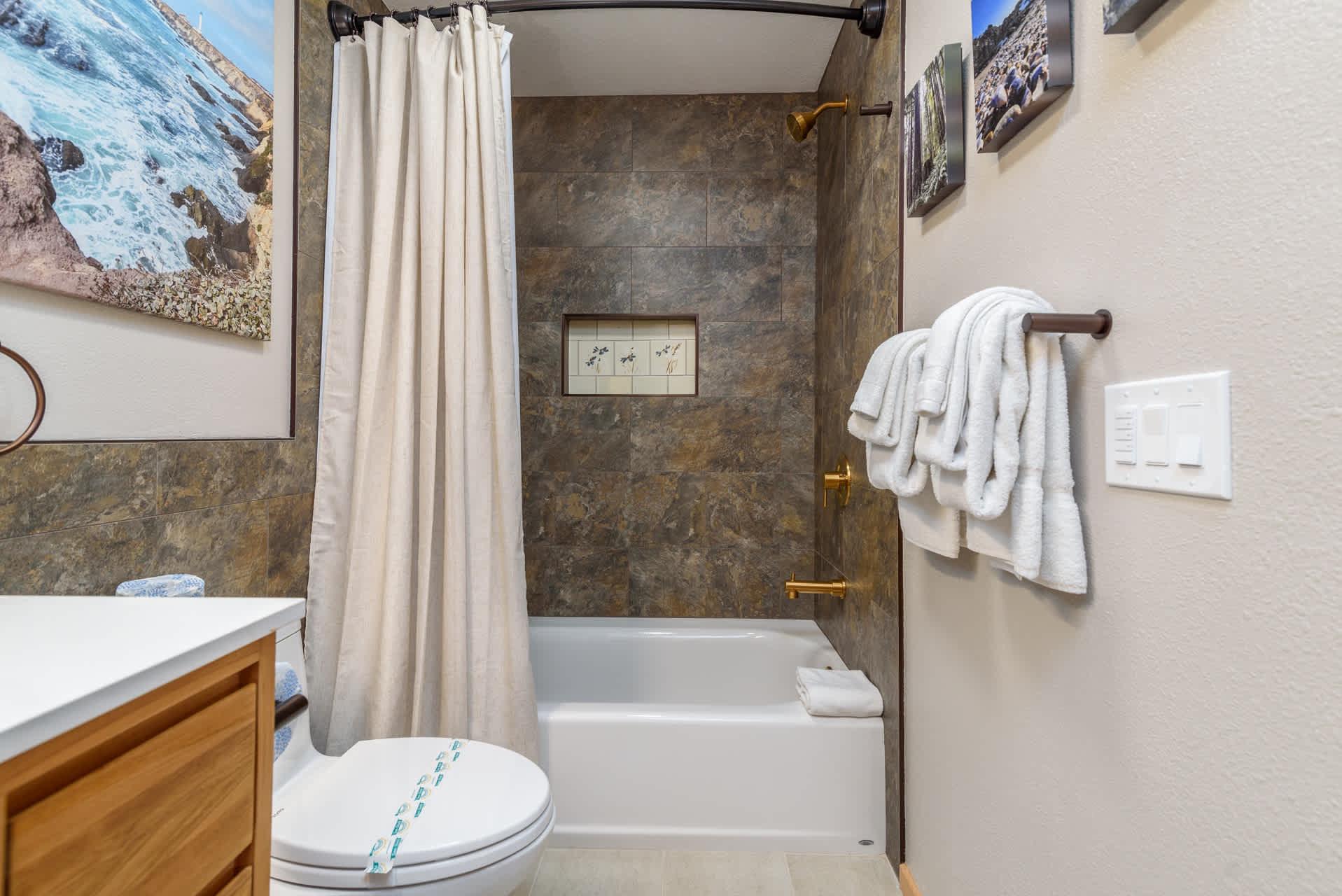 Designed for easy gathering and downtime, this dog-friendly home offers sleeping space for up to 12 across three private bedrooms plus flexible options in the common area. Two ensuite bathrooms and two inviting bathtubs make unwinding simple after a day on the coast.