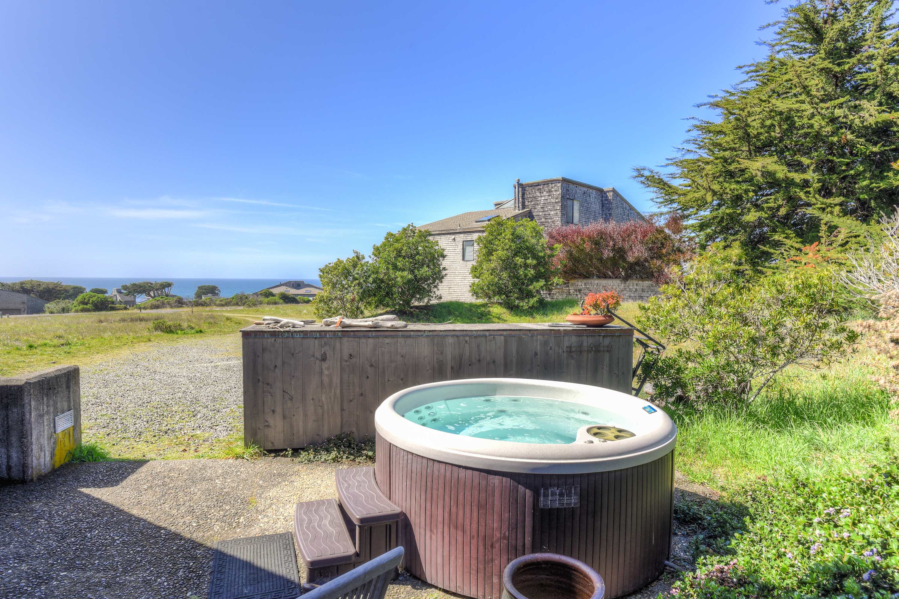 Welcome to Meadow Lark in Sea Ranch. This 2-bedroom + loft house sleeps up to 4 and puts you near the ocean with sea views, a private hot tub, and guest access to the Ohlson Recreation Center.