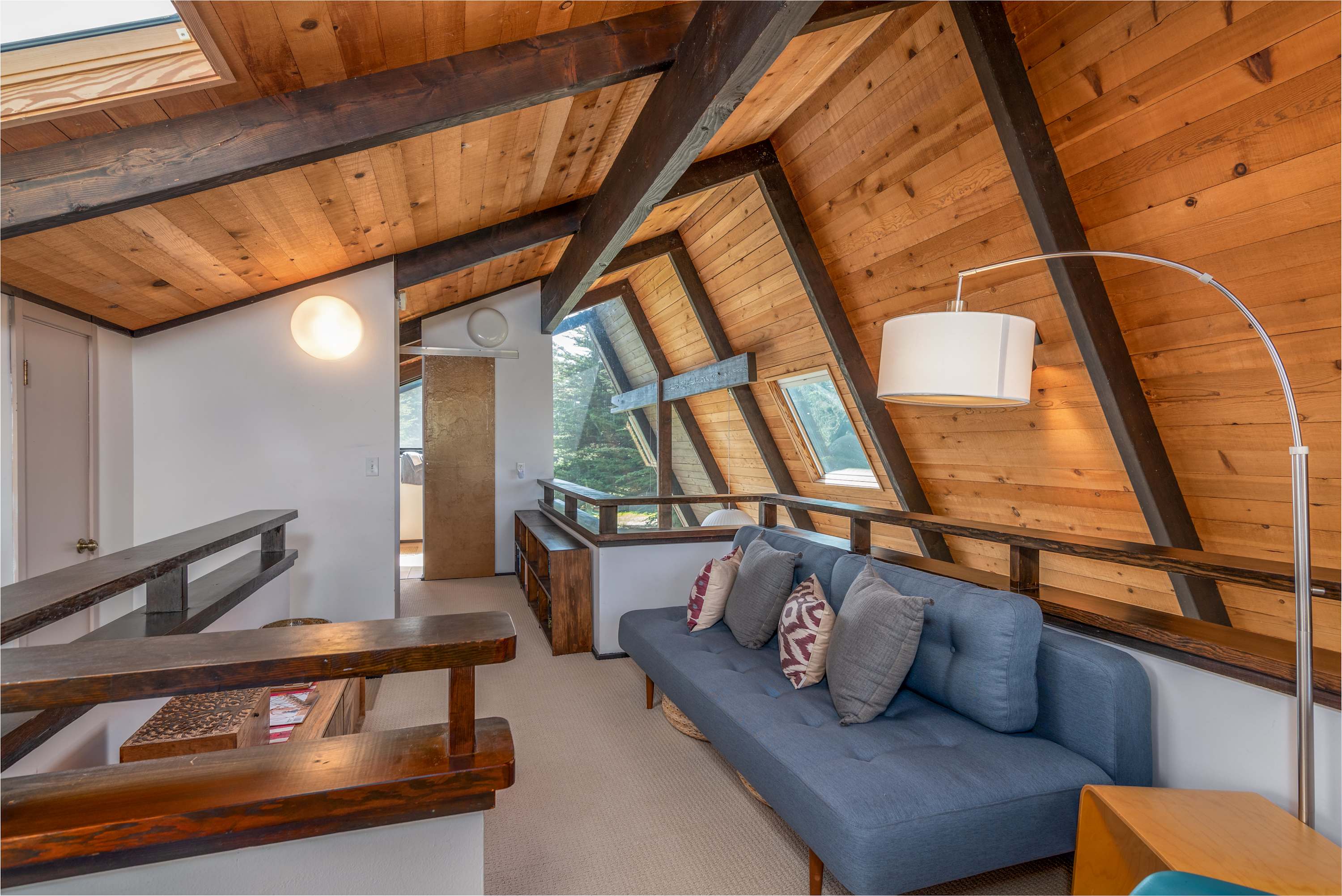 • Loft (upstairs): Full sofa sleeper, Twin daybed, TV, and a bathroom
