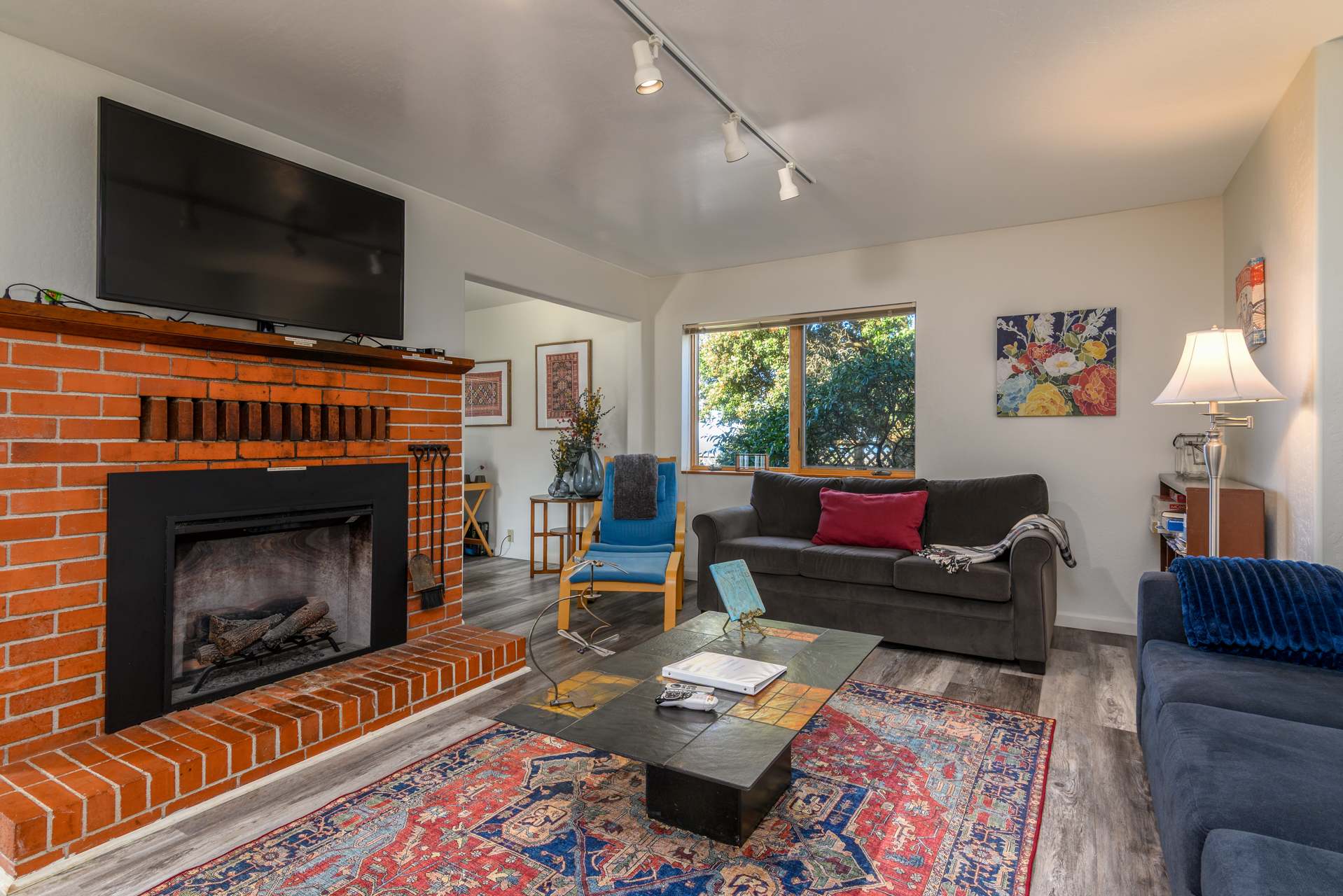 Step outside to a garden/backyard with outdoor seating—perfect for morning coffee or a casual BBQ. Parking is straightforward in the driveway, and EV drivers will appreciate the newly installed Tesla charger.