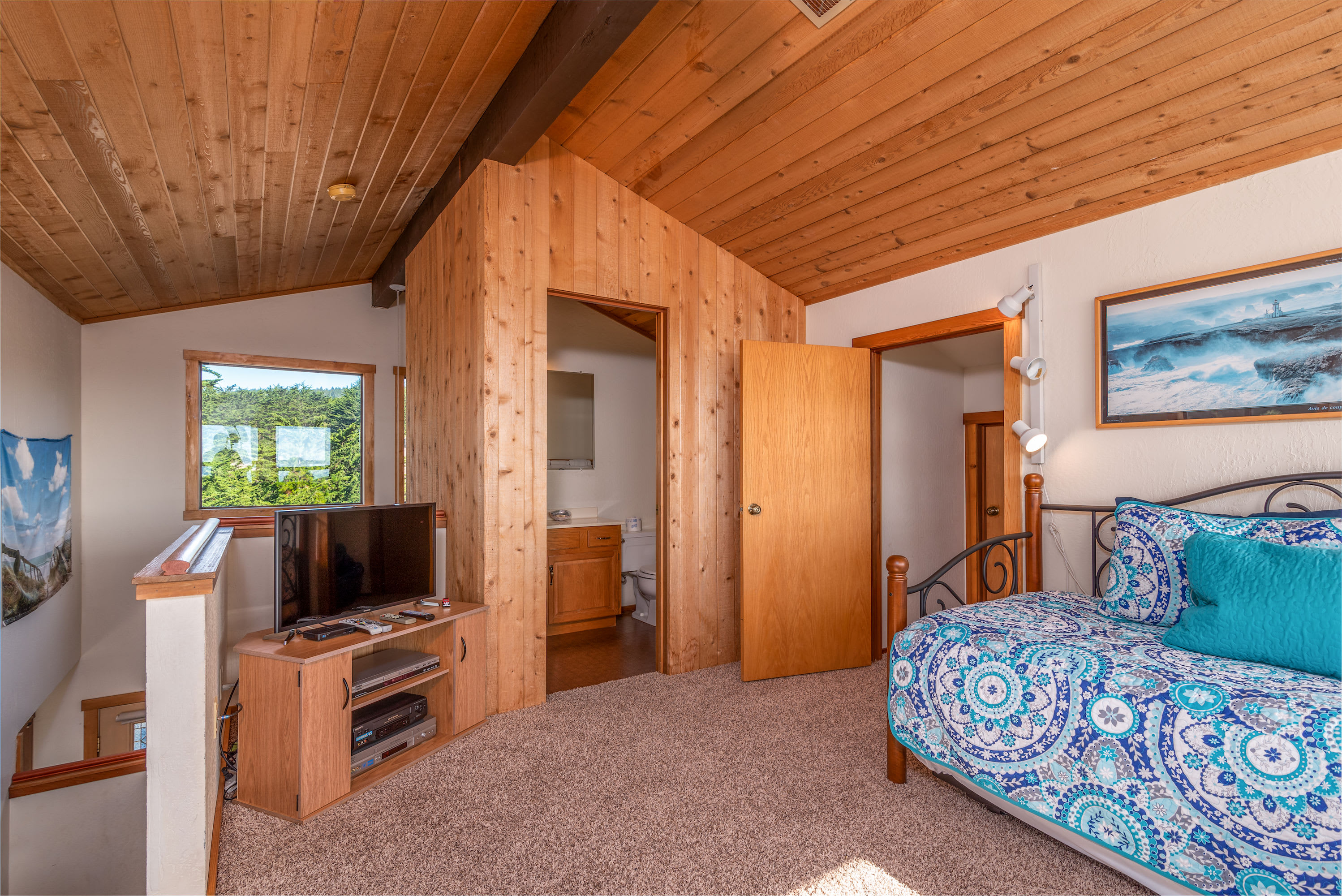 • Loft Bedroom: Two trundle Twin beds that can be set up as one King or used as two individual Twins, Smart TV, and a private half bathroom. Sleeps 2.