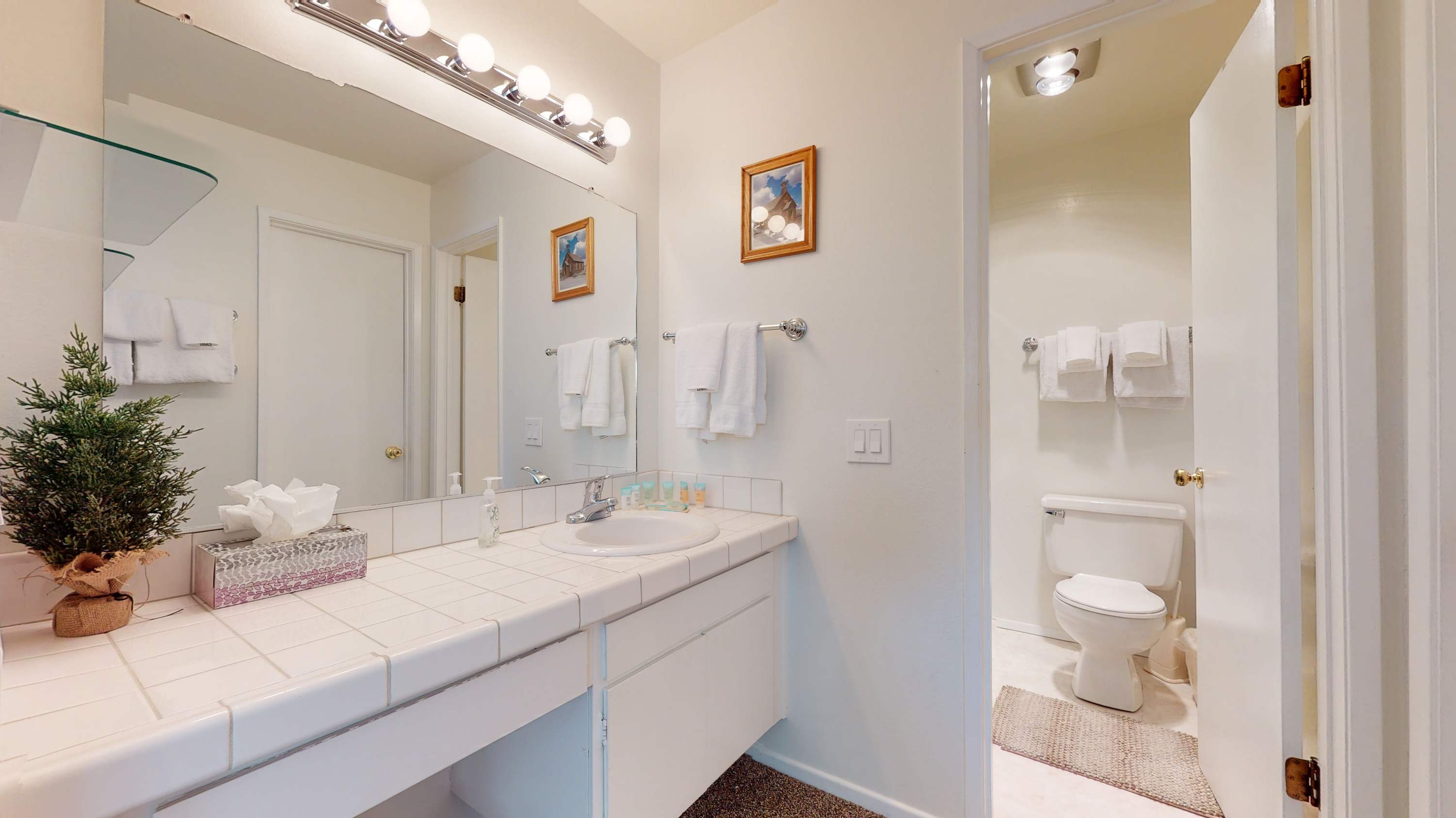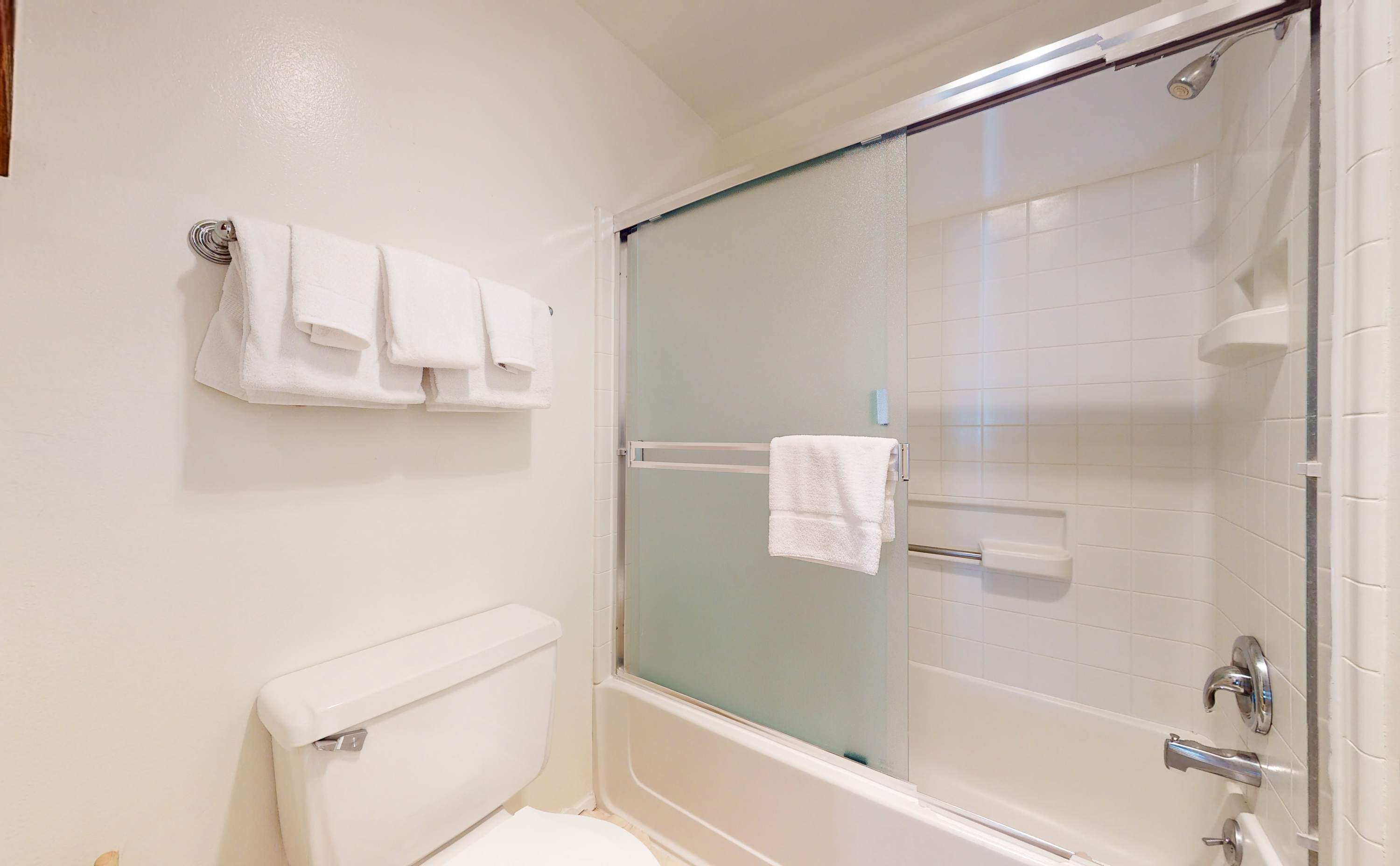 When it's time to call it a night, retire to one of the 2 bedrooms. The main bedroom holds a King bed and a flat screen TV. The 2nd bedroom has a King bed and 2 Twin beds - great if you're traveling with kids! Each bedroom has an en suite bathroom with a shower/tub combo.