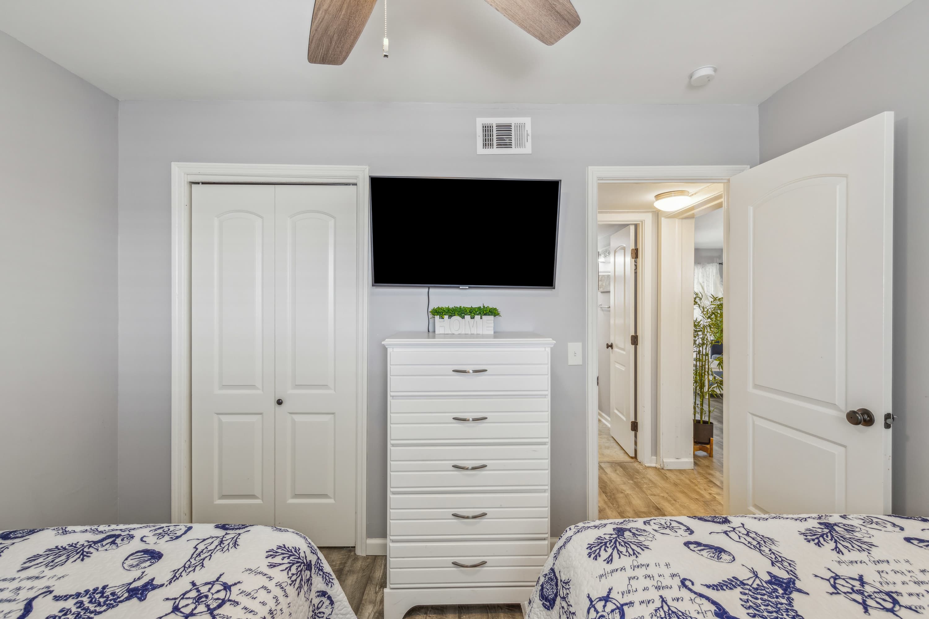 • Bedroom 2: Two full-size beds, smart TV, sleeps 4