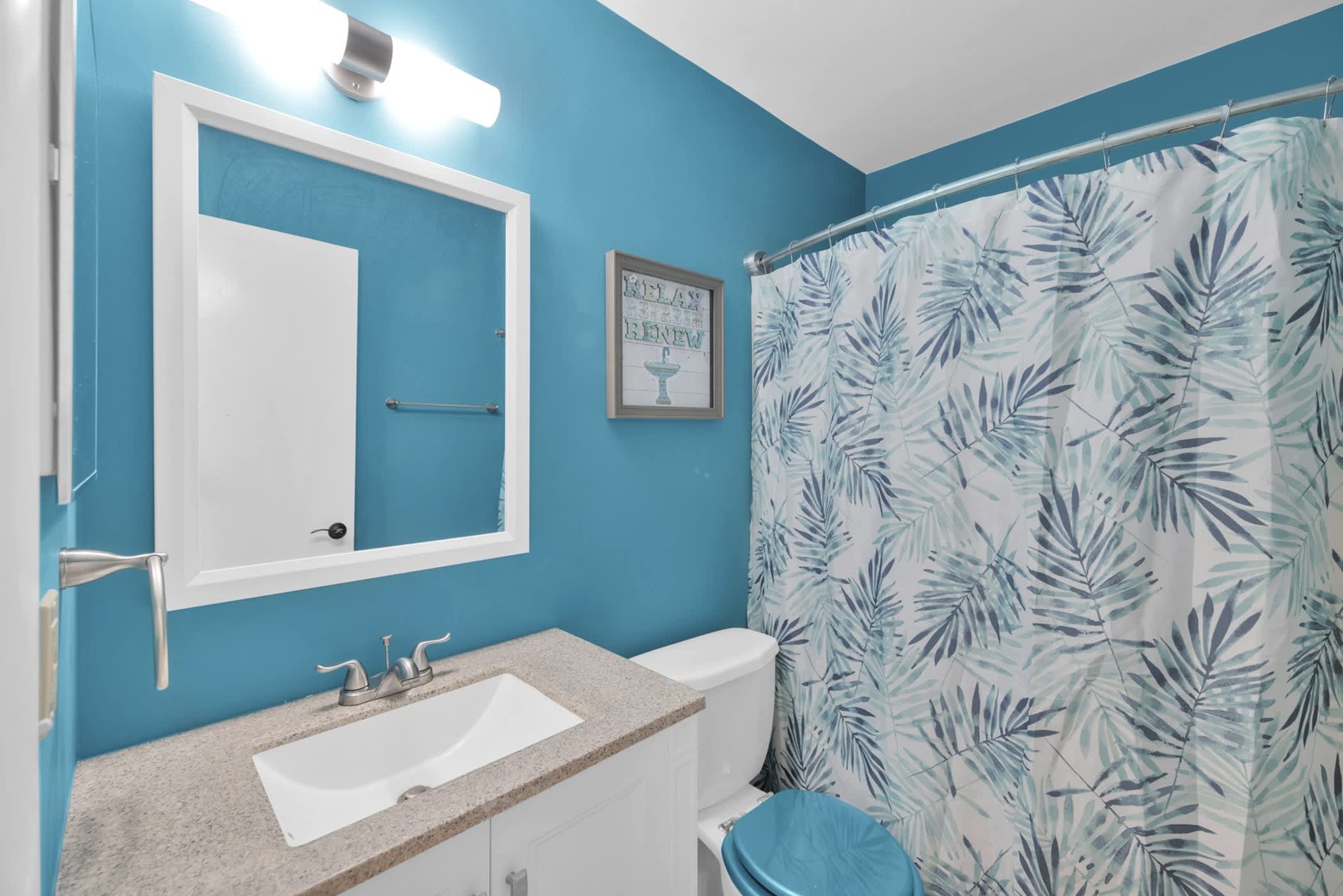 • Bathroom 2: Hall access; single vanity and shower/tub combo