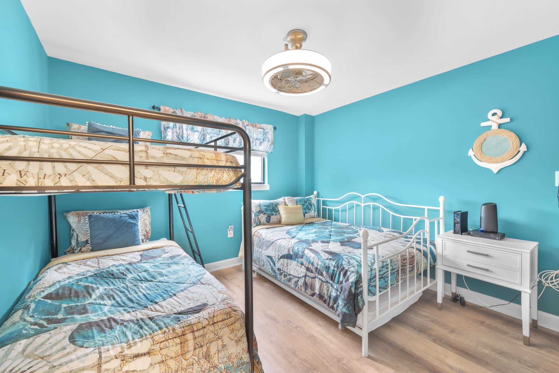 • Bedroom 2: Twin-over-twin bunk bed plus a full-size bed, sleeps up to 4