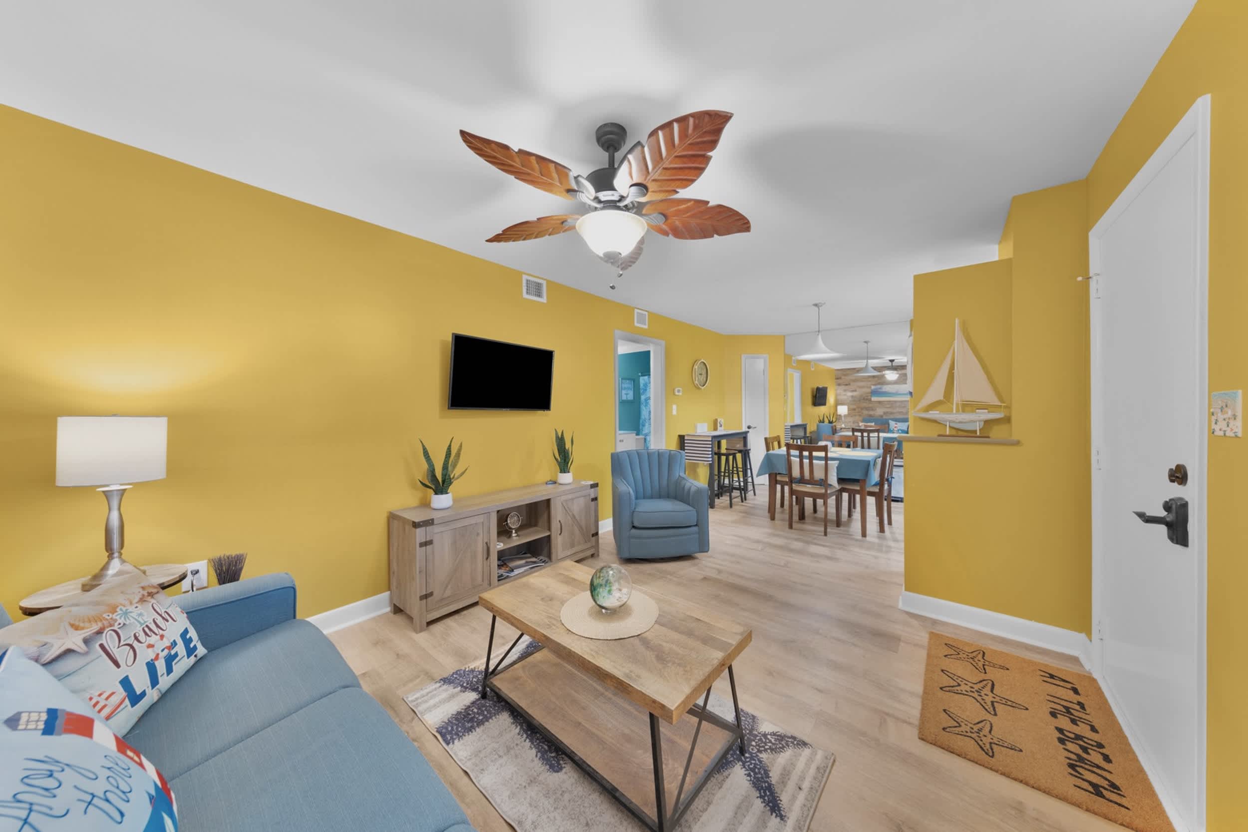 Designed for easy, comfortable days between the beach and the pool, this 2BR/2BA condo is a welcoming home base for families and small groups. The living areas flow to an outdoor seating area for morning coffee or an evening wind-down, and a BBQ grill makes simple at-home meals a breeze.
