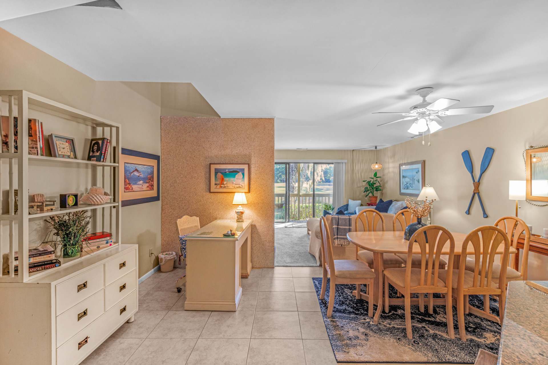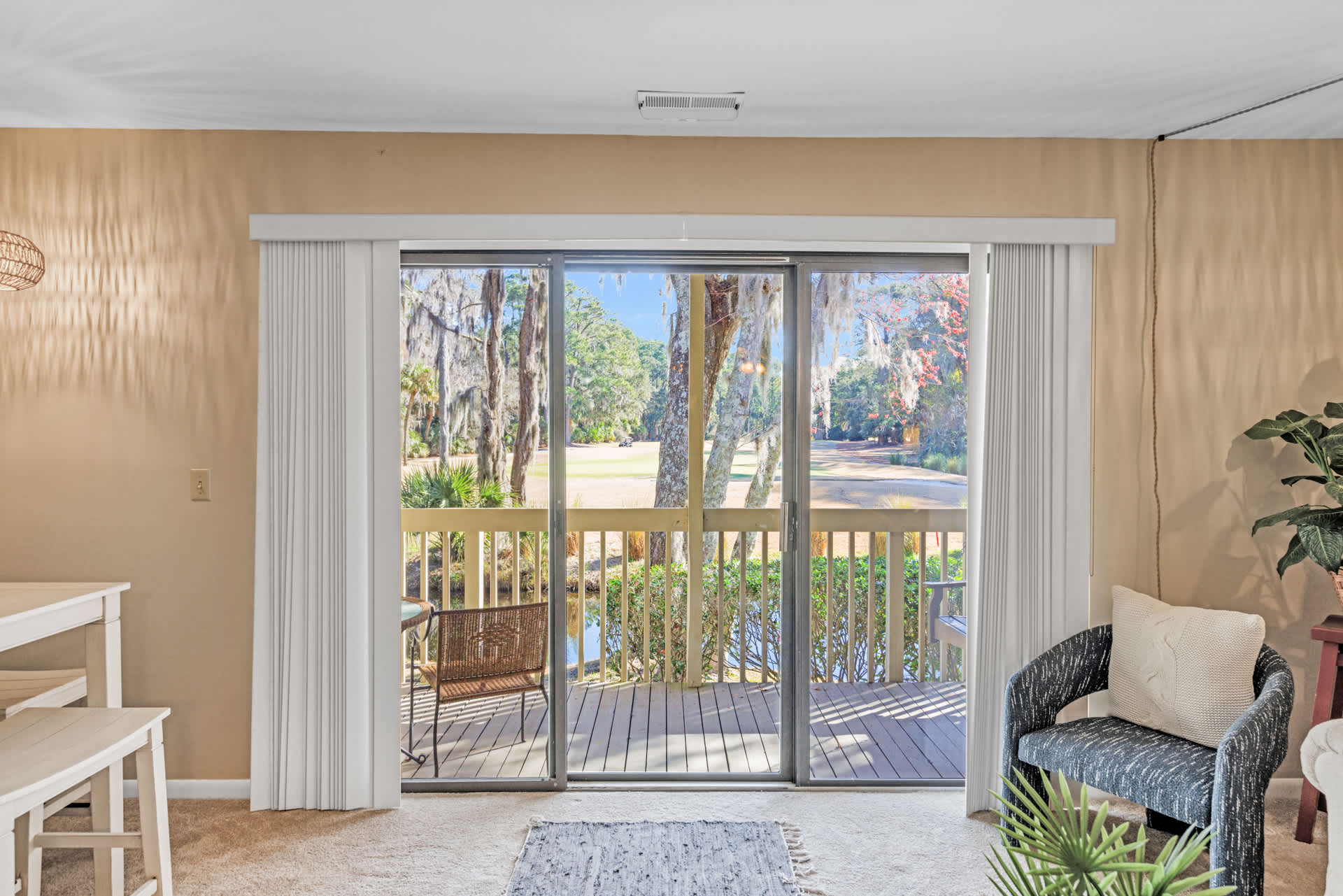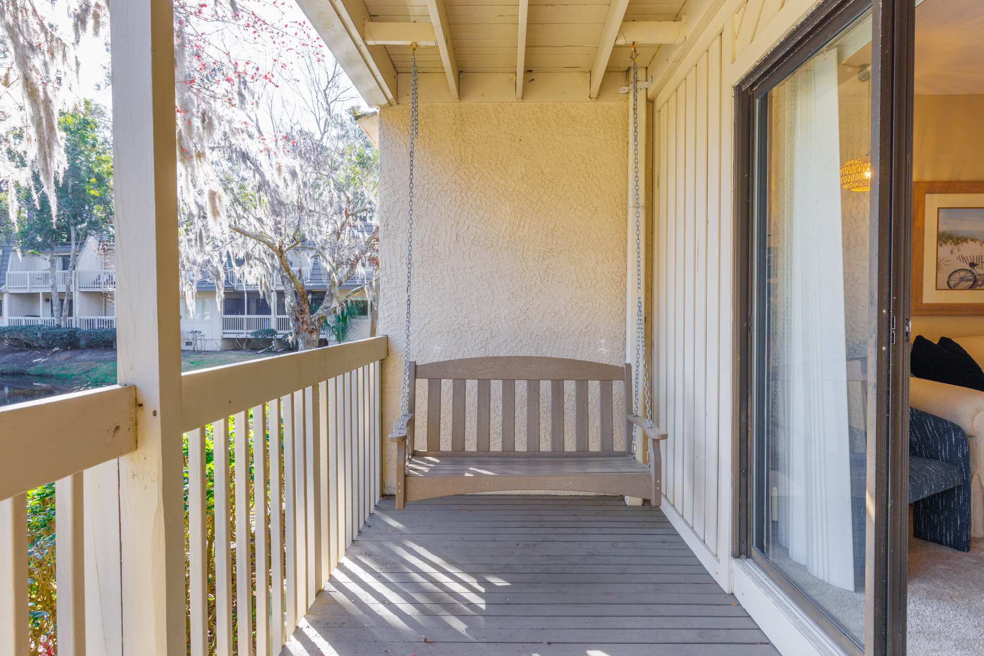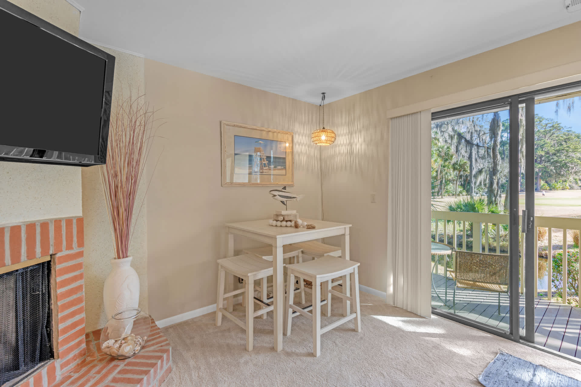 Of course, you can't miss out on the extensive stretch of beaches that the area is known for. Here, you can enjoy the convenience of the private Shipyard community beach access. As it's just an easy bike ride away, take advantage of one of the local bike rental companies and take your time riding along all the beautiful and scenic bike paths throughout the community. With over 60 miles of biking paths on the Island, there's plenty of opportunity for exploration and relaxation on two wheels. Leave the cooking to someone else for a change and visit one of several local restaurants nearby, offering everything from the fresh local catch of the day to delightful international flavors. At the end of busy days exploring everything this unique island has to offer, relax out on the home’s breezy balcony, offering comfortable outdoor seating and fantastic views of the Clipper Golf Course.