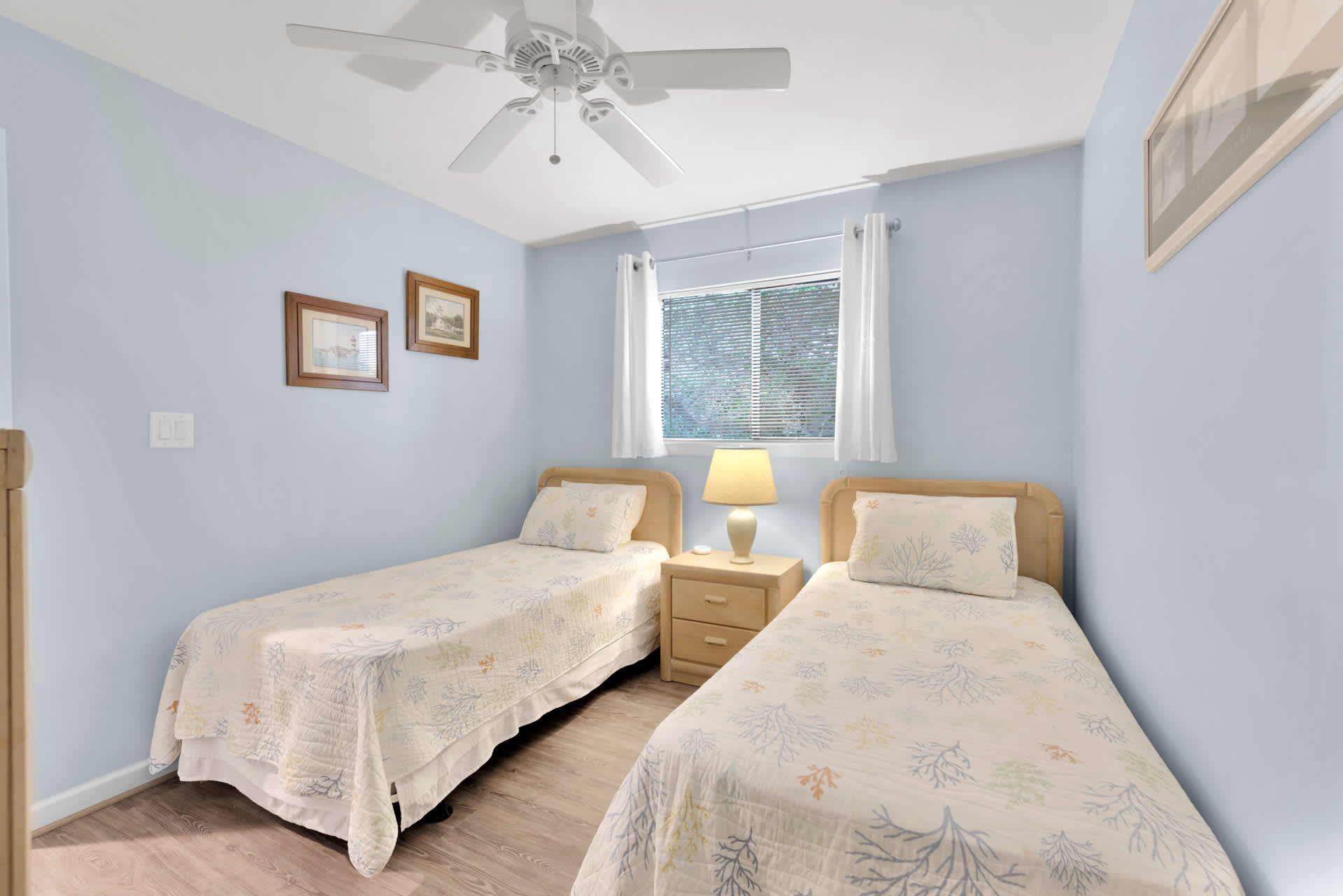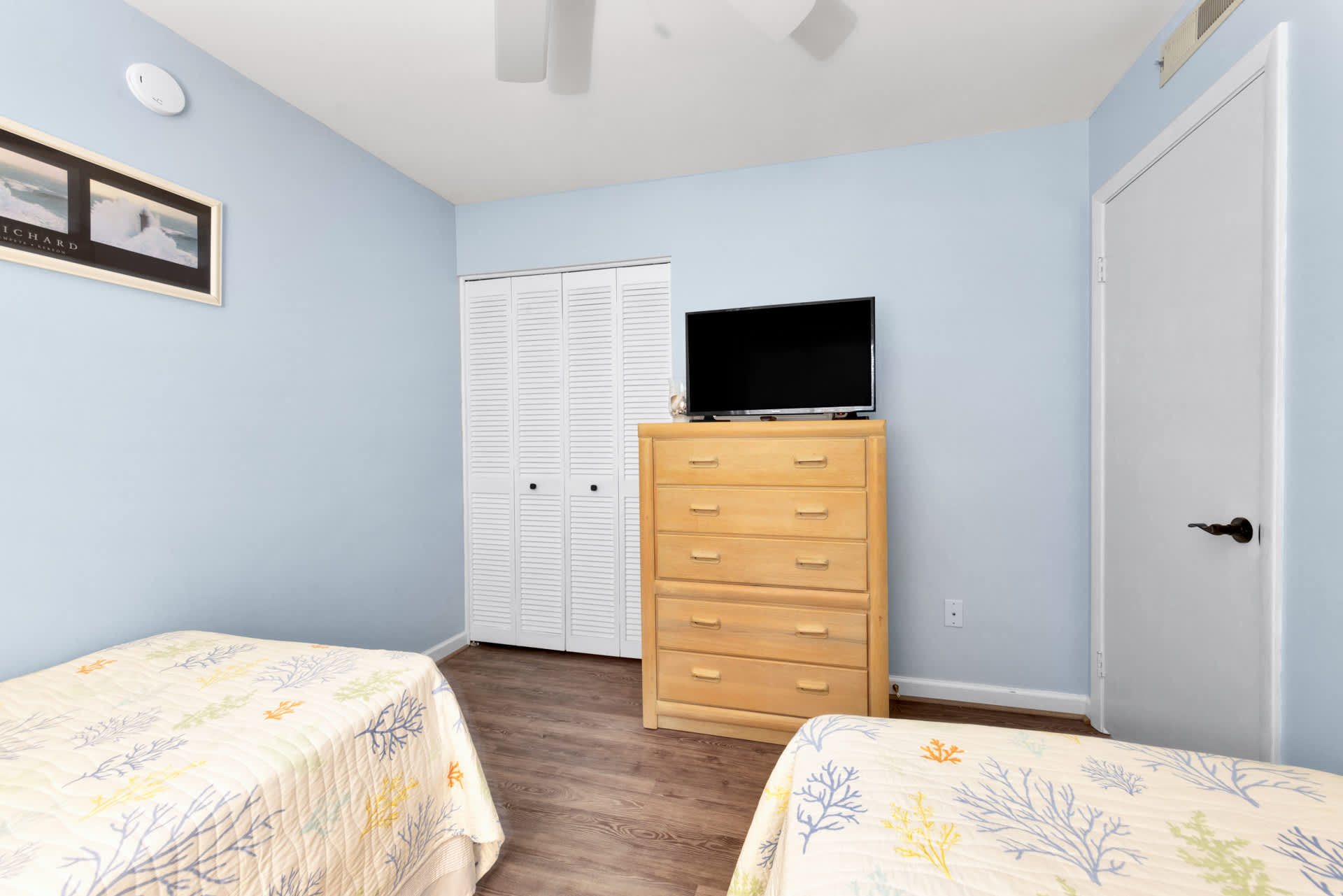 Bedroom #2 includes 2 twin beds and a smart TV.