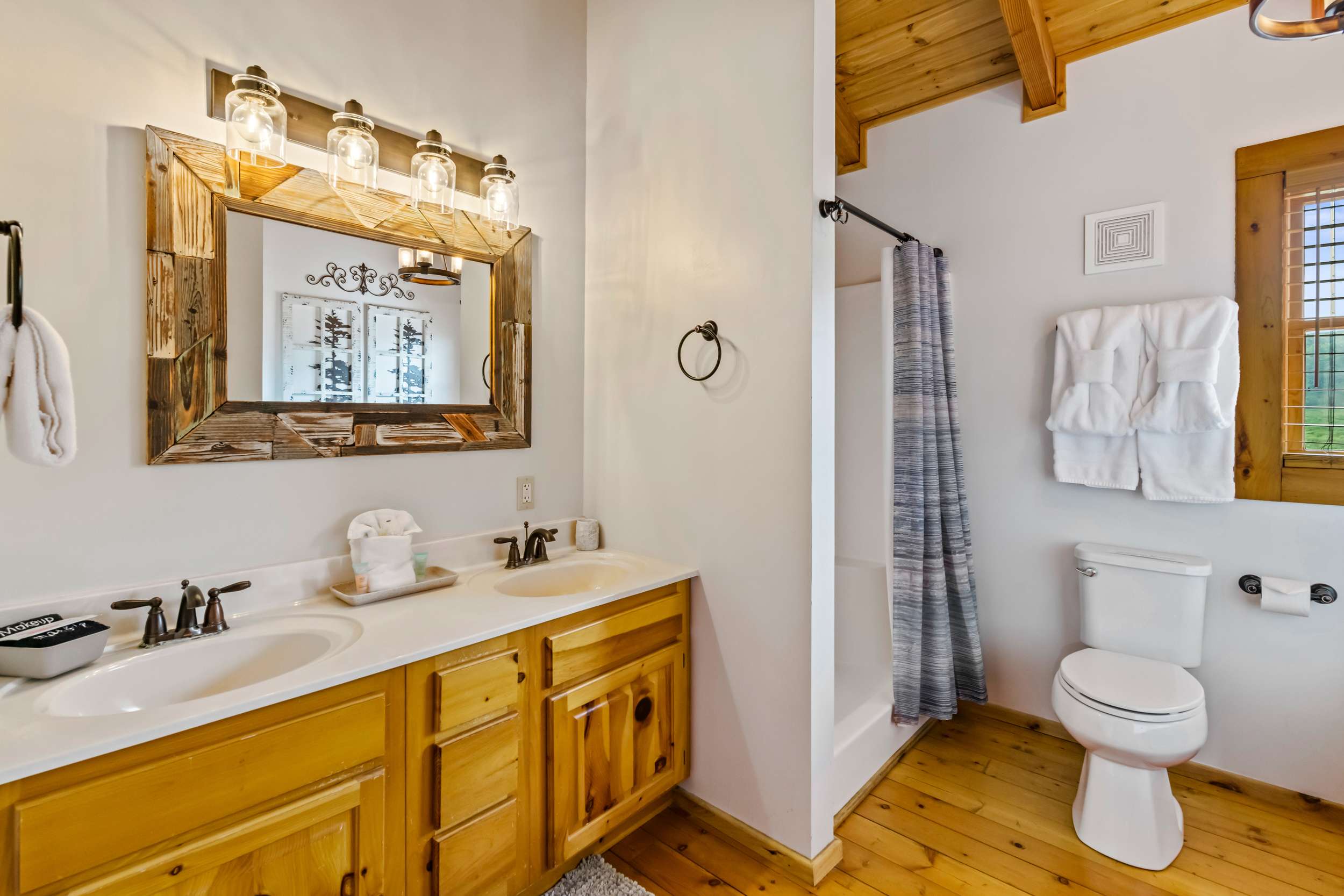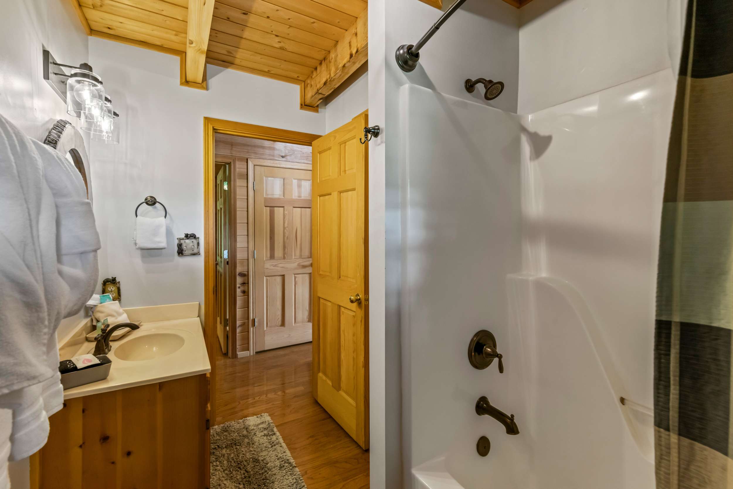 • Bathroom 2 (full, guest): Single vanity and shower/tub combo